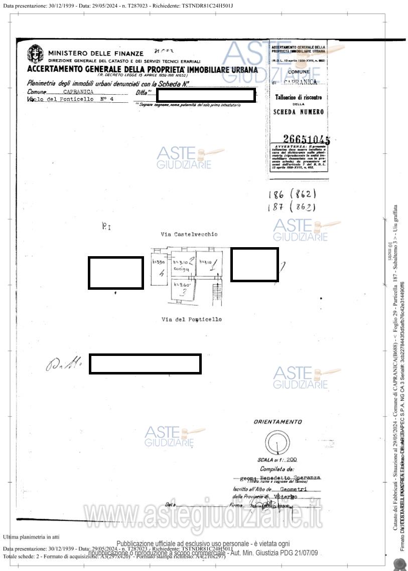 Vendita all'asta Senza incanto, con gara telematica asincrona - LOTTO 1: Diritto di piena proprietà per 1/2 dell’appartamento distinta al NCEU foglio 29 p.lla 186 sub 3 graffato con la p.lla 187 sub. 3 categoria A/5 classe 3 consistenza 4,5 vani e superficie catastale 8. Prezzo base € 10.125,00 (offerta minima € 7.593,75). Data inizio operazioni di vendita: 29/04/2026 ore 10:40. Giudice Federico Bonato. Professionista delegato alla vendita Dott. Stefano Tedeschi - Email "studiostefanotedeschi@gmail.com"; Cell. 3338915305; Tel. 3338915305. Custode Giudiziario Dott. Stefano Tedeschi - Email "studiostefanotedeschi@gmail.com"; Cell. 3338915305; Tel. 3338915305. Rif. Tribunale di Viterbo - Espropriazione immobiliare (cartabia) n. 181/2023