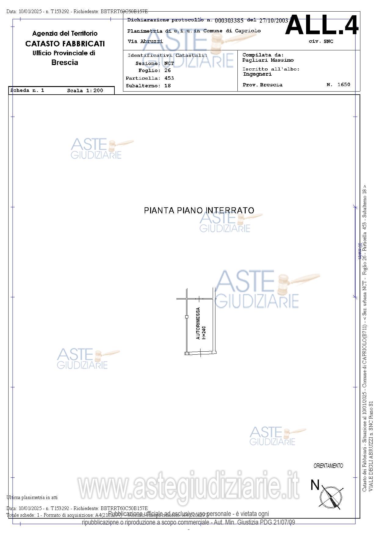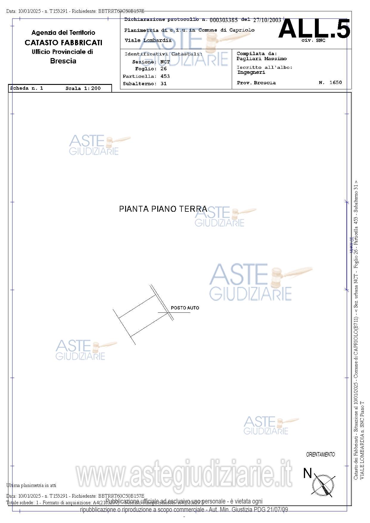 Vendita all'asta Senza incanto, con gara telematica asincrona - LOTTO UNICO: Piena proprietà di appartamento posto al primo piano con soffitta non abitabile, autorimessa pertinenziale al piano interrato e posto auto. Prezzo base € 47.700,00 (offerta minima € 35.775,00). Data inizio operazioni di vendita: 20/05/2026 ore 09:30. Professionista delegato alla vendita Not. Giammatteo Rizzonelli - Email "grizzonelli@notariato.it"; Tel. 030222849. Custode Giudiziario Not. Giammatteo Rizzonelli - Email "visiteimmobili@anpebrescia.it". Rif. Tribunale di Brescia - Espropriazione immobiliare (cartabia) n. 367/2024
