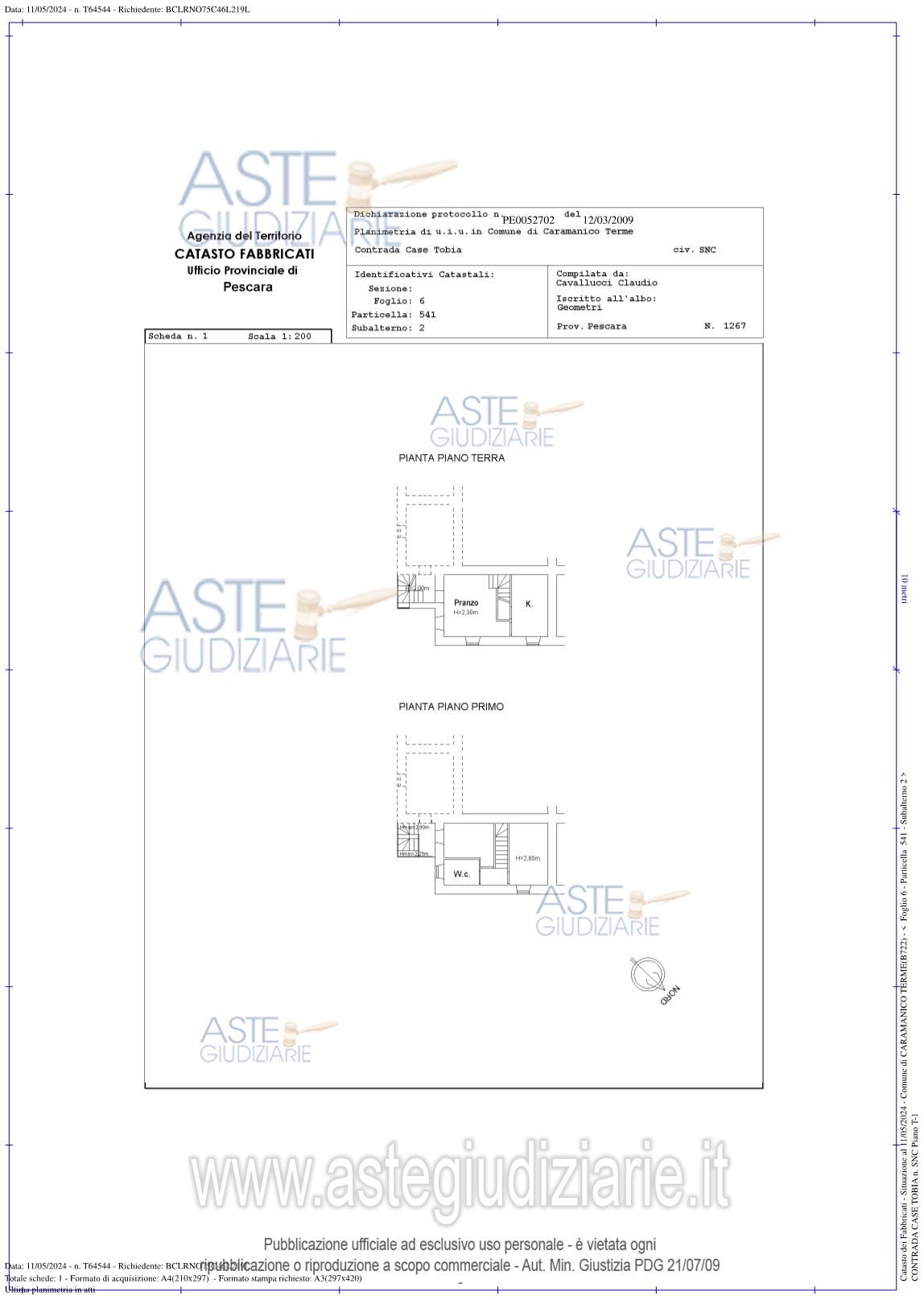 Vendita all'asta Senza incanto, con gara telematica asincrona - LOTTO UNICO: Piena proprietà di un’unità abitativa su due livelli con accesso autonomo, con superficienetta di circa mq. 56 (convenzionale circa mq. 72), consistente in una porzione difabbricato sito nel Comune di Caramanico Terme (PE) - Fraz. Scagnano, C.da Case Tobian. 28A. Prezzo base € 20.695,50 (offerta minima € 15.521,62). Data inizio operazioni di vendita: 14/04/2026 ore 11:00. Professionista delegato alla vendita Avv. Alfredo Bruno - Email "avvalfredo@virgilio.it;avvocatibruno@virgilio.it"; Cell. 3394073375; Tel. 0854314186. Custode Giudiziario Avv. Alfredo Bruno - Email "avvalfredo@virgilio.it;avvocatibruno@virgilio.it"; Cell. 3394073375; Tel. 0854314186. Rif. Tribunale di Pescara - Espropriazione immobiliare (cartabia) n. 206/2023