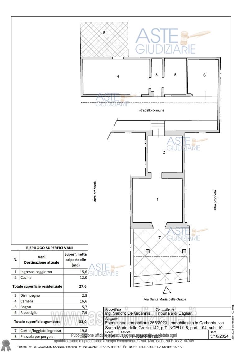 Vendita all'asta Senza incanto, con gara telematica asincrona - LOTTO UNICO: In Comune di Carbonia, Fraz.Barbusi, quota pari all’intero del diritto di proprietà dell’unità immobiliare in Via Santa Maria delle Grazie n.142 (al Catasto il civico non risulta indicato) composta da ingresso soggiorno, cucina, cortile, quattro vani con destinazione ripostigli/locale di sgombero, area sterrata. Prezzo base € 26.000,00 (offerta minima € 19.500,00). Data inizio operazioni di vendita: 27/01/2026 ore 09:00. Giudice Valentina Frongia. Professionista delegato alla vendita Not. Massimiliano Vadilonga - Email "ufficiouniconotai@pec.it"; Tel. 07060222574. Custode Giudiziario Ivg Cagliari - Email "ivg.visiteimmobili@tiscali.it"; Tel. 0702299036. Rif. Tribunale di Cagliari - Espropriazione immobiliare (cartabia) n. 255/2023
