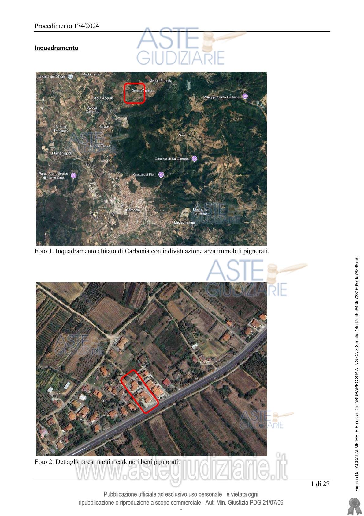 Vendita all'asta Senza incanto, con gara telematica asincrona - LOTTO 2: Carbonia, Località Genna Corriga snc, quota pari a 1/1 del diritto di proprietà di unità immobiliare, costituita da appartamento al piano terra di maggior palazzina di due piani fuori terra, con unico ingresso pedonale su veranda/terrazza privata (ingresso/soggiorno con angolo cottura, disimpegno, camera, bagno) categoria A/3, consistenza 3 vani e posto auto scoperto in area cortilizia indivisa, bene comune non censibile. Prezzo base € 40.032,00 (offerta minima € 30.024,00). Data inizio operazioni di vendita: 04/06/2026 ore 10:00. Giudice Silvia Cocco. Professionista delegato alla vendita Dott. Edoardo Sanna - Email "studioedoardosanna@gmail.com"; Tel. 070490790. Custode Giudiziario Ivg Di Cagliari - Email "ivg.visiteimmobili@tiscali.it"; Tel. 0702299036. Rif. Tribunale di Cagliari - Espropriazione immobiliare (cartabia) n. 174/2024
