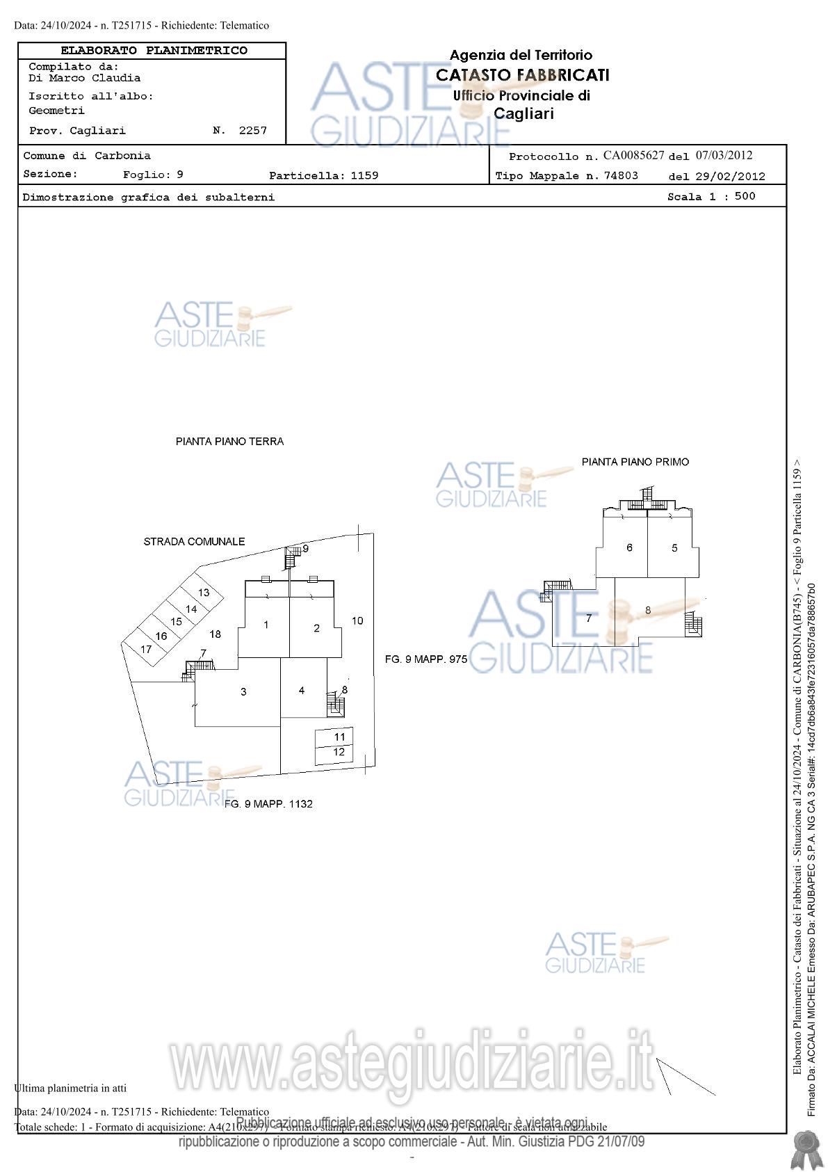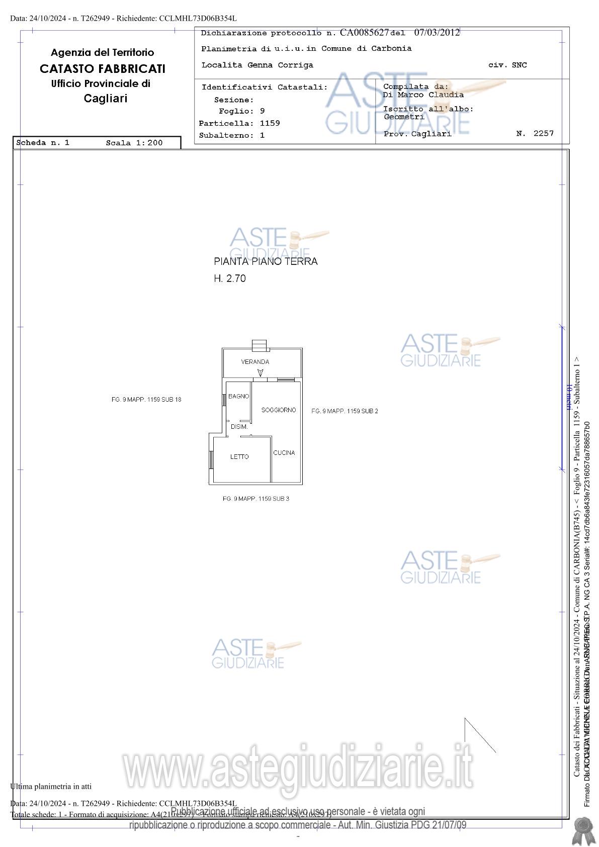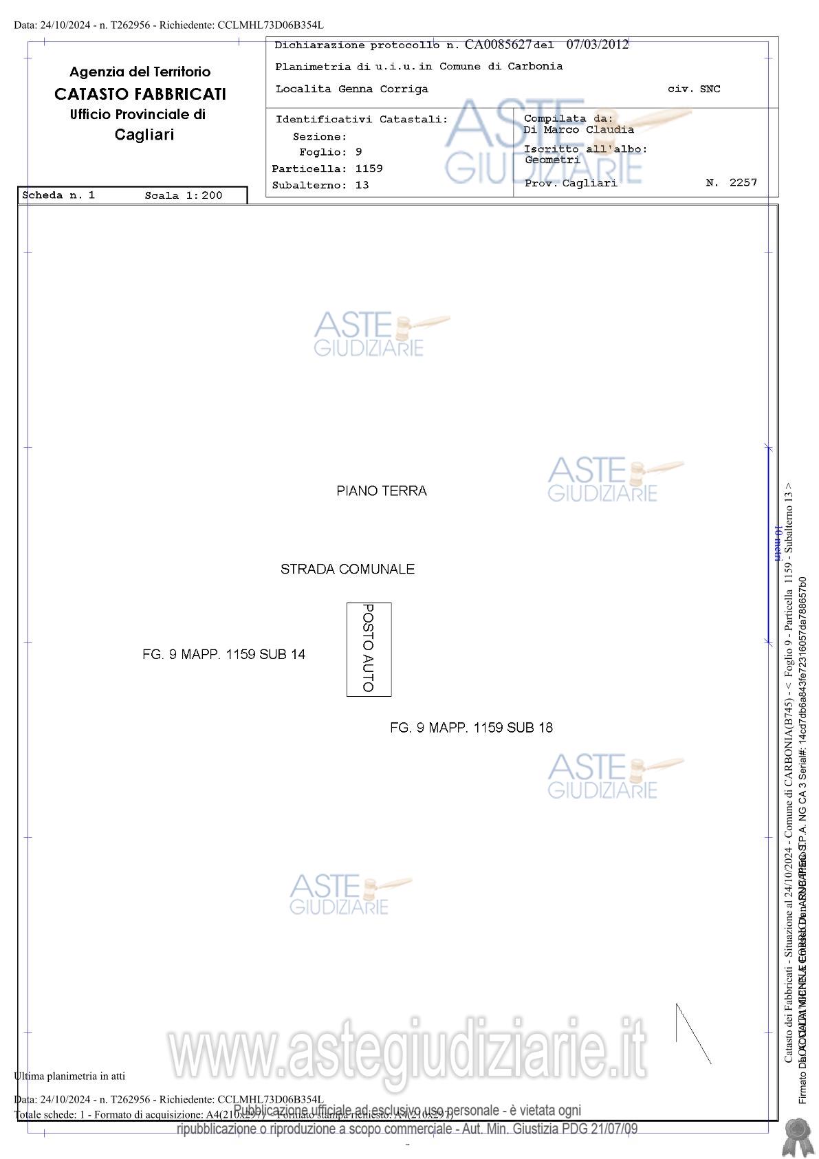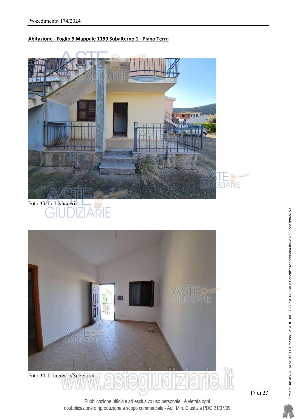 Vendita all'asta Senza incanto, con gara telematica asincrona - LOTTO 5: Carbonia, Località Genna Corriga snc, quota pari a 1/1 del diritto di proprietà di unità immobiliare, costituita da appartamento al piano terra di maggior palazzina di due piani fuori terra, con unico ingresso pedonale su veranda privata (ingresso/soggiorno con angolo cottura, disimpegno, camera, bagno) categoria A/3, consistenza 3 vani e posto auto scoperto in area cortilizia, categoria C6, consistenza 11 mq. Prezzo base € 38.304,00 (offerta minima € 28.728,00). Data inizio operazioni di vendita: 04/06/2026 ore 10:00. Giudice Silvia Cocco. Professionista delegato alla vendita Dott. Edoardo Sanna - Email "studioedoardosanna@gmail.com"; Tel. 070490790. Custode Giudiziario Ivg Di Cagliari - Email "ivg.visiteimmobili@tiscali.it"; Tel. 0702299036. Rif. Tribunale di Cagliari - Espropriazione immobiliare (cartabia) n. 174/2024