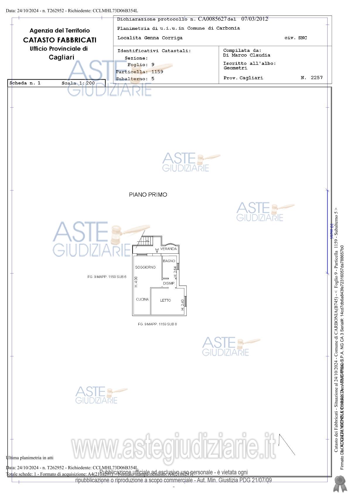 Vendita all'asta Senza incanto, con gara telematica asincrona - LOTTO 7: Carbonia, Località Genna Corriga snc, quota pari a 1/1 del diritto di proprietà di unità immobiliare, costituita da appartamento al piano primo di maggior palazzina di due piani fuori terra, con unico ingresso pedonale su veranda/balcone privato (ingresso/soggiorno con angolo cottura, disimpegno, camera, bagno) categoria A/3, consistenza 2,5 vani e posto auto scoperto in area cortilizia, categoria C6, consistenza 11 mq. Prezzo base € 36.000,00 (offerta minima € 27.000,00). Data inizio operazioni di vendita: 04/06/2026 ore 10:00. Giudice Silvia Cocco. Professionista delegato alla vendita Dott. Edoardo Sanna - Email "studioedoardosanna@gmail.com"; Tel. 070490790. Custode Giudiziario Ivg Di Cagliari - Email "ivg.visiteimmobili@tiscali.it"; Tel. 0702299036. Rif. Tribunale di Cagliari - Espropriazione immobiliare (cartabia) n. 174/2024