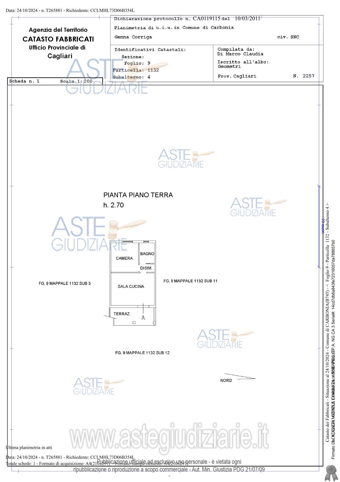 Vendita all'asta Senza incanto, con gara telematica asincrona - LOTTO 3: Carbonia, Località Genna Corriga snc, quota pari a 1/1 del diritto di proprietà di unità immobiliare, costituita da appartamento al piano terra di maggior palazzina di due piani fuori terra, con unico ingresso pedonale su veranda/terrazza privata (ingresso/soggiorno con angolo cottura, disimpegno, camera, bagno) categoria A/3, consistenza 3 vani e posto auto scoperto in area cortilizia indivisa, bene comune non censibile. Prezzo base € 40.032,00 (offerta minima € 30.024,00). Data inizio operazioni di vendita: 04/06/2026 ore 10:00. Giudice Silvia Cocco. Professionista delegato alla vendita Dott. Edoardo Sanna - Email "studioedoardosanna@gmail.com"; Tel. 070490790. Custode Giudiziario Ivg Di Cagliari - Email "ivg.visiteimmobili@tiscali.it"; Tel. 0702299036. Rif. Tribunale di Cagliari - Espropriazione immobiliare (cartabia) n. 174/2024
