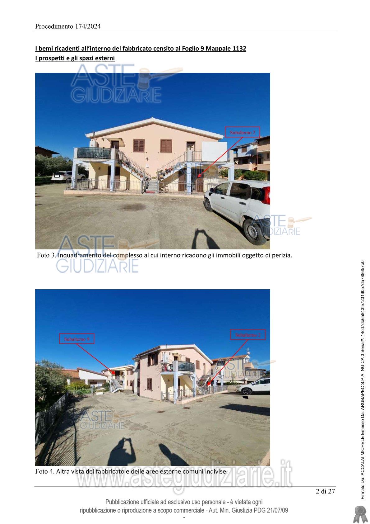 Vendita all'asta Senza incanto, con gara telematica asincrona - LOTTO 4: Carbonia, Località Genna Corriga snc, quota pari a 1/1 del diritto di proprietà di unità immobiliare, costituita da appartamento al piano primo di maggior palazzina di due piani fuori terra, con unico ingresso pedonale su balcone (ingresso/soggiorno con angolo cottura, disimpegno, camera, bagno) categoria A/3, consistenza 3 vani e posto auto scoperto in area cortilizia indivisa, bene comune non censibile. Prezzo base € 38.880,00 (offerta minima € 29.160,00). Data inizio operazioni di vendita: 04/06/2026 ore 10:00. Giudice Silvia Cocco. Professionista delegato alla vendita Dott. Edoardo Sanna - Email "studioedoardosanna@gmail.com"; Tel. 070490790. Custode Giudiziario Ivg Di Cagliari - Email "ivg.visiteimmobili@tiscali.it"; Tel. 0702299036. Rif. Tribunale di Cagliari - Espropriazione immobiliare (cartabia) n. 174/2024