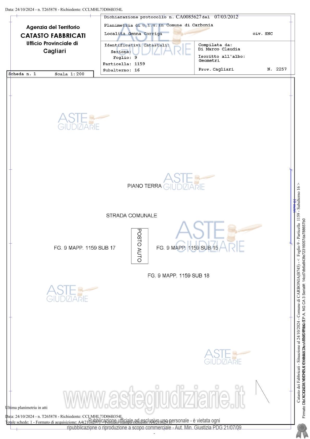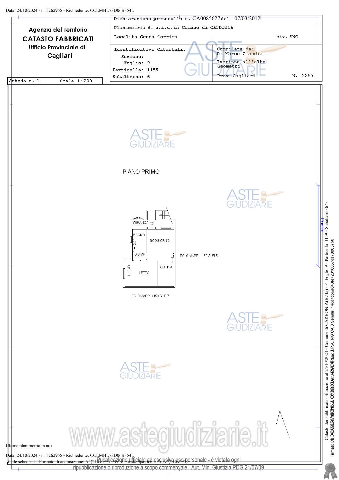 Vendita all'asta Senza incanto, con gara telematica asincrona - LOTTO 8: Carbonia, Località Genna Corriga snc, quota pari a 1/1 del diritto di proprietà di unità immobiliare, costituita da appartamento al piano primo di maggior palazzina di due piani fuori terra, con unico ingresso pedonale su veranda/balcone privato (ingresso/soggiorno con angolo cottura, disimpegno, camera, bagno) categoria A/3, consistenza 2,5 vani e posto auto scoperto in area cortilizia, categoria C6, consistenza 11 mq. Prezzo base € 36.000,00 (offerta minima € 27.000,00). Data inizio operazioni di vendita: 04/06/2026 ore 10:00. Giudice Silvia Cocco. Professionista delegato alla vendita Dott. Edoardo Sanna - Email "studioedoardosanna@gmail.com"; Tel. 070490790. Custode Giudiziario Ivg Di Cagliari - Email "ivg.visiteimmobili@tiscali.it"; Tel. 0702299036. Rif. Tribunale di Cagliari - Espropriazione immobiliare (cartabia) n. 174/2024