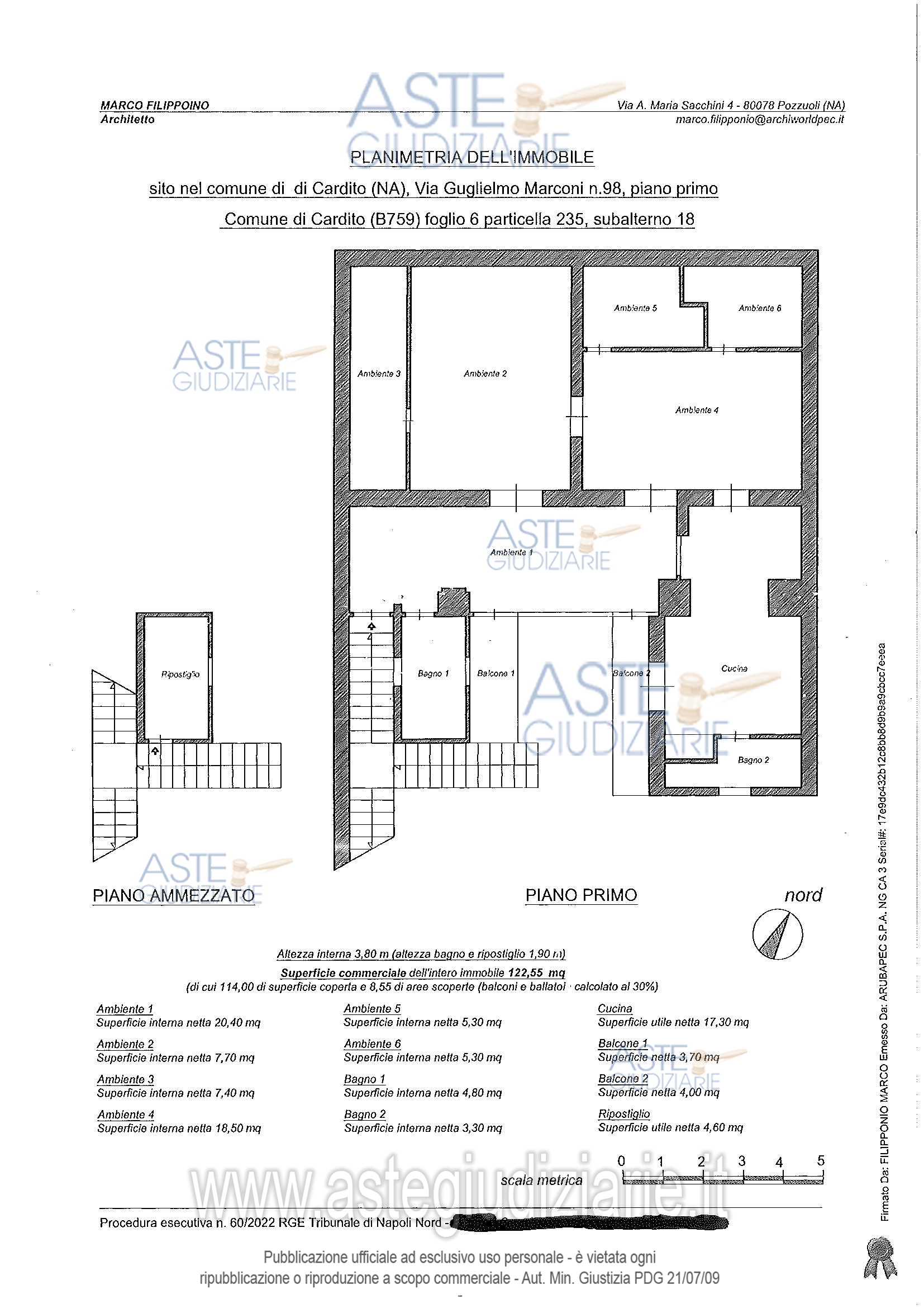 Vendita all'asta Senza incanto, con gara telematica asincrona - LOTTO UNICO: Appartamento al piano primo costituito da 6 ambienti 2 bagni e cucina in sufficienti condizioni di manutenzione.Superficie commerciale mq122,55 superficie interna netta mq 97,60 oltre balconi. Il locale deposito il cui accesso avviene da una botola presente nell’appartamento è costituito da sottotetto al piano secondo, allo stato grezzo privo di rifiniture. Superficie commerciale mq.11,40 calcolo effettuato considerando l’immobile come lastrico solare giacché la volumetria è risultata abusiva,non sanabile. Prezzo base € 99.000,00 (offerta minima € 74.250,00). Data inizio operazioni di vendita: 13/01/2026 ore 13:30. Professionista delegato alla vendita Dott. Luigi Tropeano - Email "luigi.tropeano@libero.it"; Cell. 3333869310; Tel. 0815520398. Custode Giudiziario Dott. Luigi Tropeano - Email "luigi.tropeano@libero.it"; Cell. 3333869310; Tel. 0815520398. Rif. Tribunale di Napoli Nord - Esecuzione immobiliare post legge 80 n. 60/2022