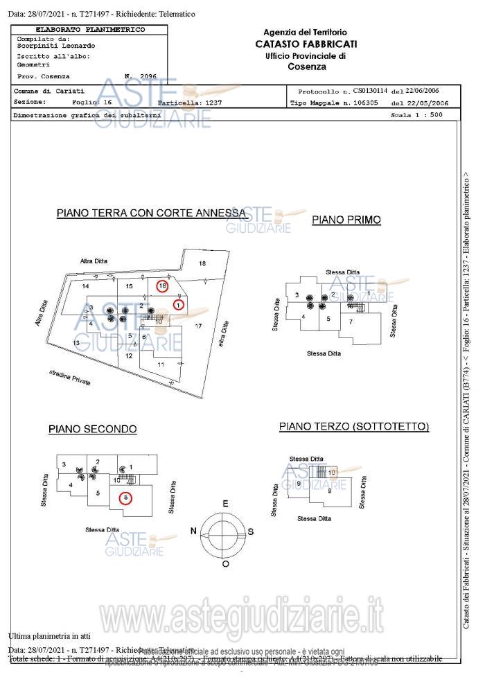 Vendita all'asta Senza incanto - LOTTO UNICO: Appartamento, posto al piano terra di un edificio condominiale ivi ubicato, identificato al N.C.E.U. del Comune di Cariati, al foglio 16, particella 1237, subalterni 1-16, categoria A/3,classe 3, consistenza 4,5 vani, piano T-1-2 . Prezzo base € 37.350,00 (offerta minima € 28.012,50). Data vendita 26/02/2026 ore 12:00. Curatore Avv. Loredana Ambrosio - Email "studio.ambrosio@virgilio.it"; Tel. 0818505797. Rif. Tribunale di Torre Annunziata - Fallimentare (nuovo rito) n. 16/2020