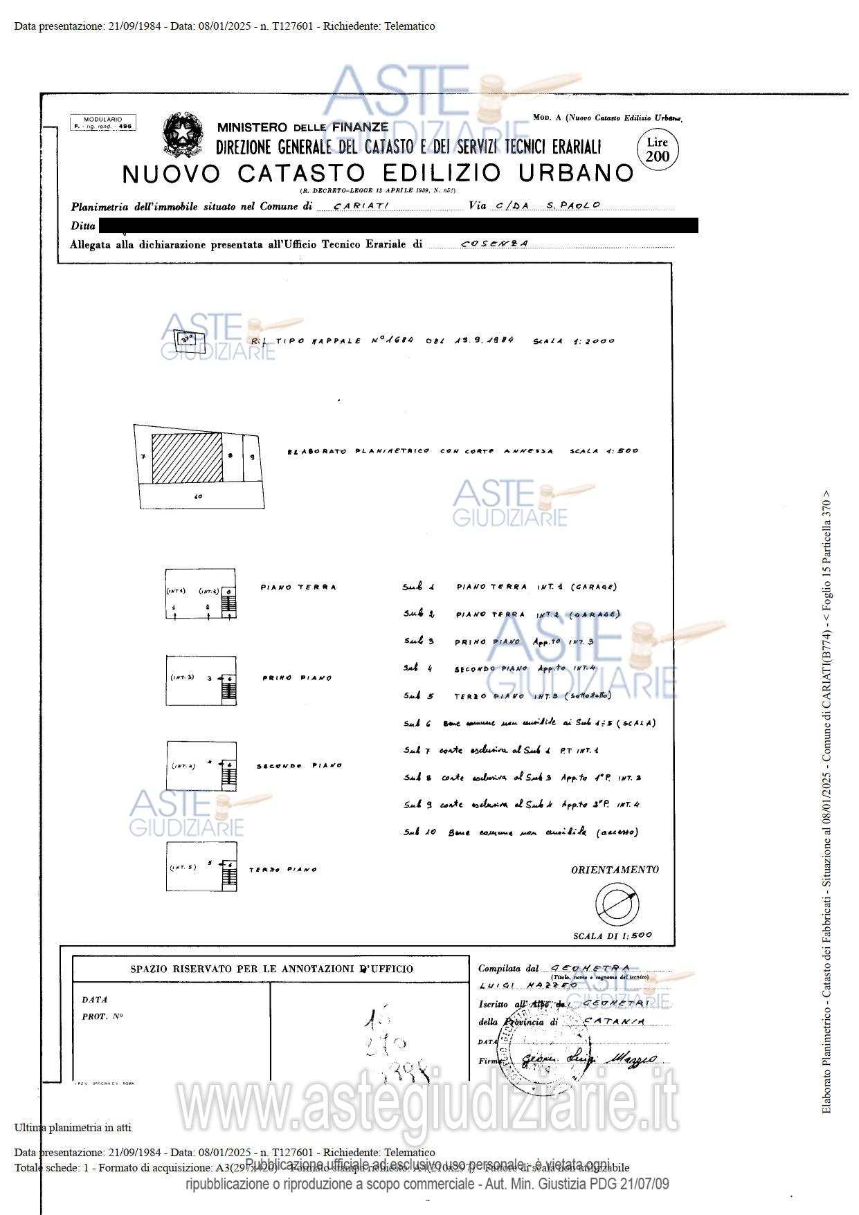 Custode Giudiziario: Avv. Fabiola Capparelli - Email "fabiola.capparelli@avvocaticastrovillari.legalmail.it".