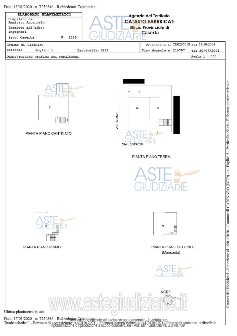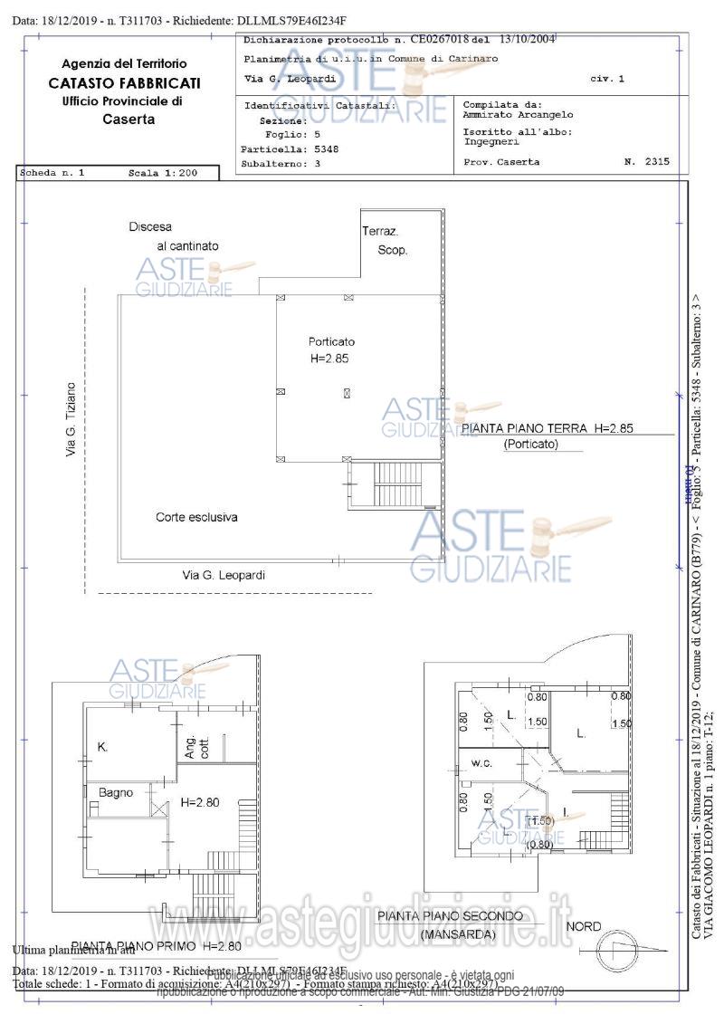 Vendita all'asta Senza incanto, con gara telematica asincrona - LOTTO 1: Piena ed esclusiva proprietà di porzione immobiliare di una villa bifamiliare corrispondente ad una unità abitativa ubicata in Carinaro (CE) alla via Giacomo Leopardi n. 2 disposta su quattro livelli di cui uno seminterrato, identificata al C.F. del predetto Comune al F. 5, p.lla 5348, subb. 2 e 3. Il cespite è occupato dai debitori. Prezzo base € 180.000,00 (offerta minima € 135.000,00). Data inizio operazioni di vendita: 16/12/2025 ore 15:00. Professionista delegato alla vendita Avv. Marco D'arcangelo - Email "marcodarca1974@gmail.com"; Tel. 0810491814. Custode Giudiziario Avv. Marco D'arcangelo - Email "marcodarca1974@gmail.com"; Tel. 0810491814. Rif. Tribunale di Napoli Nord - Esecuzione immobiliare post legge 80 n. 281/2015