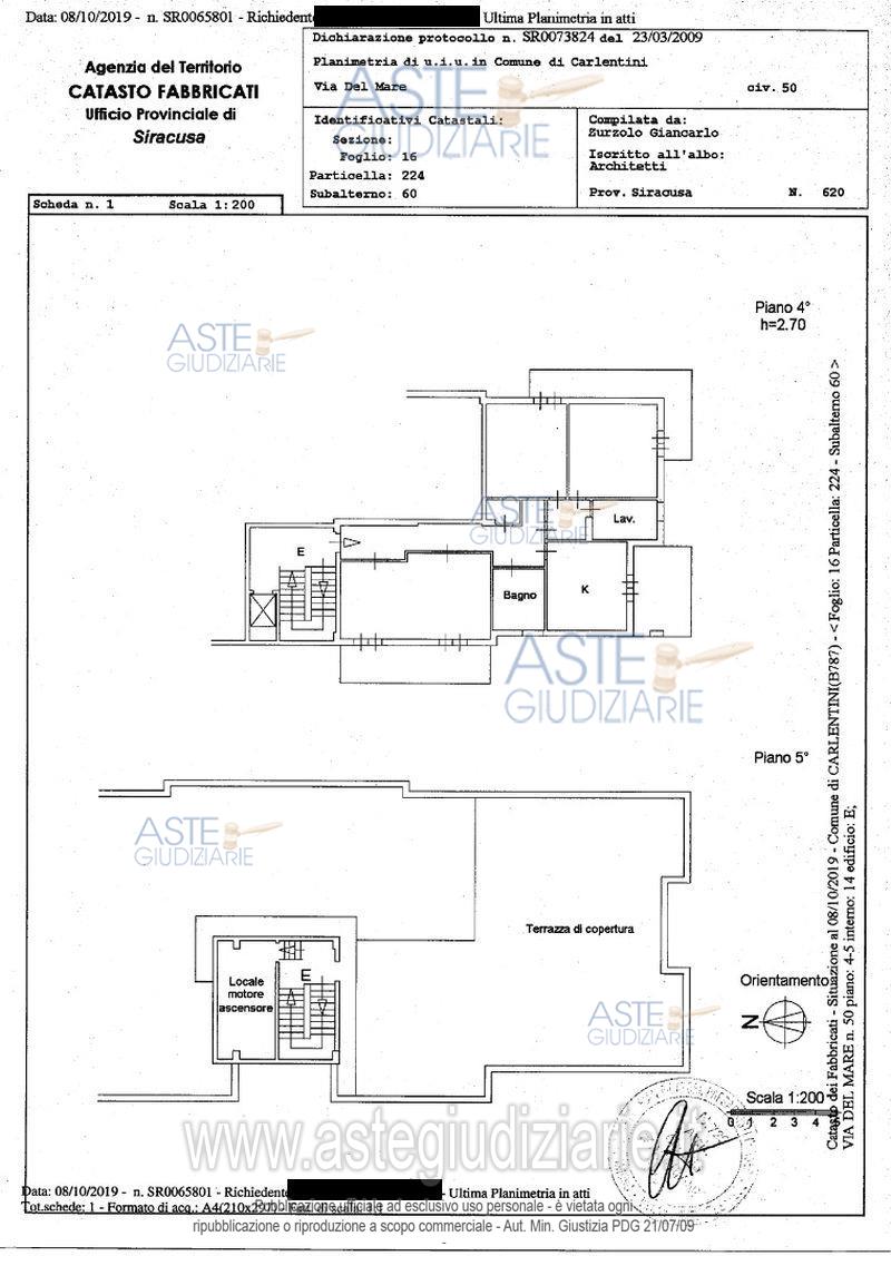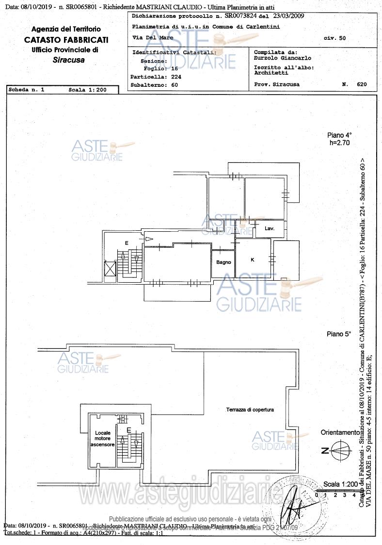 Vendita all'asta Senza incanto, con gara telematica sincrona mista - LOTTO 1: Piena proprietà di appartamento sito in Carlentini (SR), C.da Piscitello, Via del Mare, 50 - Pal. E, 4° piano e terrazza sovrastante, int. 14. Al N.C.E.U. al Fg. 16, p.lla 224, sub. 60, cat. A/3. Prezzo base € 35.089,46 (offerta minima € 26.317,10). Data vendita 18/12/2025 ore 10:00. Giudice Maria Cristina Di Stazio. Professionista delegato alla vendita Avv. Gabriele Galota - Email "galota.gabriele@gmail.com"; Tel. 09311562510. Custode Giudiziario Avv. Gabriele Galota - Email "galota.gabriele@gmail.com"; Tel. 09311562510. Rif. Tribunale di Siracusa - Esecuzione immobiliare post legge 80 n. 178/2006