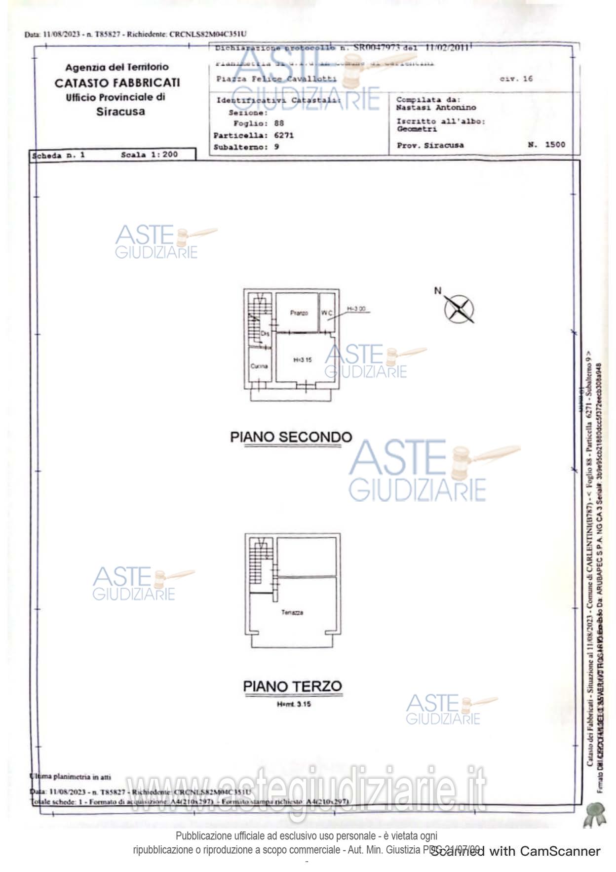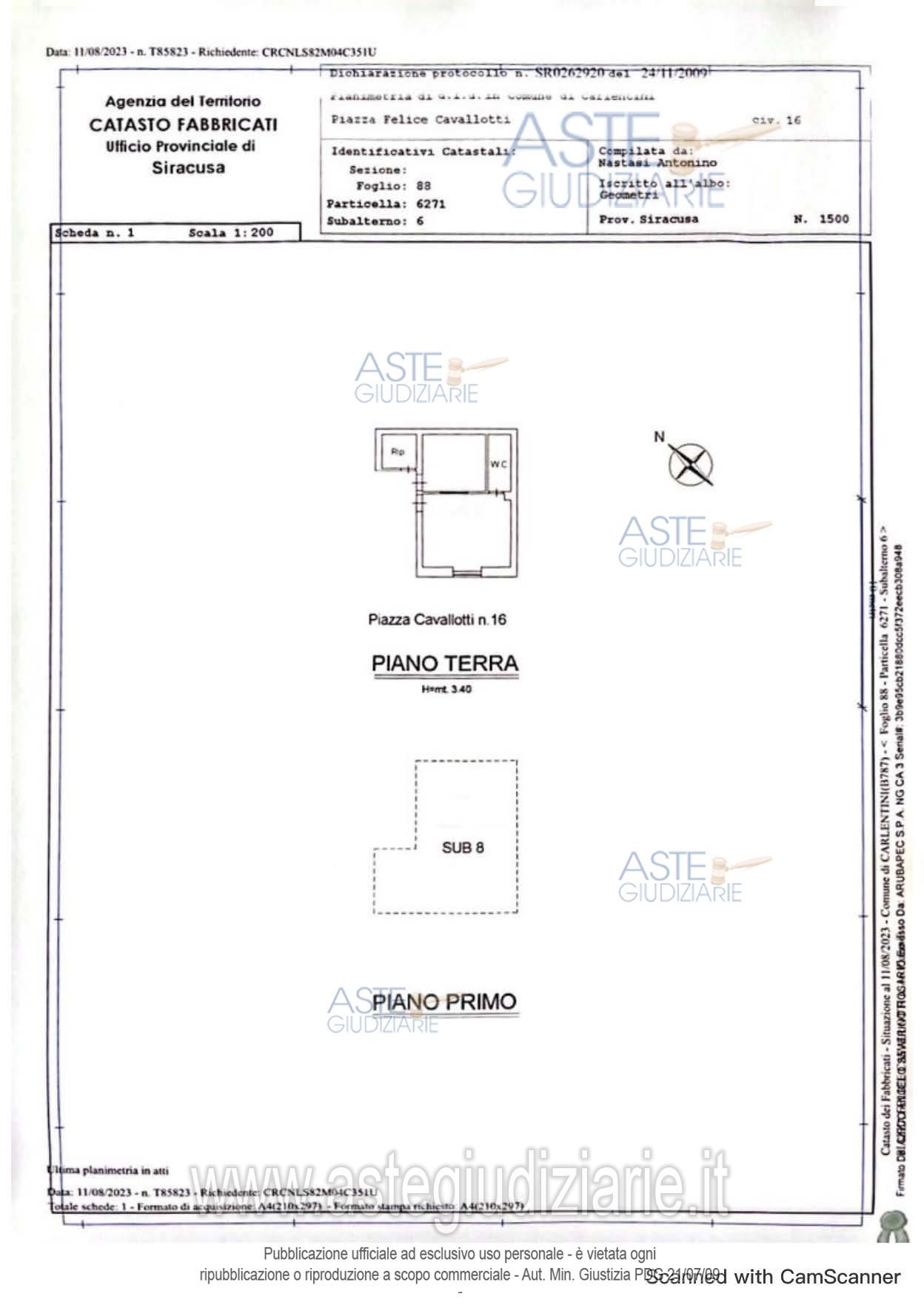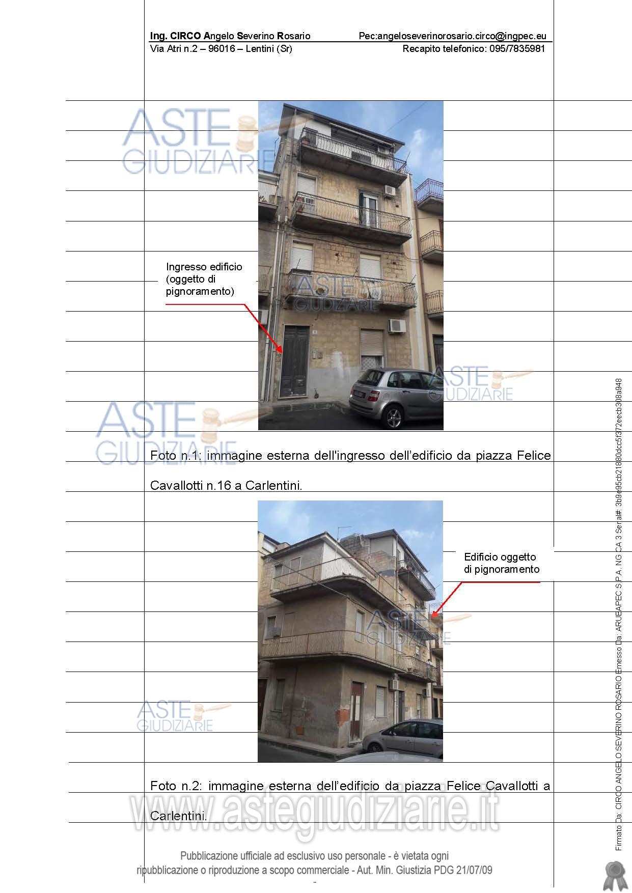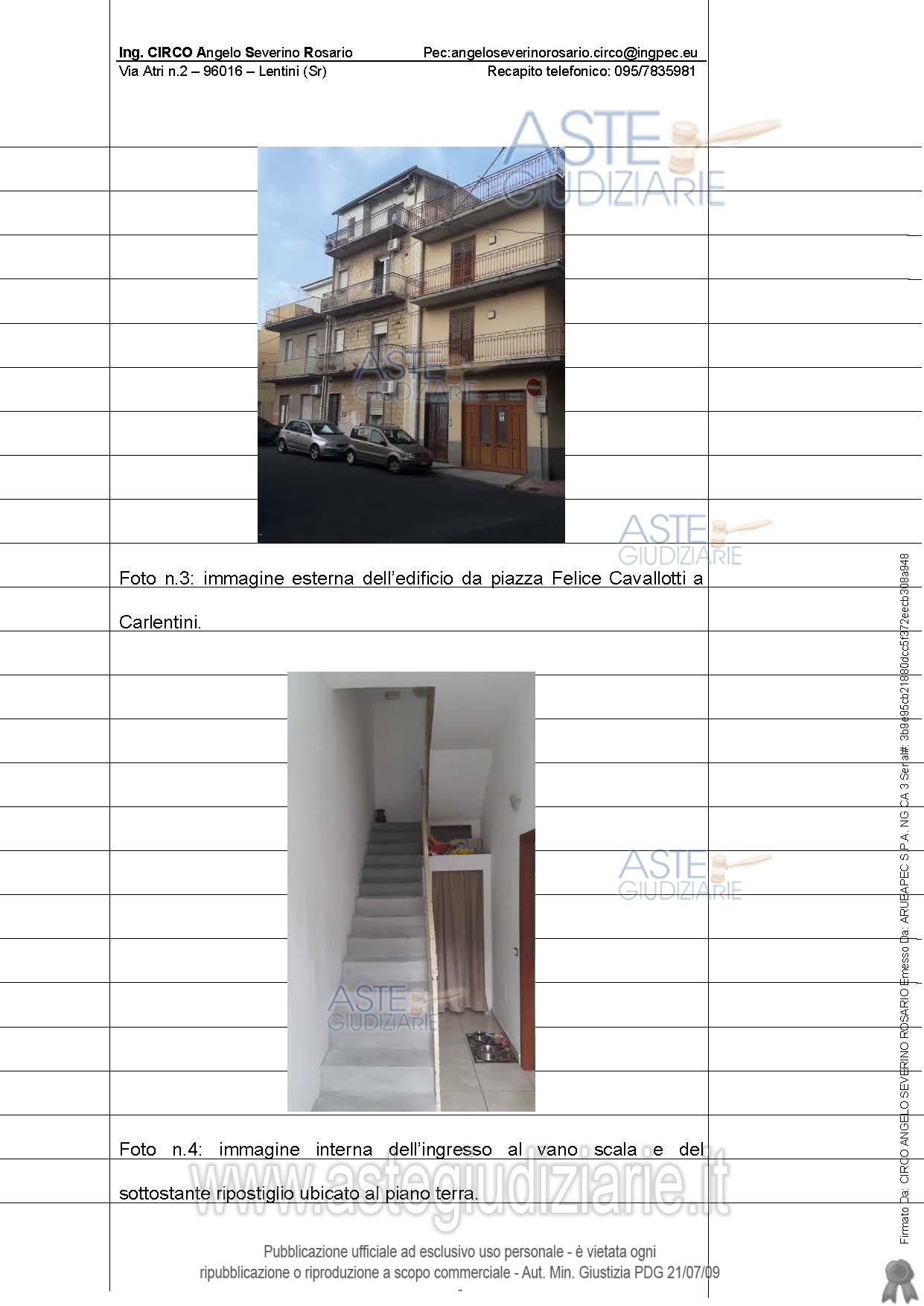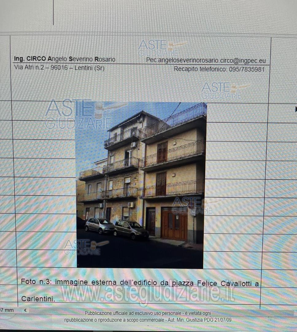 Vendita all'asta Senza incanto, con gara telematica sincrona mista - LOTTO UNICO: Unità immobiliare sita nel Comune di Carlentini (Sr) nella Piazza Felice Cavallotti n. 16, suddivisa tra piano terra, piano 1, piano 2 e piano 3. Riportata in NCEU al Fg. 88 p.lla 6271 sub 6, cl. 3, categoria A/4, vani 2,5 Rendita €. 81,34 – piano T; p.lla 6271 sub 8, cl. 3, categoria A/4, vani 2,5 Rendita €. 81,34– piano 1; p.lla 6271 sub 9, cl. 3, categoria A/4, vani 4, Rendita €. 130,15 – piano 2 e 3. Prezzo base € 28.265,62 (offerta minima € 21.199,22). Data vendita 21/04/2026 ore 12:00. Giudice Concita Cultrera. Professionista delegato alla vendita Avv. Sergio Spinoso - Email "info@studiolegalespinoso.it"; Cell. 3715716444; Tel. 0931754382. Custode Giudiziario Avv. Sergio Spinoso - Email "info@studiolegalespinoso.it"; Cell. 3715716444; Tel. 0931754382. Rif. Tribunale di Siracusa - Esecuzione immobiliare post legge 80 n. 87/2023