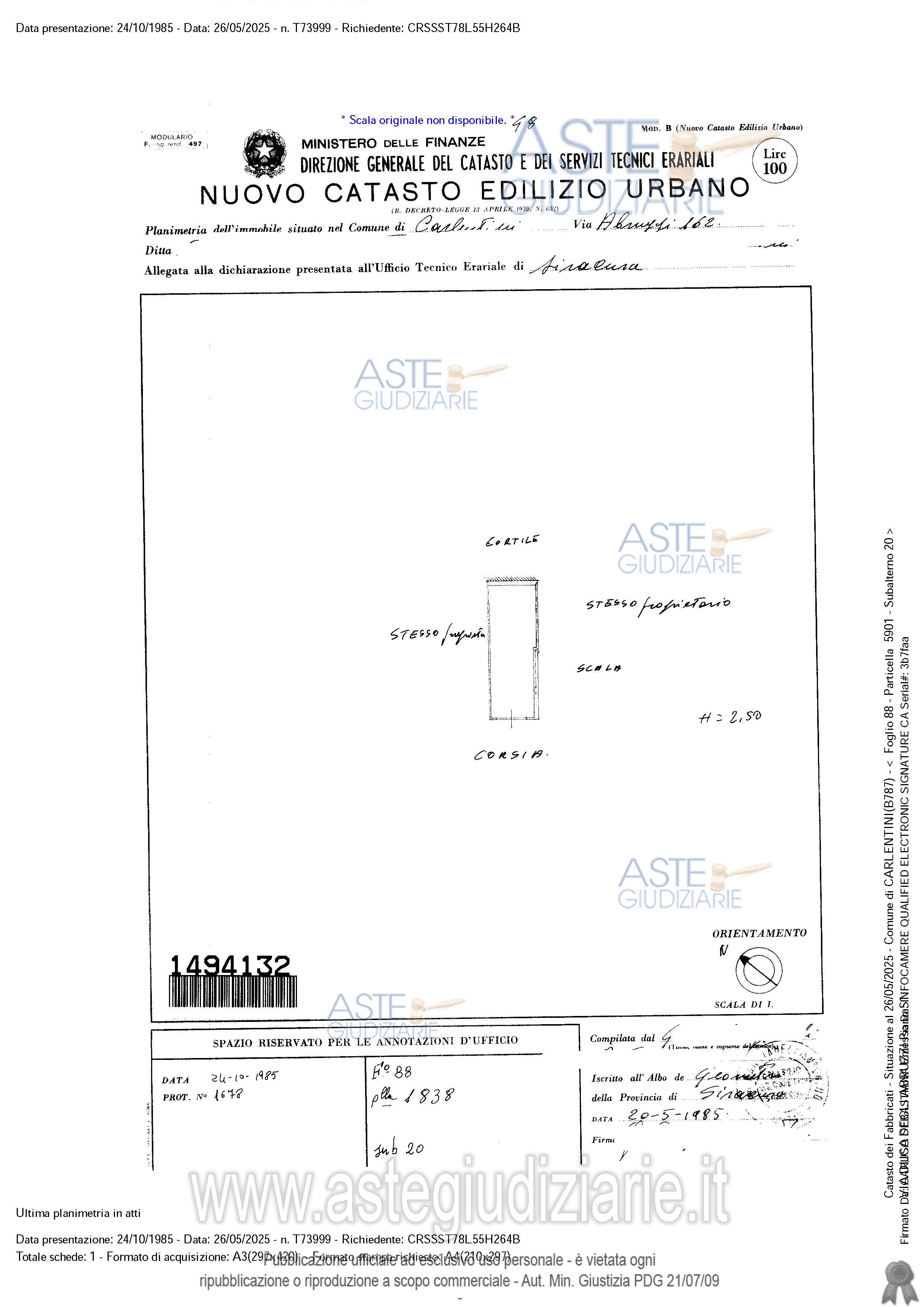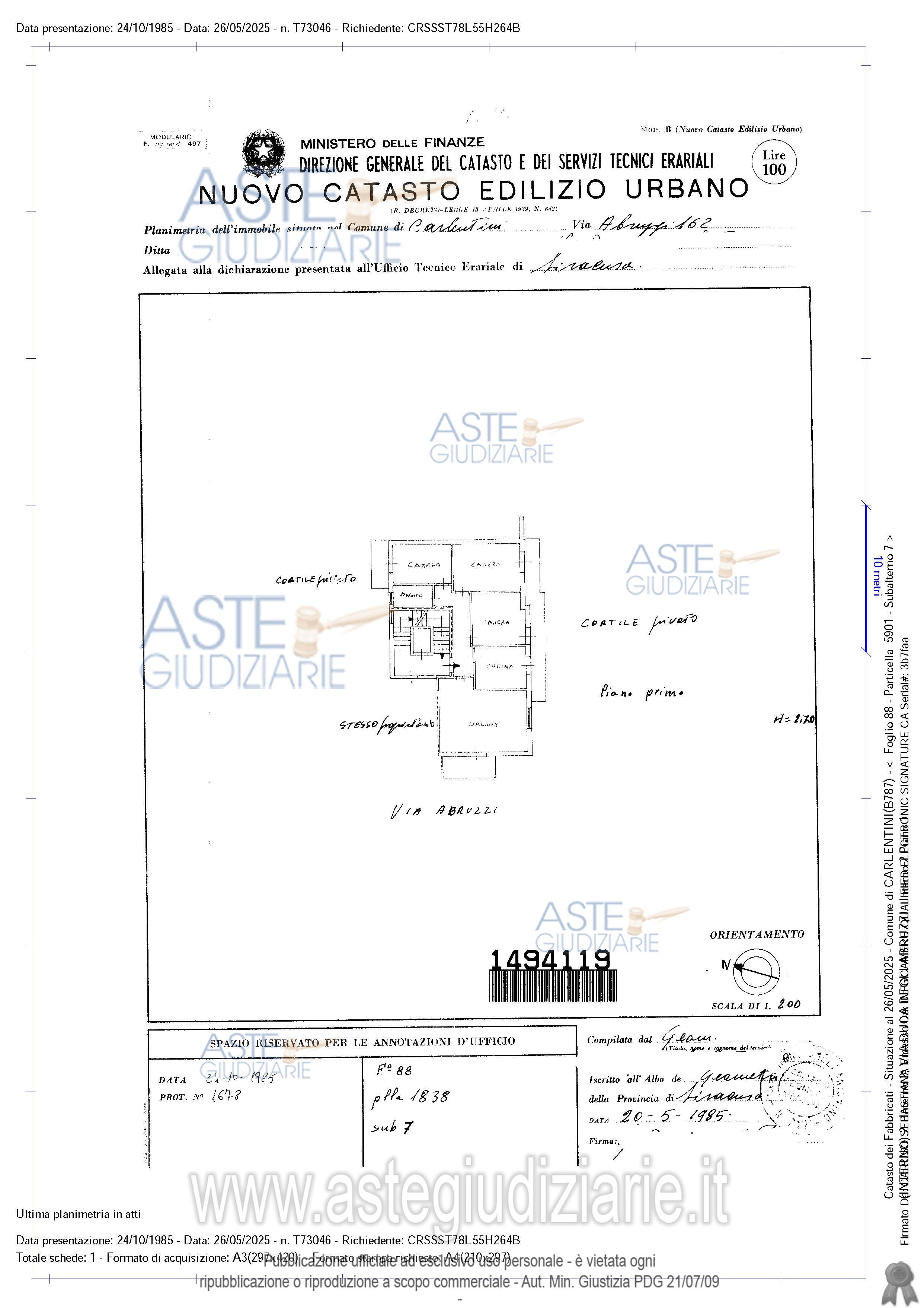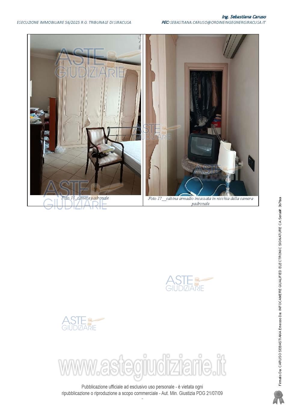 Vendita all'asta Senza incanto, con gara telematica sincrona mista - LOTTO UNICO: 1/1 di appartamento in Carlentini, via Duca degli Abruzzi n. 162, piano I, int. 2, nel C.F. al fg. 88, p.lla 5901/7, cat. A/2, vani 6, z.c. 1, classe 2, sup. cat. Mq. 108 e di garage in Carlentini, via Duca degli Abruzzi n. 162, piano seminterrato nel C.F. al fg. 88, p.lla 5901/20, cat. C/6, mq. 28, z.c. 1, classe 5. Prezzo base € 53.303,99 (offerta minima € 39.977,99). Data vendita 12/06/2026 ore 11:00. Giudice Giuseppe Solarino. Professionista delegato alla vendita Avv. Luca Bianchi - Email "lucbian1973@gmail.com"; Tel. 0931492345. Custode Giudiziario Avv. Luca Bianchi - Email "lucbian1973@gmail.com"; Tel. 0931492345. Rif. Tribunale di Siracusa - Espropriazione immobiliare (cartabia) n. 56/2025