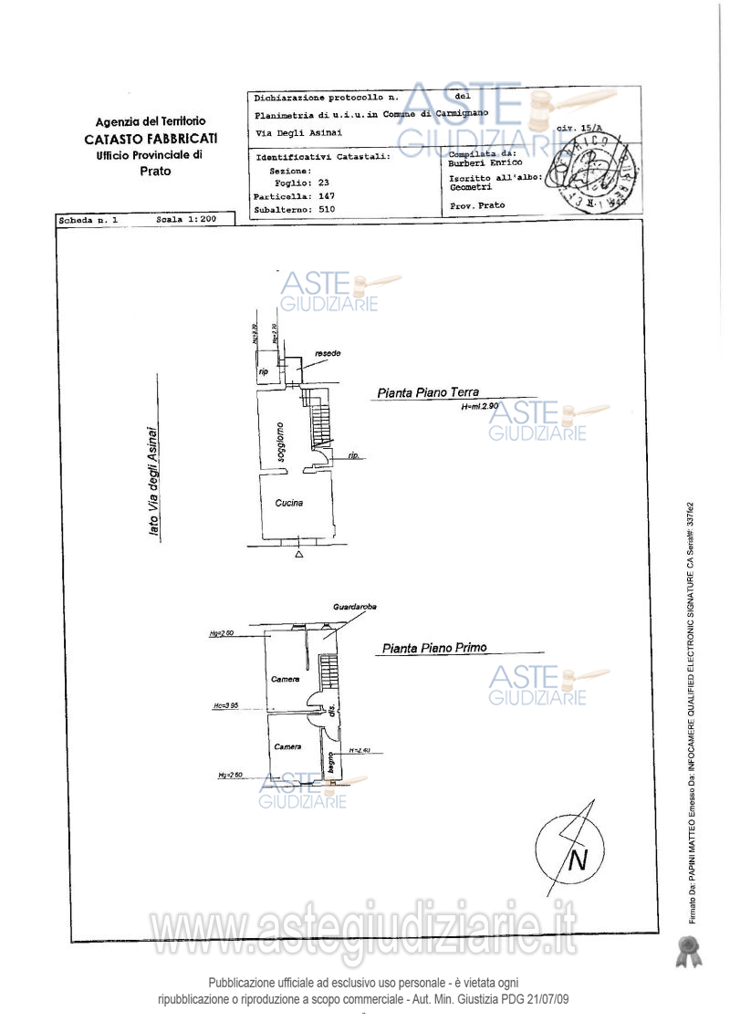 Vendita in attesa dell'emissione del nuovo bando d'asta. LOTTO UNICO: TRIB.PRATO-RGE6/2024. Carmignano (PO) via degli Asinai n.15/a. Piena proprietà di unità immobiliare dislocata sui piani terra e primo, facente parte di un più amplio fabbricato, composta al PT da vani identificati in planimetria catastale come cucina, soggiorno, ripostiglio, oltre ad un piccolo resede ed un ripostiglio con accesso esterno all’abitazione; al P1 da vani identificati in planimetria catastale come due camere, bagno, guardaroba, disimpegno. Ultimo prezzo base € 79.862,00 (offerta minima € 59.897,00). Giudice Enrico Capanna. Professionista delegato alla vendita Not. Francesco D'ambrosi - Email "fdambrosi@notariato.it"; Tel. 0574574609. Custode Giudiziario Is.Ve.G. S.R.L. - Email "prenota.po@isveg.it"; Tel. 3773131585. Rif. Tribunale di Prato - Espropriazione immobiliare (cartabia) n. 6/2024