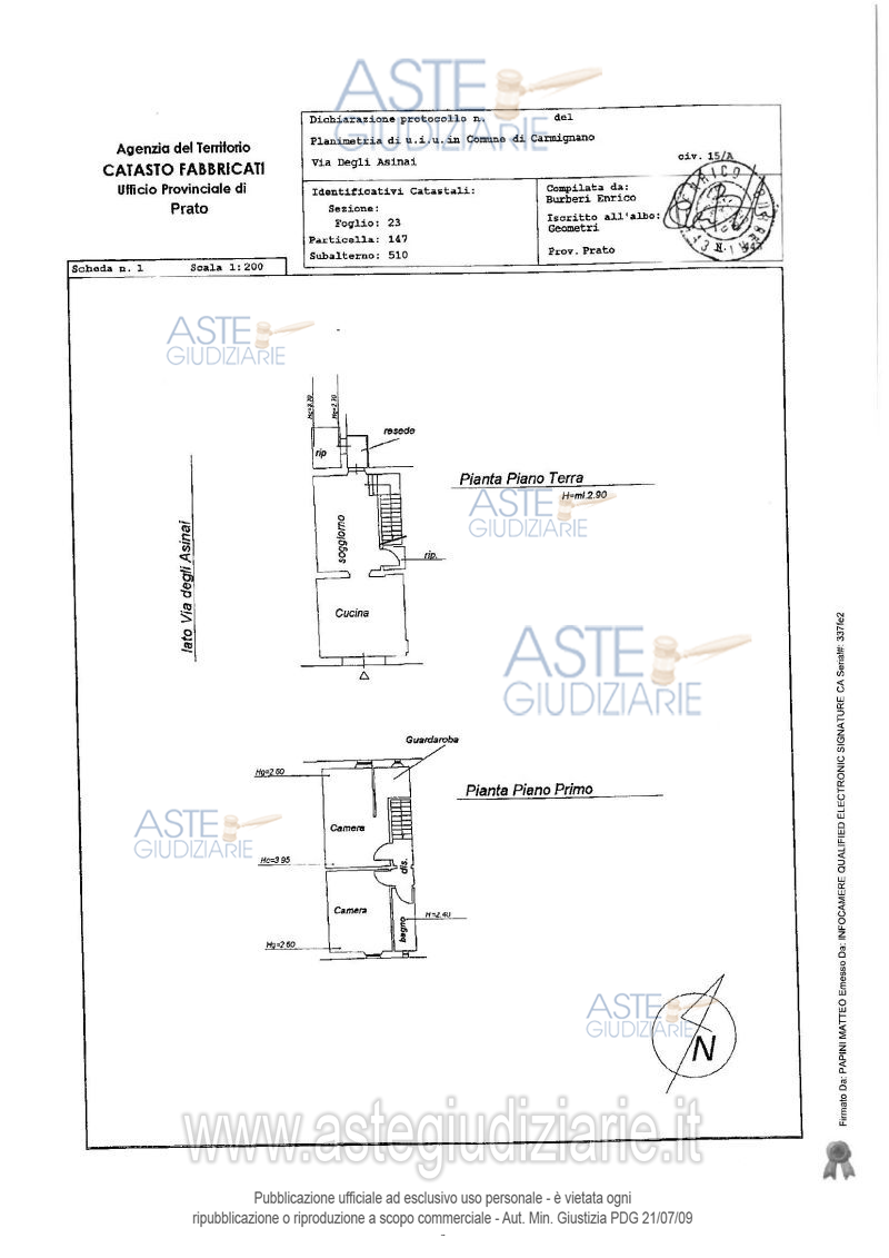 Vendita all'asta Senza incanto, con gara telematica sincrona - LOTTO UNICO: TRIB.PRATO-RGE6/2024. Carmignano (PO) via degli Asinai n.15/a. Piena proprietà di unità immobiliare dislocata sui piani terra e primo, facente parte di un più amplio fabbricato, composta al PT da vani identificati in planimetria catastale come cucina, soggiorno, ripostiglio, oltre ad un piccolo resede ed un ripostiglio con accesso esterno all’abitazione; al P1 da vani identificati in planimetria catastale come due camere, bagno, guardaroba, disimpegno. Prezzo base € 59.897,00 (offerta minima € 44.923,00). Data vendita 11/02/2026 ore 12:00. Giudice Dott. Elisabetta Donelli. Professionista delegato alla vendita Not. Francesco D'ambrosi - Email "fdambrosi@notariato.it"; Tel. 0574574609. Custode Giudiziario Is.Ve.G. S.R.L. - Email "prenota.po@isveg.it"; Tel. 3773131585. Rif. Tribunale di Prato - Espropriazione immobiliare (cartabia) n. 6/2024