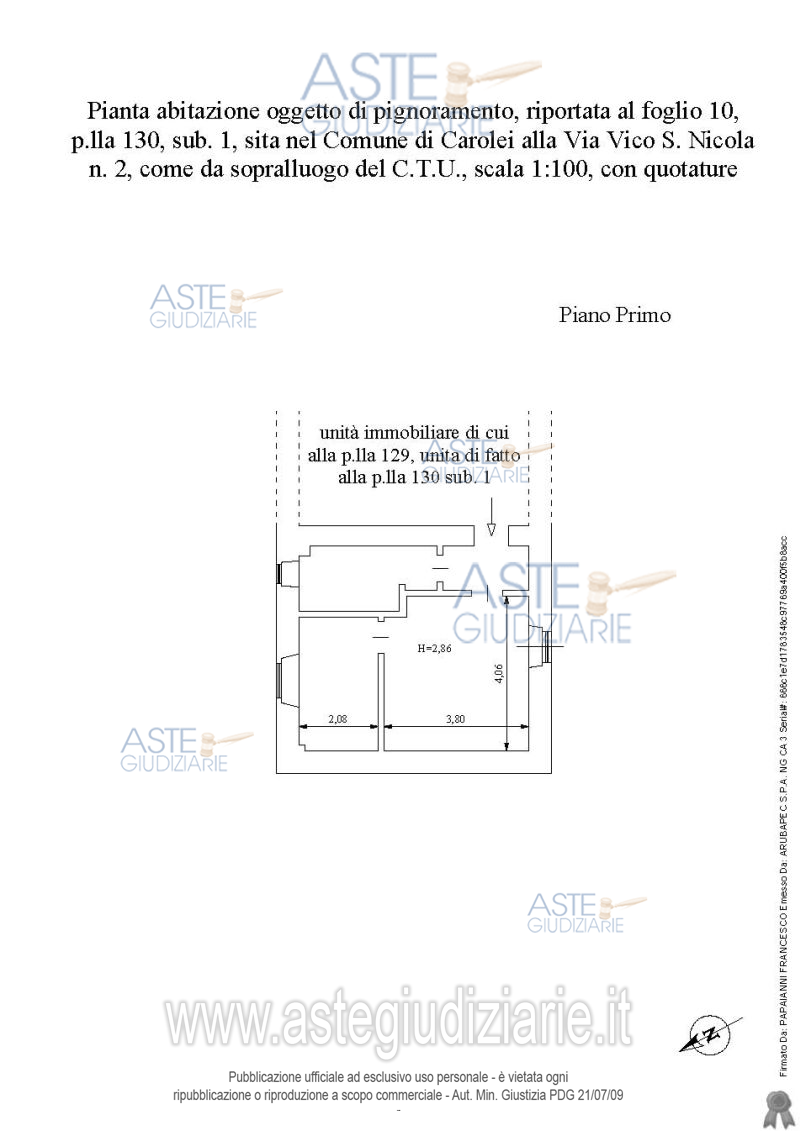 Vendita all'asta Senza incanto, con gara telematica sincrona - LOTTO 8: Piena proprietà bene pignorato riportato al foglio 10 p.lla 130 sub 1 sito in Carolei Via Vico San Nicola n. 2 abitazione sita al piano terra. categoria A/5 di classe 2, piano primo, rendita catastale euro 24,79, consistenza vani 1, superficie catastale 42 mq. Il lotto di cui sopra risulta meglio descritto nella relazione dell’esperto estimatore del 05/06/2023 che è da intendersi qui integralmente richiamata e trascritta e deve essere consultata dall’offerente per ogni informazione. Prezzo base € 14.858,85 (offerta minima € 11.144,14). Data vendita 24/10/2025 ore 15:30. Giudice Dott. Giuseppe Sicilia. Professionista delegato alla vendita Dott. Adriana Bajamonte - Email "abajamonte@gmail.com"; Tel. 3356300362. Custode Giudiziario Dott. Adriana Bajamonte - Email "abajamonte@gmail.com"; Tel. 3356300362. Rif. Tribunale di Cosenza - Esecuzione immobiliare post legge 80 n. 186/2021