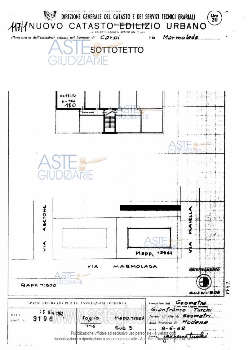 Vendita all'asta Senza incanto, con gara telematica asincrona - LOTTO UNICO: Carpi – zona servita, a 1 km dal centro, ampio appartamento con 3 camere, balcone, soffitta e 2 autorimesse. Riscaldamento autonomo, spese condominiali contenute. Immobile già locato, scadenza contratto al 05/11/2026. Prezzo base € 94.000,00 (offerta minima € 70.500,00). Data inizio operazioni di vendita: 18/06/2026 ore 12:30. Giudice: Umberto Ausiello.