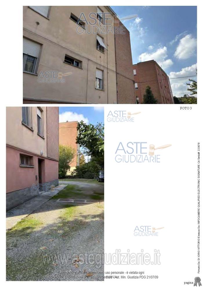 Vendita all'asta Senza incanto, con gara telematica asincrona - LOTTO UNICO: PIENA PROPRIETÀ di app.to di civile abitazione posto a piano 3°(mq catastali 90,00 circa), PIENA PROPRIETA’ di autorimessa al PT (mq catastali 14,00 circa), il tutto ubicato in una palazzina a Carpi (MO), Via Bari n°23. L’app.to è composto da ingresso, cucina, soggiorno, 2 camere da letto, bagno e 2 terrazzi. Non è presente ascensore condominiale. I beni pignorati risultano in mediocre stato di manutenzione. Le unità immobiliari risultano attualmente occupate senza titolo da persone diverse dagli esecutati. Prezzo base € 95.000,00 (offerta minima € 71.250,00). Data inizio operazioni di vendita: 12/05/2026 ore 11:00. Professionista delegato alla vendita Dott. Alessandro Cavani - Email "alessandro.cavani@studiocavani.it"; Tel. 0592929137. Custode Giudiziario Alex Manelli - Email "visiteimmobili@ivgmodena.it"; Tel. 059847301. Rif. Tribunale di Modena - Esecuzione immobiliare post legge 80 n. 205/2024