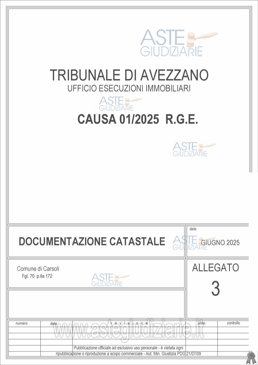 Vendita all'asta Senza incanto, con gara telematica asincrona - LOTTO UNICO: Diritti pari alla piena proprietà di un fabricato di tipo economico ubicato nel centro storico del Comune di Carsoli (AQ). Prezzo base € 49.850,00 (offerta minima € 37.387,50). Data inizio operazioni di vendita: 13/01/2026 ore 16:00. Professionista delegato alla vendita Avv. Vittorio Rinaldi - Email "vittoriorinaldiss@yahoo.it"; Cell. 3483045717; Tel. 086336169. Custode Giudiziario Avv. Vittorio Rinaldi - Email "vittoriorinaldiss@yahoo.it"; Cell. 3483045717; Tel. 086336169. Rif. Tribunale di Avezzano - Espropriazione immobiliare (cartabia) n. 1/2025