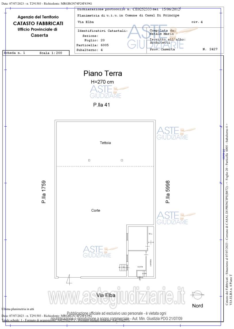 Vendita all'asta Senza incanto, con gara telematica asincrona - LOTTO UNICO: Piena ed intera proprietà di compendio ubicato in Casal di Principe (CE), alla via Elba n. 4, costituito da appartamento adibito ad ufficio, così composto: ingresso, cucina-soggiorno, corridoio, camera da letto e WC, corredato da ampia tettoia ad uso deposito di mq 135 e da corte esclusiva di mq. 292,20. Prezzo base € 73.125,00 (offerta minima € 54.843,75). Data inizio operazioni di vendita: 27/01/2026 ore 17:00. Professionista delegato alla vendita Dott. Salvatore Russo - Email "studiorusso4@gmail.com"; Tel. 0818031586. Rif. Tribunale di Napoli Nord - Contenzioso civile n. 6549/2024