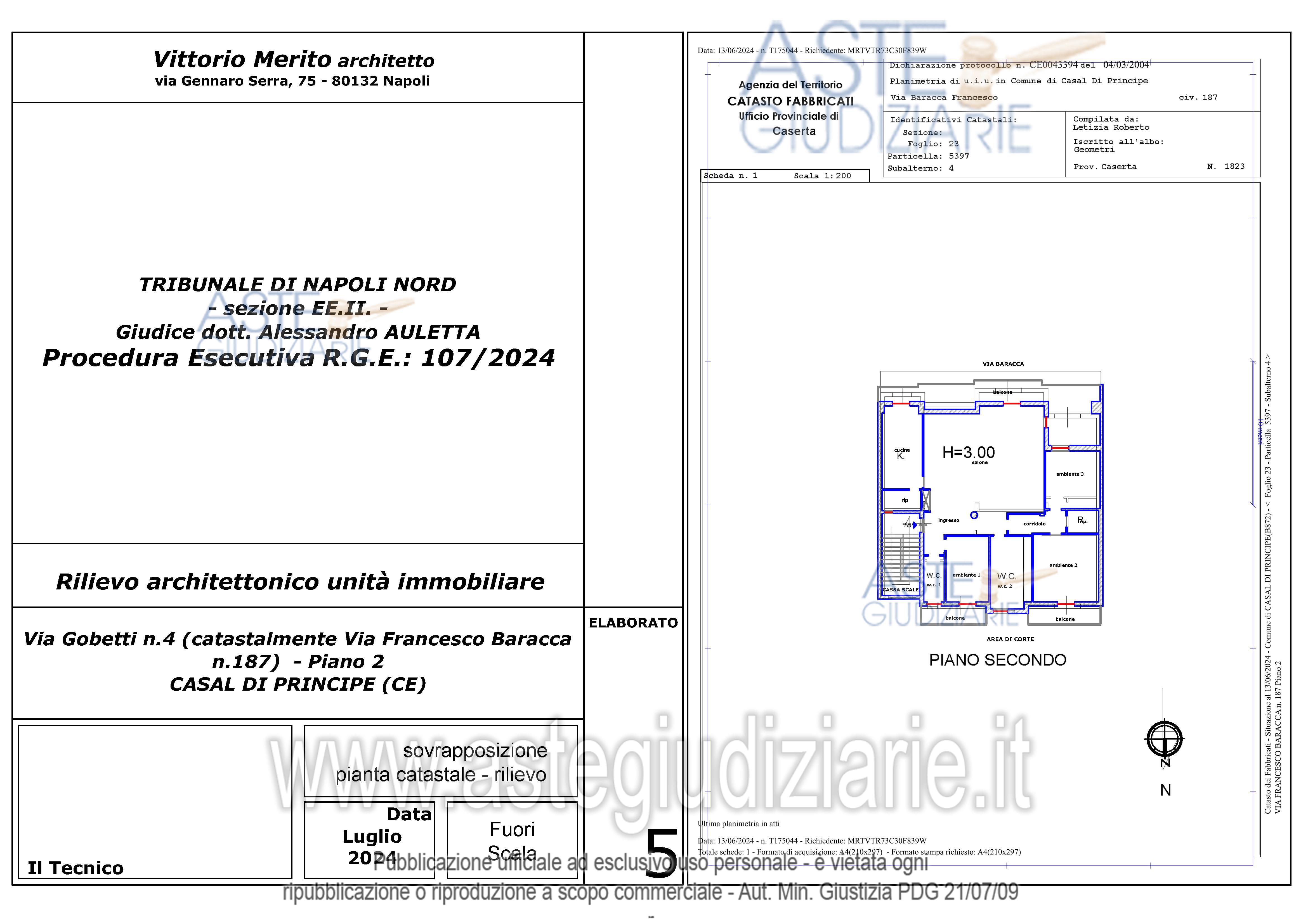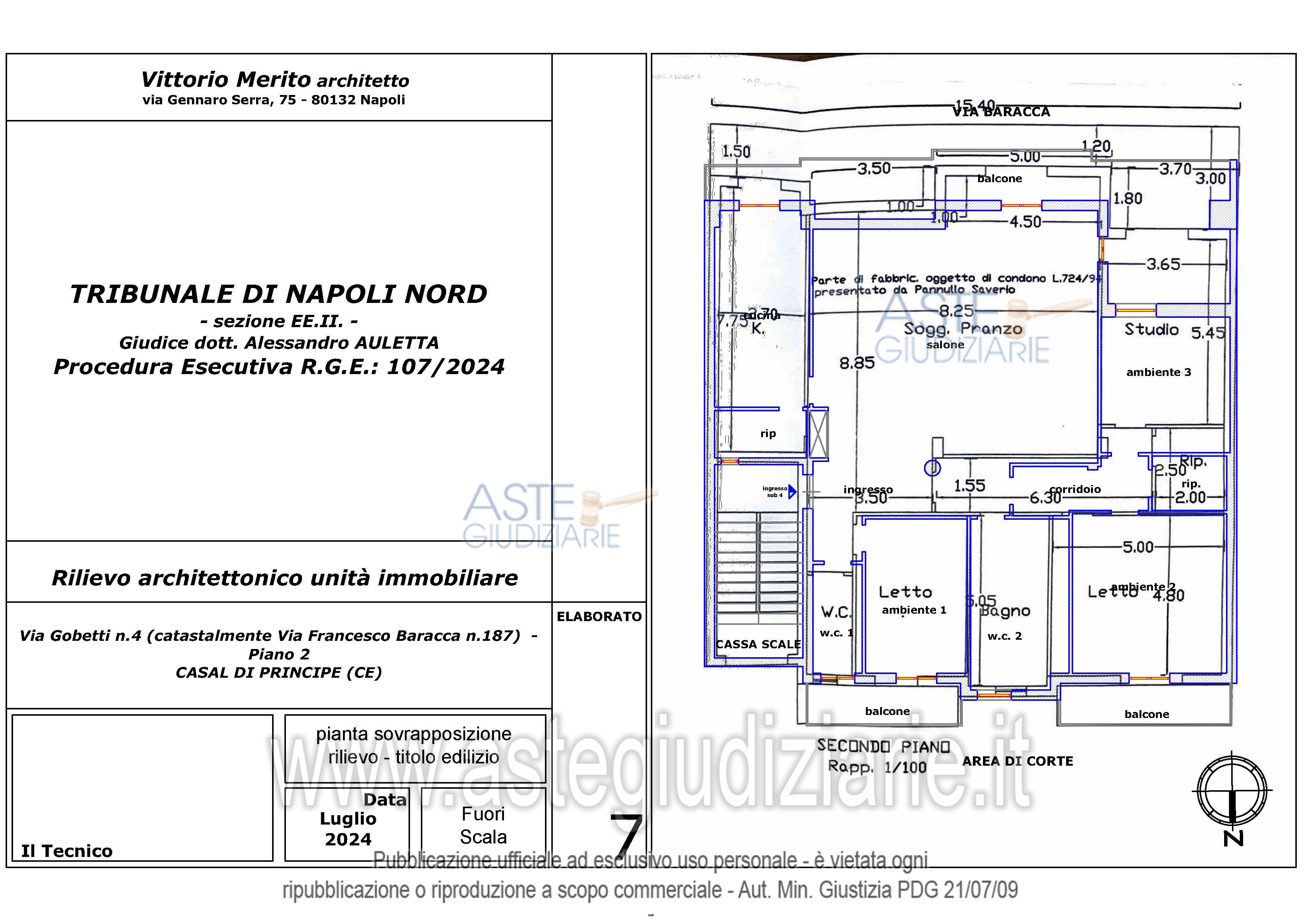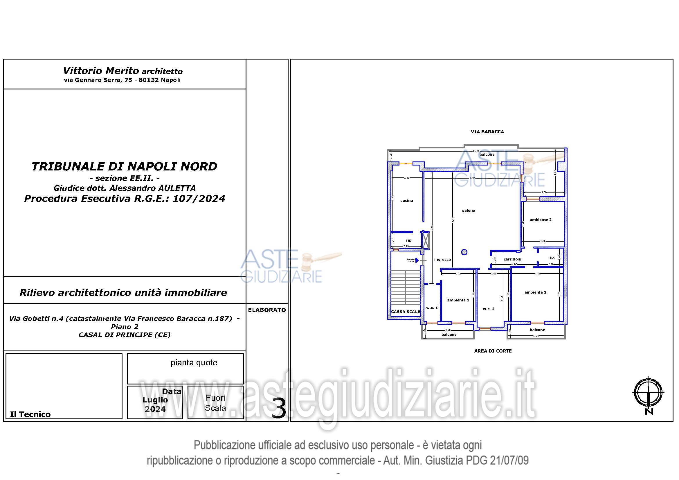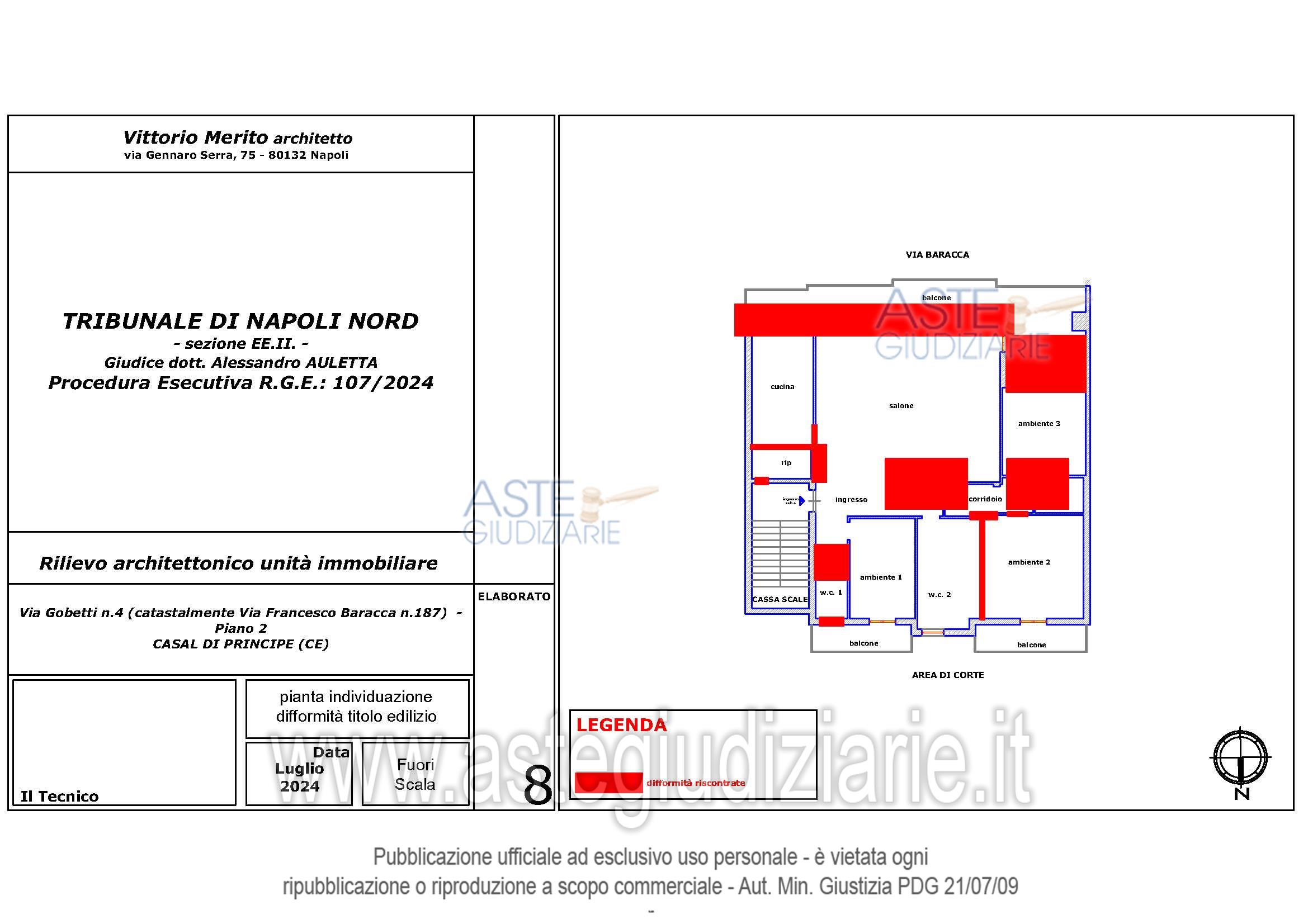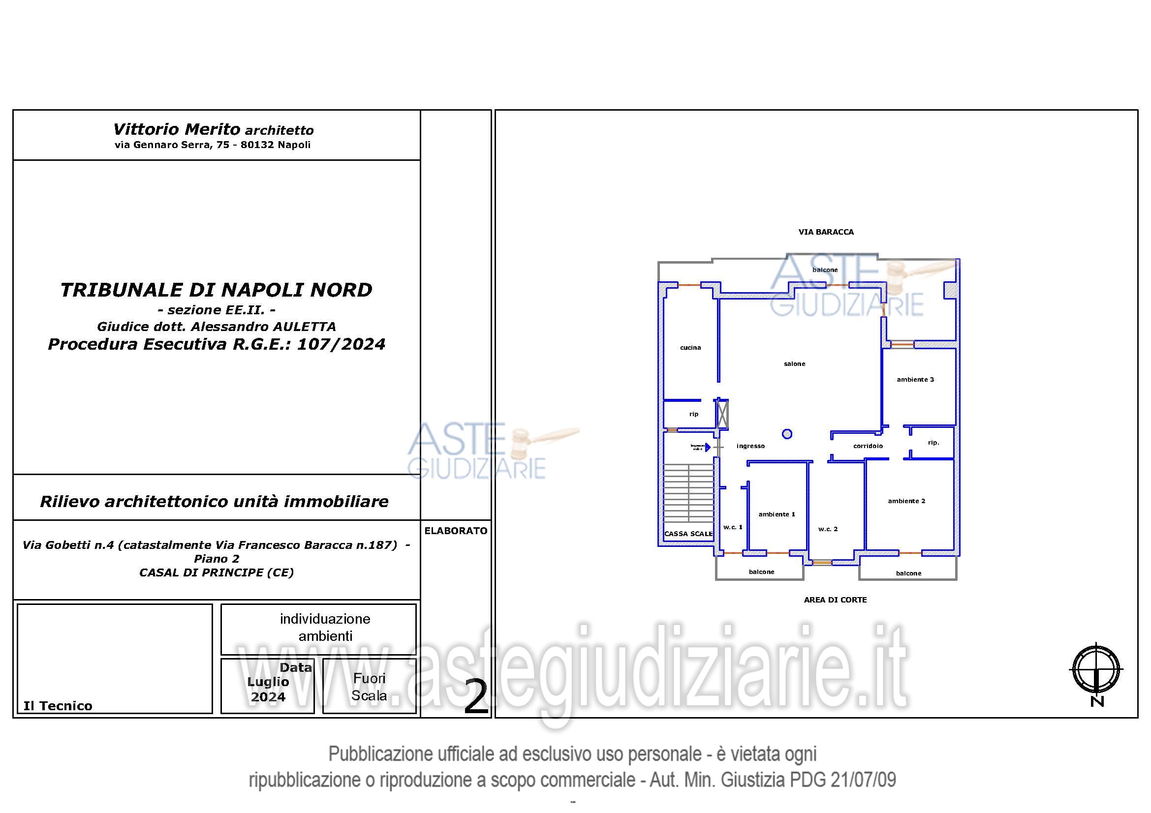 Vendita all'asta Senza incanto, con gara telematica asincrona - LOTTO 2: Piena ed intera proprietà dell’appartamento ubicato al secondo piano del fabbricato (di tre piani fuori terra) sito in Casal di Principe (CE) alla Via Gobetti n.4 (catastalmente Via Francesco Baracca n.187). Prezzo base € 94.000,00 (offerta minima € 70.500,00). Data inizio operazioni di vendita: 11/03/2026 ore 15:00. Professionista delegato alla vendita Avv. Giorgia Viola - Email "avv.giorgiaviola@libero.it"; Tel. 08118858628. Custode Giudiziario Avv. Giorgia Viola - Email "avv.giorgiaviola@libero.it"; Tel. 08118858628. Rif. Tribunale di Napoli Nord - Espropriazione immobiliare (cartabia) n. 107/2024