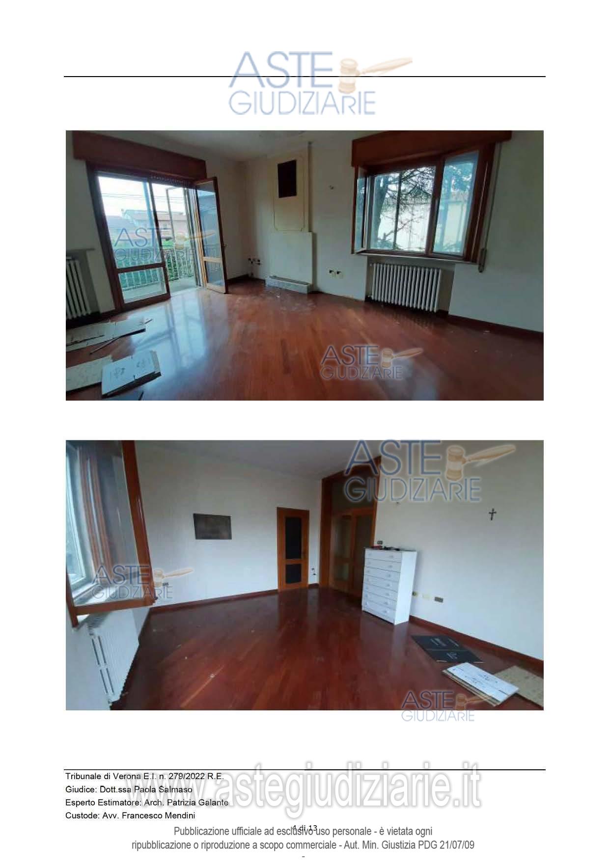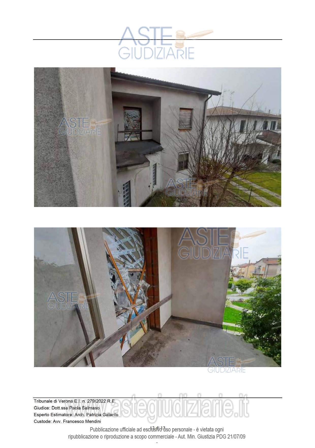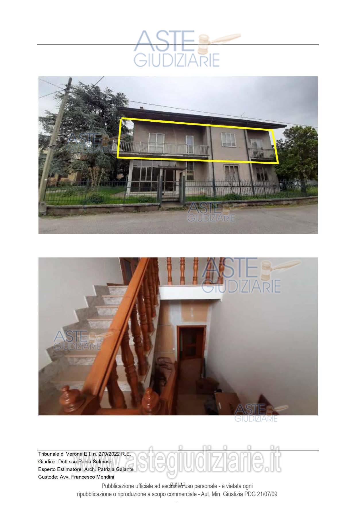 Vendita in attesa dell'emissione del nuovo bando d'asta. LOTTO 2: Casaleone (VR), Via Alighieri 3, in palazzina bifamiliare piena proprietà di appartamento al piano primo di palazzina bifamiliare non rimodernato, e di stanza al grezzo non accessibile di mq. 33,5. Sono compresi i proporzionali diritti di comproprietà sugli enti comuni e spazi di uso comune ai sensi dell’art. 1117 c.c. censiti al Catasto Terreni del Comune di Casaleone (VR) Fg 4: mn. 102 – ente urbano ha.0.10.15 e al Catsato Fabbricati Fg. 4 - mn. 102 sub. 7 – Via Dante Alighieri n. 3 p.T- BCNC. Ultimo prezzo base € 48.000,00 (offerta minima € 36.000,00). Giudice Dott. Paola Salmaso. Professionista delegato alla vendita Avv. Roberta Garzatti - Email "notes@notariato.it"; Tel. 0458006661. Custode Giudiziario Francesco Mendini - Email "francescomendini@lumenlex.it"; Tel. 0458006684. Rif. Tribunale di Verona - Esecuzione immobiliare post legge 80 n. 279/2022