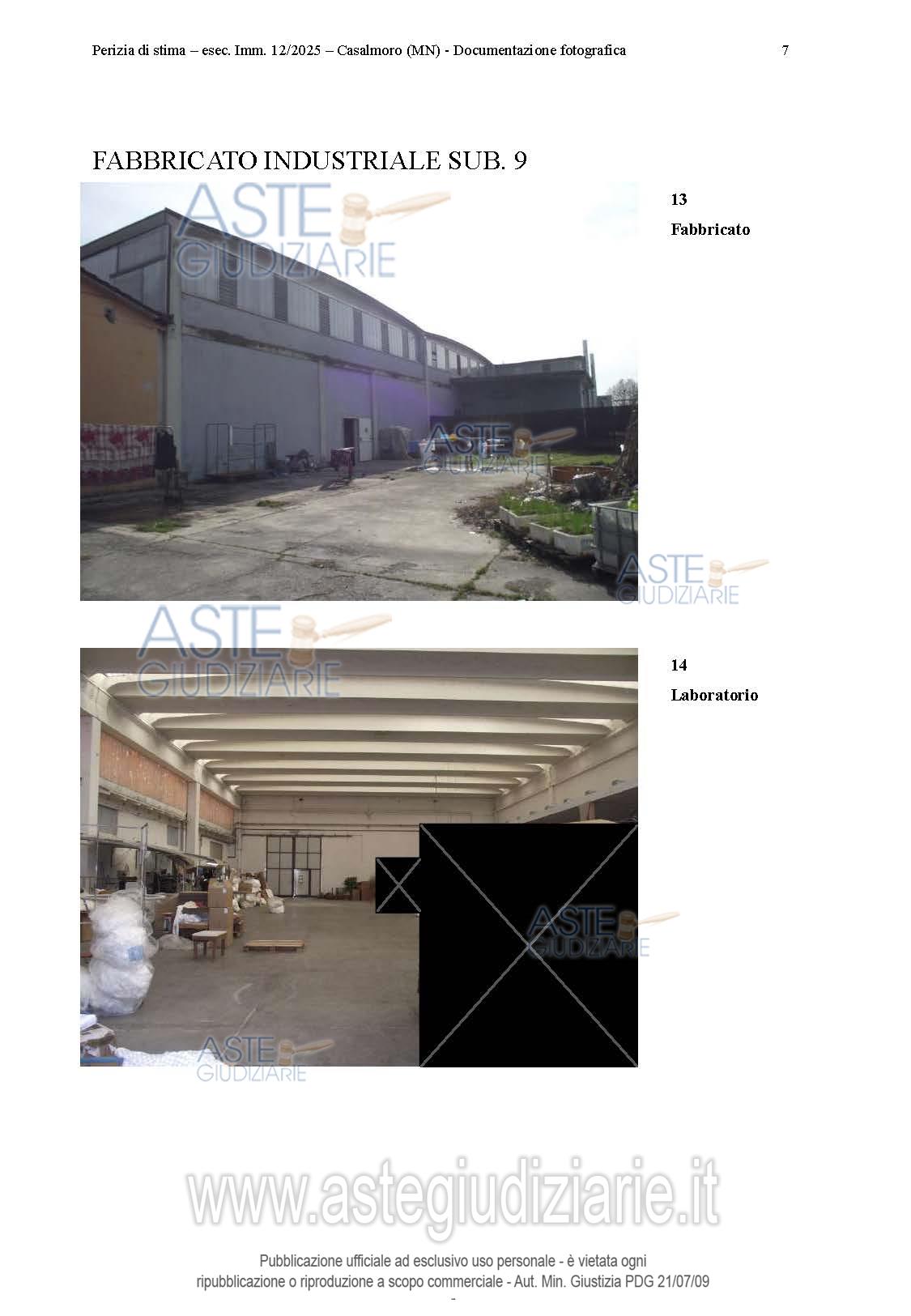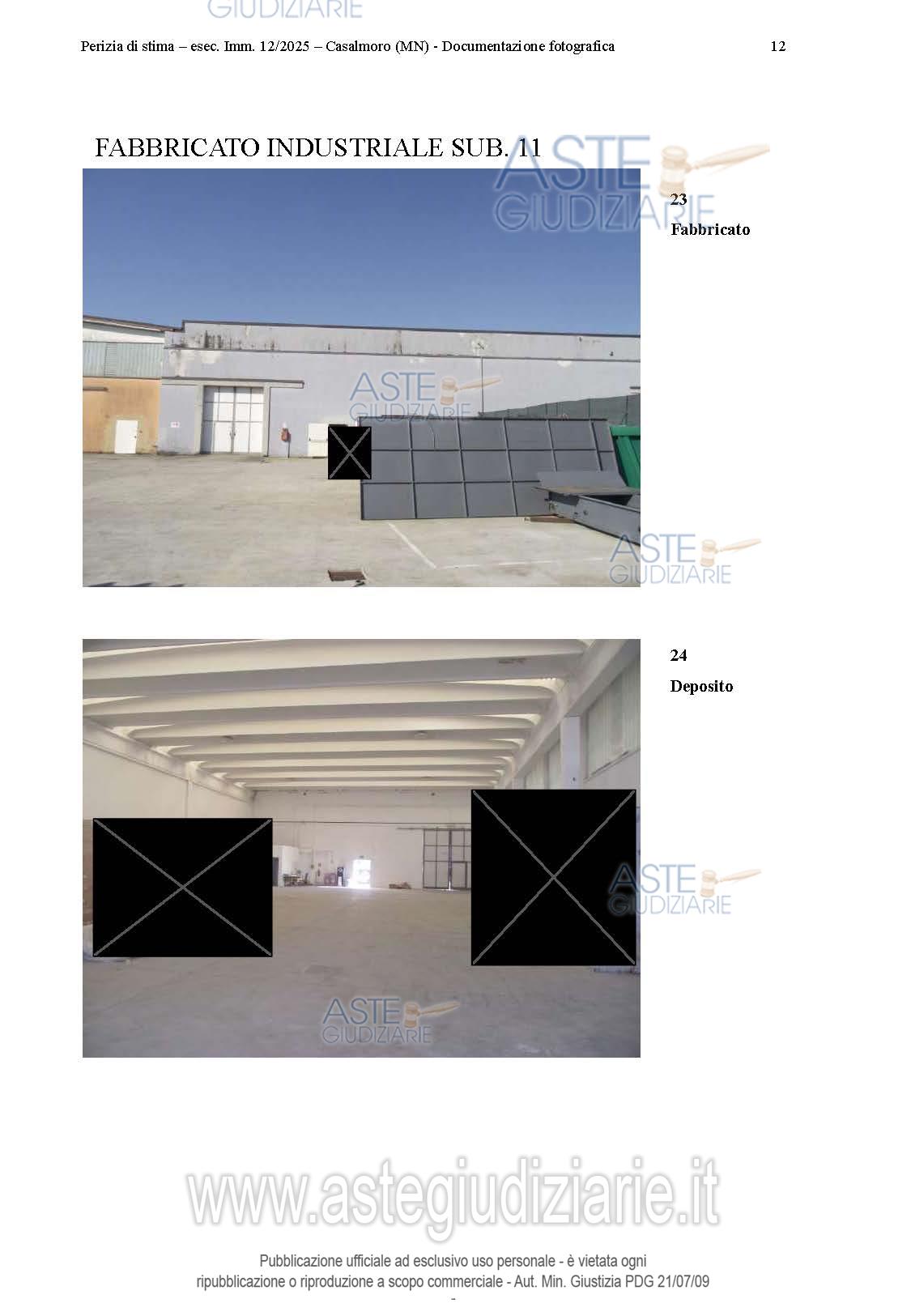 Vendita all'asta Senza incanto, con gara telematica sincrona mista - LOTTO UNICO: Intera piena proprietà di: Bene 1: Abitazione al PT; Bene 2: Capannone ad uso industriale al PT; Bene 3: Capannone ad uso industriale al PT; Bene 4: Capannone ad uso industriale al PT; Bene 5: Capannone ad uso industriale al PT; Bene 6: Compendio immobiliare ad uso industriale con area cortiliva; Bene 7: Fabbricato strumentale su un piano fuori terra; Bene 8: Compendio immobiliare comune ad uso industriale con area cortiliva; Bene 9: Terreno di 490 mq; Bene 10: Terreno di 340 mq; Bene 11: Terreno di 60 mq. Prezzo base € 586.589,00 (offerta minima € 439.942,00). Data vendita 14/05/2026 ore 16:00. Giudice Francesca Arrigoni. Professionista delegato alla vendita Avv. Patrizia Rodella - Tel. 0376368470. Custode Giudiziario Sovemo Srl - Email "immobiliaremantova@sovemo.com"; Tel. 0376220694. Rif. Tribunale di Mantova - Espropriazione immobiliare (cartabia) n. 12/2025