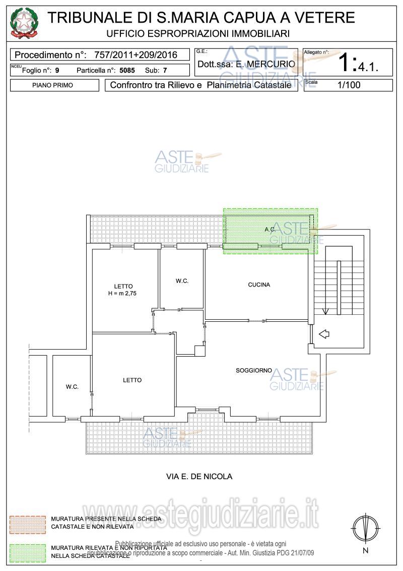 Vendita all'asta Senza incanto - LOTTO UNICO: Piena ed intera proprietà di appartamento e box auto. L'appartamento, contraddistinto dall'interno 4, è posto al primo piano della Scala A ed è composto da vano salone-soggiorno, cucina, due camere da letto e servizio igienico, oltre a due balconi posti. Prezzo base € 42.188,00 (offerta minima € 31.641,00). Data vendita 09/06/2026 ore 10:00. Professionista delegato alla vendita Avv. Michele Asciore - Email "micheleasciore@alice.it"; Tel. 0823845300. Custode Giudiziario Avv. Michele Asciore - Email "micheleasciore@alice.it"; Tel. 0823845300. Rif. Tribunale di Santa Maria Capua Vetere - Esecuzione immobiliare post legge 80 n. 757/2011