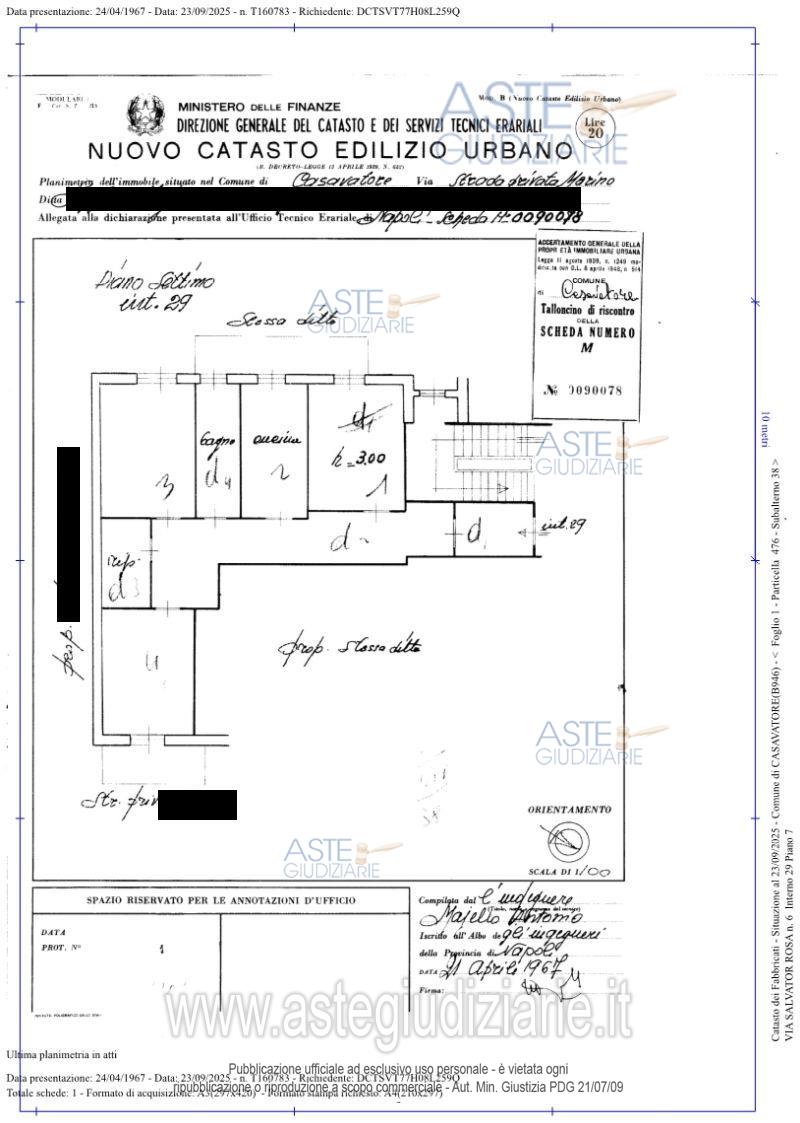 Vendita all'asta Senza incanto, con gara telematica asincrona - LOTTO UNICO: Piena ed intera proprietà dell’appartamento sito in Casavatore, alla Via Salvator Rosa, 6, posto al piano settimo, per una superficie interna complessiva di mq 126,85 lordi e terrazzi esterni per una superficie complessiva pari a mq 15,82 posti a servizio dell’unità abitativa. Prezzo base € 163.000,00 (offerta minima € 122.250,00). Data inizio operazioni di vendita: 15/07/2026 ore 15:00. Professionista delegato alla vendita: Avv. Diego Diegosorrentino@Gmail.Com - Email "diegosorrentino@gmail.com"; Cell. 328/1790065.
