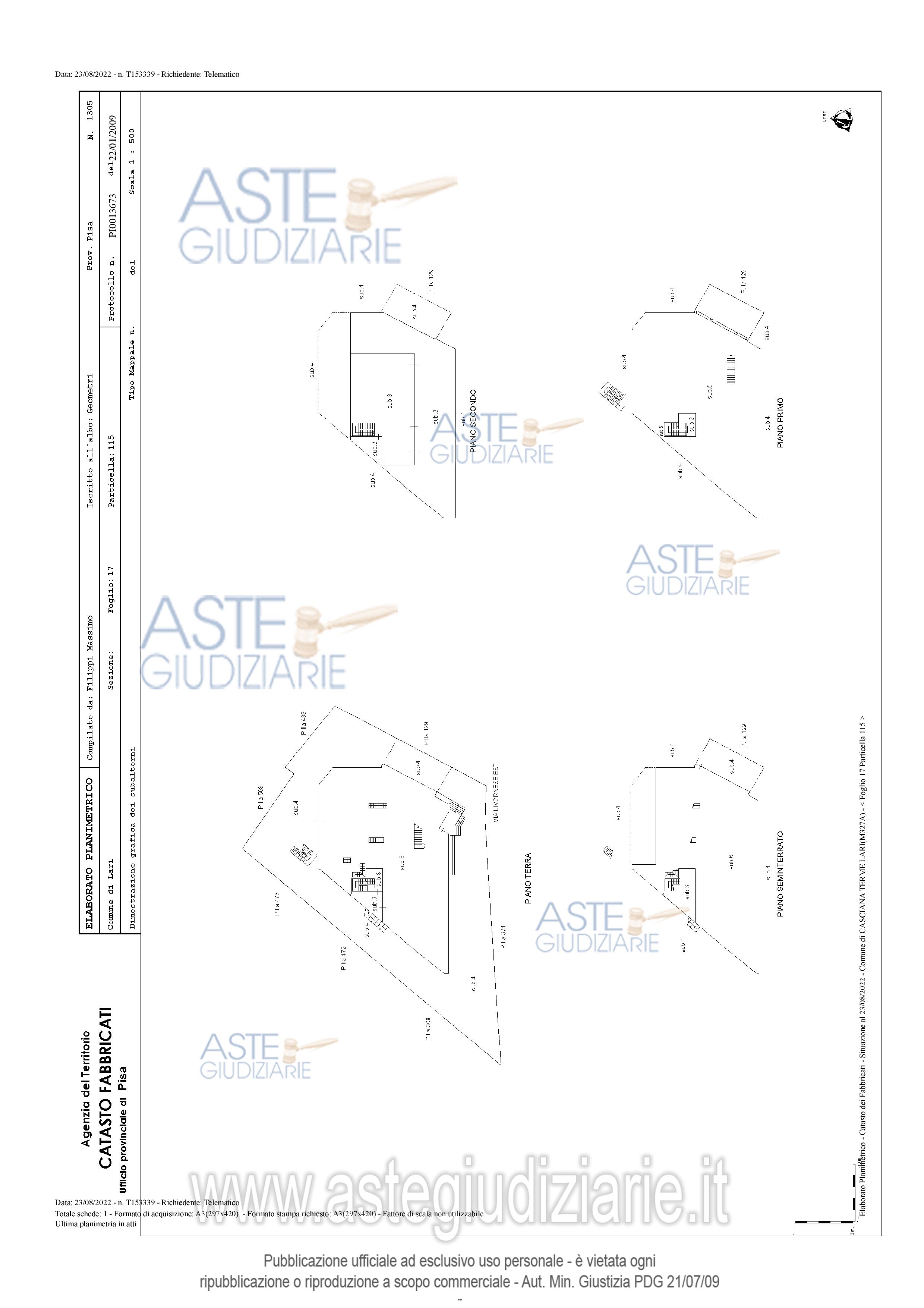 Vendita all'asta Senza incanto, con gara telematica asincrona - LOTTO UNICO: Appartamento situato al piano secondo, inserito in più ampio fabbricato a destinazione mista, completo di terrazze, cantina e loggia, di superficie convenzionale complessiva di 229,50 mq . Prezzo base € 135.548,44 (offerta minima € 101.661,33). Data inizio operazioni di vendita: 20/03/2026 ore 10:00. Giudice Dott. Marco Zinna. Professionista delegato alla vendita Dott. Andrea Ciuti - Email "ANDREA@STUDIO-CIUTI.IT"; Tel. 050779042. Custode Giudiziario Dott. Cosimo Erriquez - Email "prenotazionipisa@astagiudiziaria.com"; Cell. 3468748140; Tel. 3468748140. Rif. Tribunale di Pisa - Esecuzione immobiliare post legge 80 n. 15/2022