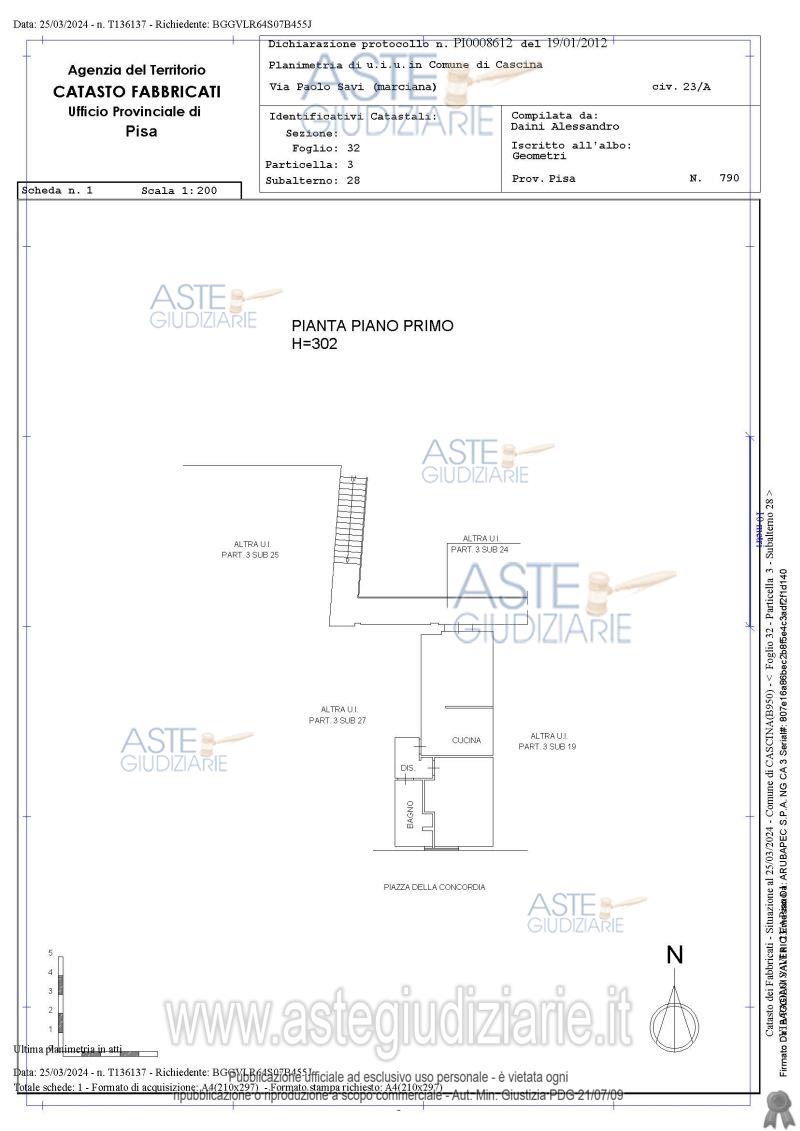Vendita in attesa dell'emissione del nuovo bando d'asta. LOTTO UNICO: In Cascina, frazione Marciana, via Paolo Savi Sud numero civico 23-A, piena proprietà di appartamento per civile abitazione, posto al piano primo di fabbricato condominiale costituito da dodici appartamenti. Ultimo prezzo base € 90.000,00 (offerta minima € 67.500,00). Giudice Marco Zinna. Professionista delegato alla vendita Not. Claudio Calderoni. Custode Giudiziario Dott. Cosimo Erriquez - Email "prenotazionipisa@astagiudiziaria.com". Rif. Tribunale di Pisa - Espropriazione immobiliare (cartabia) n. 195/2023