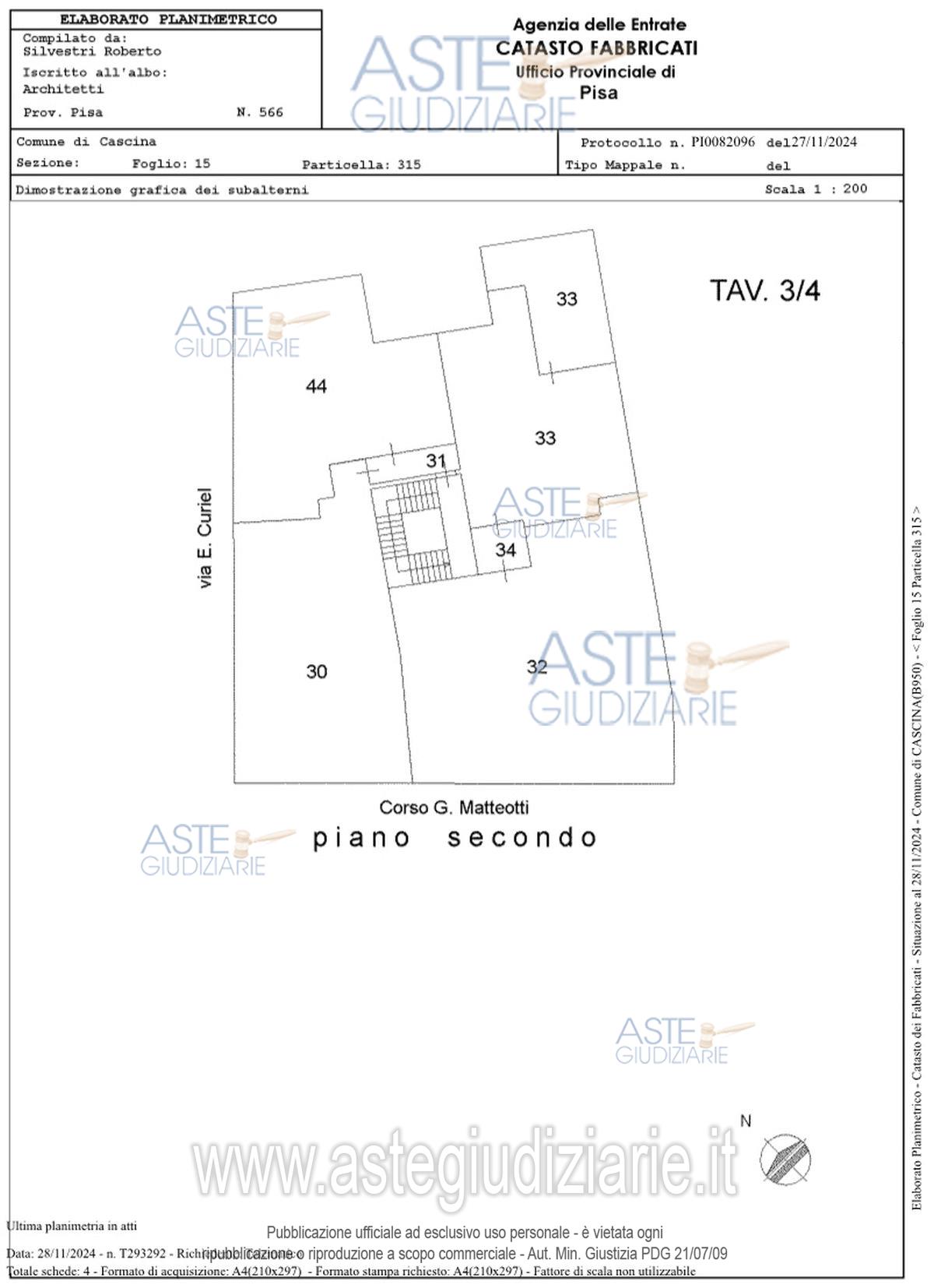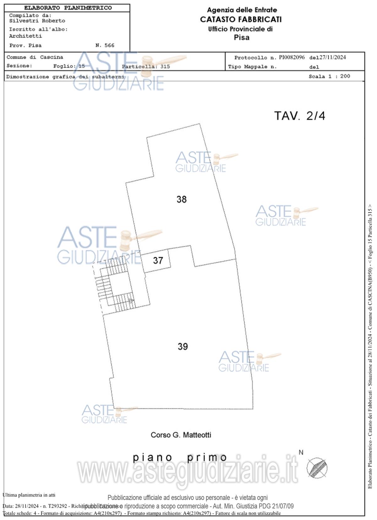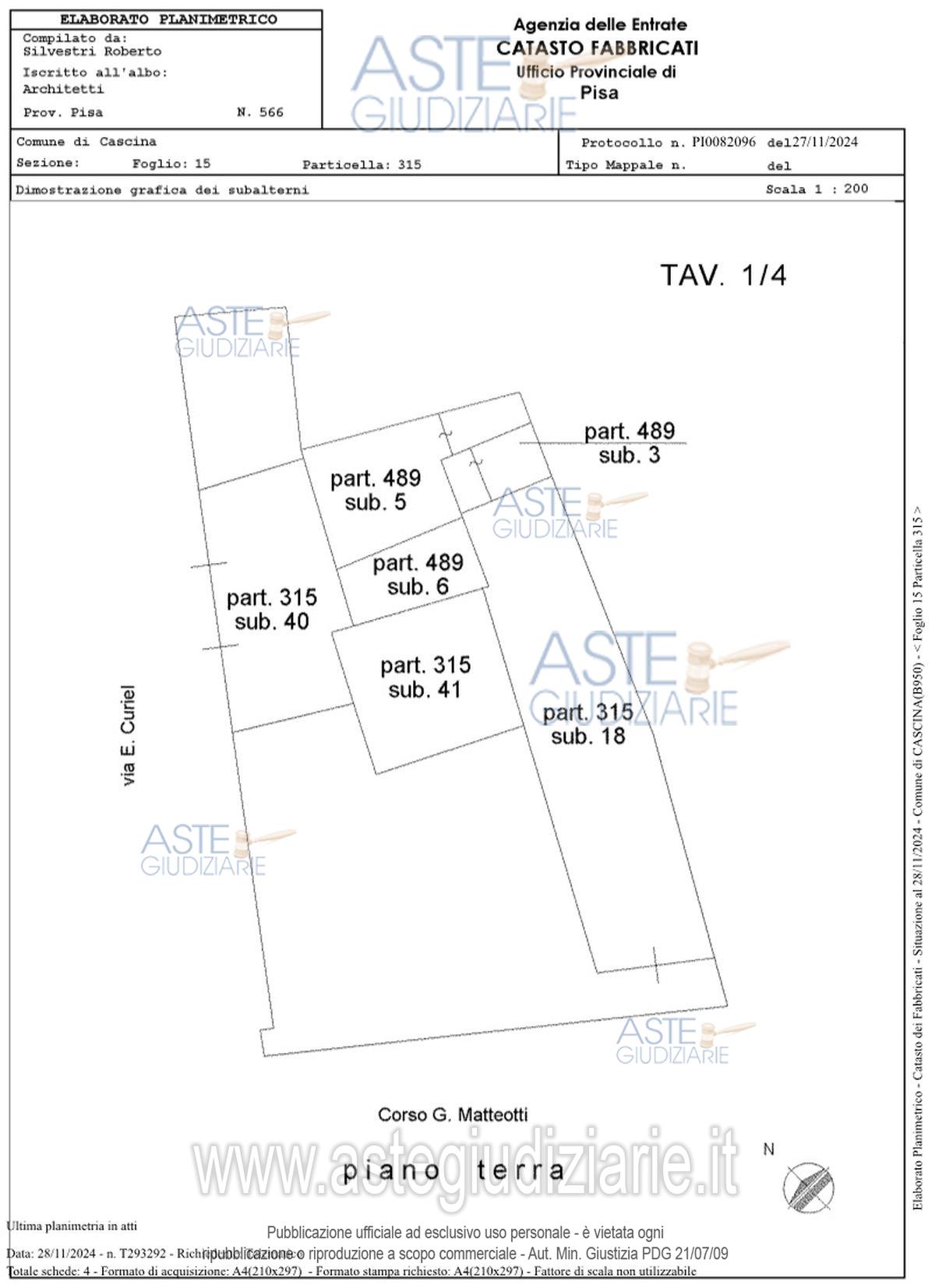 Custode Giudiziario: Dott. Cosimo Erriquez - Email "prenotazionipisa@astagiudiziaria.com"; Tel. 050/554790; Cell. 346/8748140.