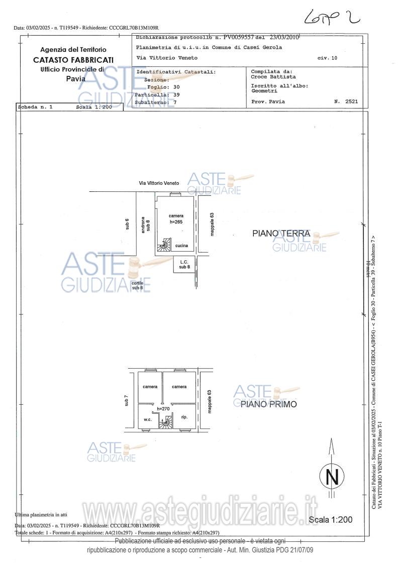Vendita all'asta Senza incanto, con gara telematica asincrona - LOTTO 2: - Fabbricato d'abitazione di circa 81 mq lordi (escluse parti comuni), libero su due lati, disposto su due piani collegati fra loro da scala a chiocciola interna, composto da: soggiorno con cucina, al piano terra; due camere, bagno e ripostiglio al piano primo; con sedime di corte, androne di accesso e vano centrale termica in comune con l'altra u.i., anch'essa oggetto della presente vendita (lotto 1). . Prezzo base € 18.300,00 (offerta minima € 13.725,00). Data inizio operazioni di vendita: 28/05/2026 ore 15:30. Giudice Francesca Claris Appiani. Professionista delegato alla vendita Not. Francesco Gallotti. Custode Giudiziario Istituto Vendite Giudiziarie Di Vigevano - Email "immobiliarivigevano@ifir.it"; Tel. 0381691137. Rif. Tribunale di Pavia - Espropriazione immobiliare (cartabia) n. 446/2024