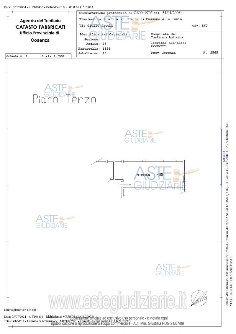 Vendita all'asta Senza incanto, con gara telematica sincrona - LOTTO 8: (costituito dal Lotto n. 8 e dal Lotto n. 12) appartamento posto al primo piano e locale sottotetto non abitabile posto al terzo piano di un fabbricato a tre piani fuori terra oltre sottotetto mansardato, ubicato alla via Giulio Jacobi della frazione Sibari del comune di Cassano All'Ionio. Prezzo base € 30.211,53 (offerta minima € 22.658,65). Data vendita 18/05/2026 ore 16:00. Giudice Giuliana Gaudiano. Professionista delegato alla vendita Dott. Gianluca Tudda - Email "gianlucatudda@libero.it". Custode Giudiziario Dott. Gianluca Tudda - Email "gianlucatudda@libero.it". Rif. Tribunale di Castrovillari - Espropriazione immobiliare (cartabia) n. 50/2024