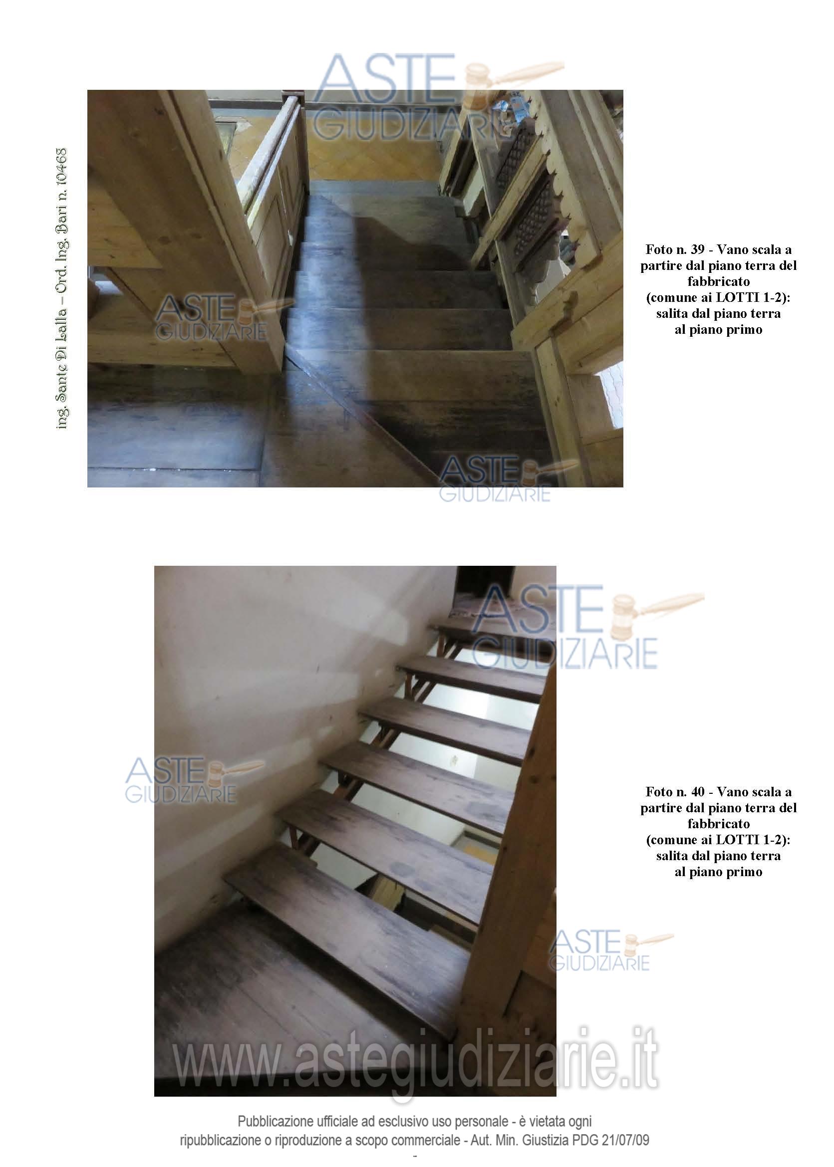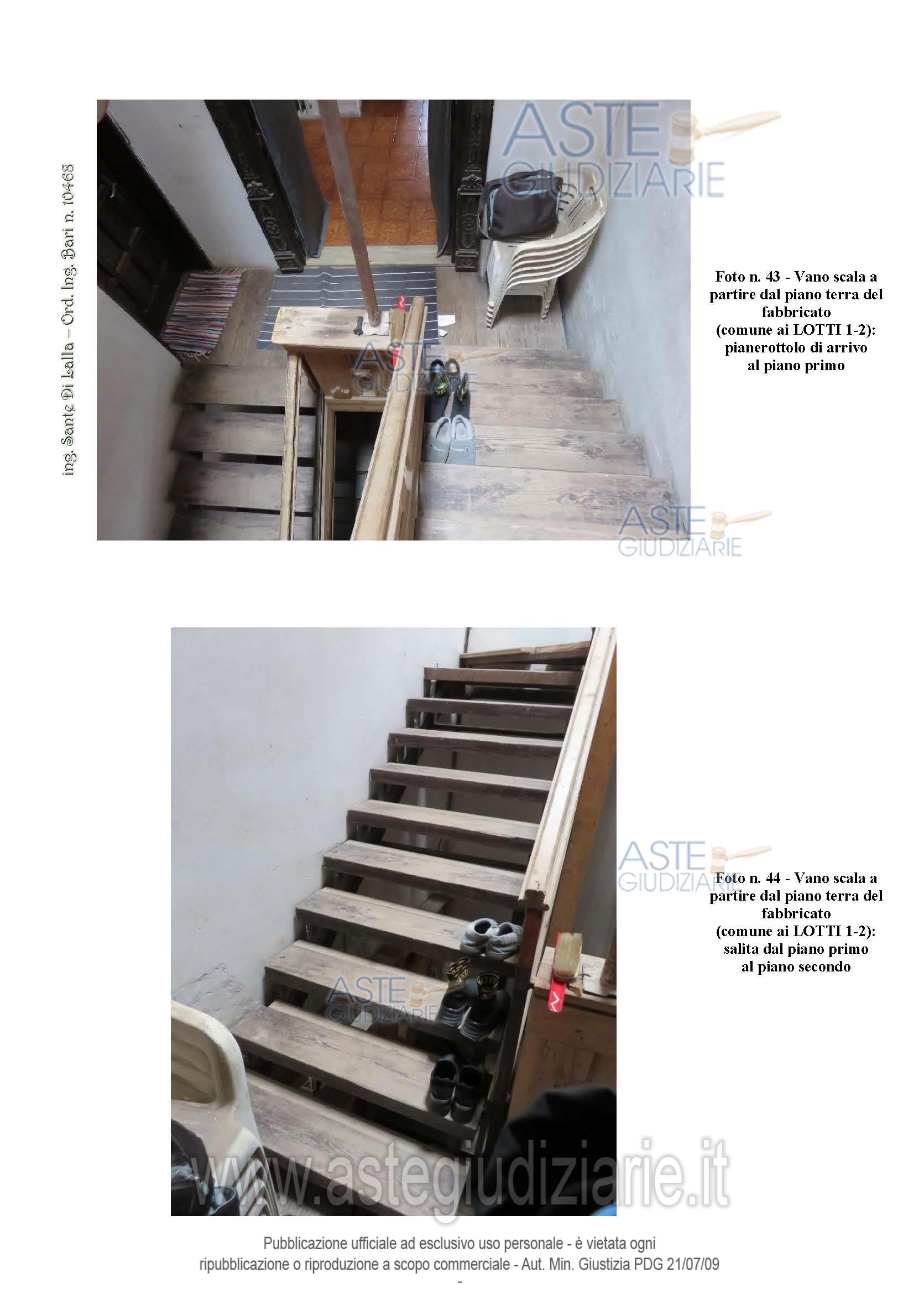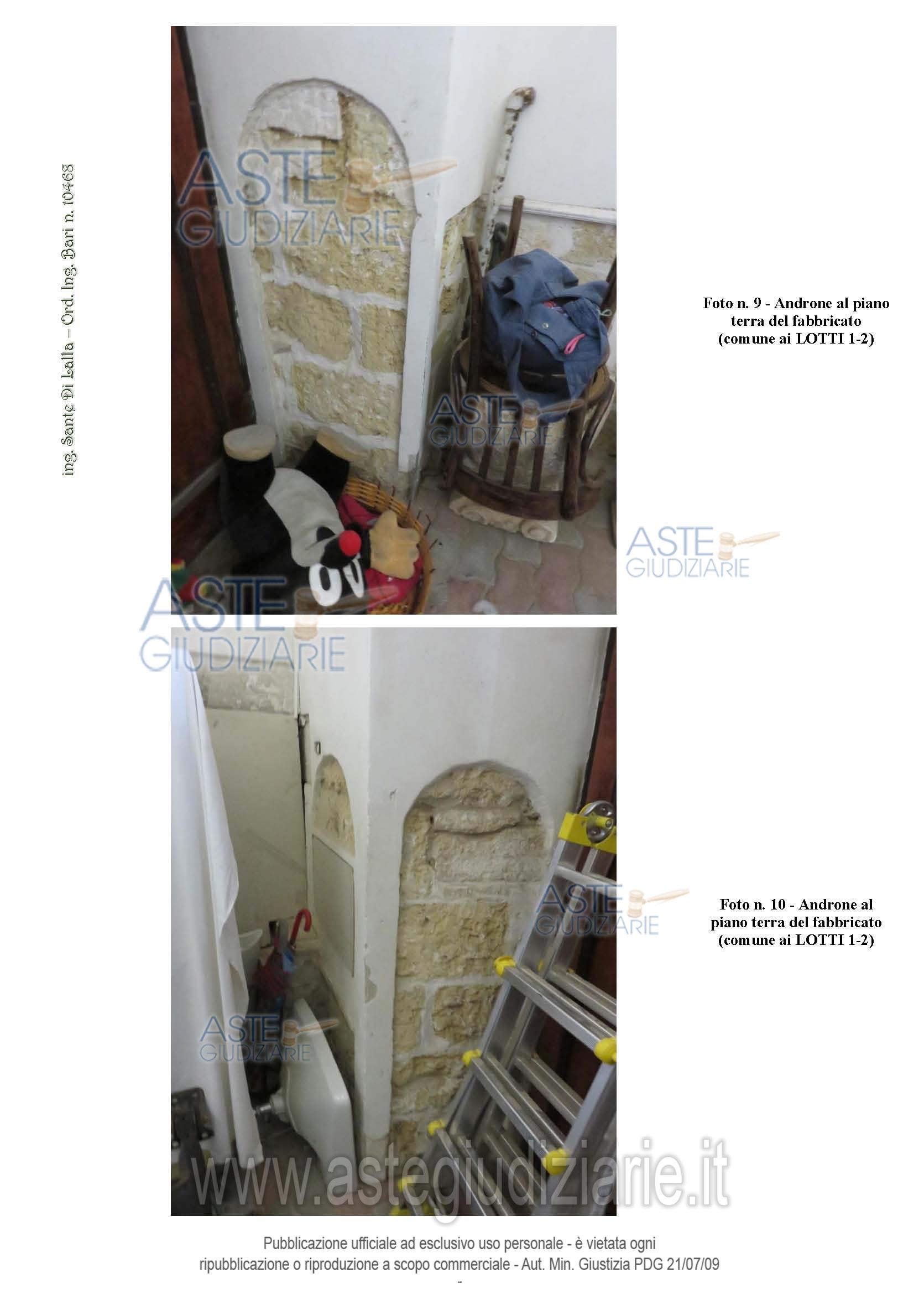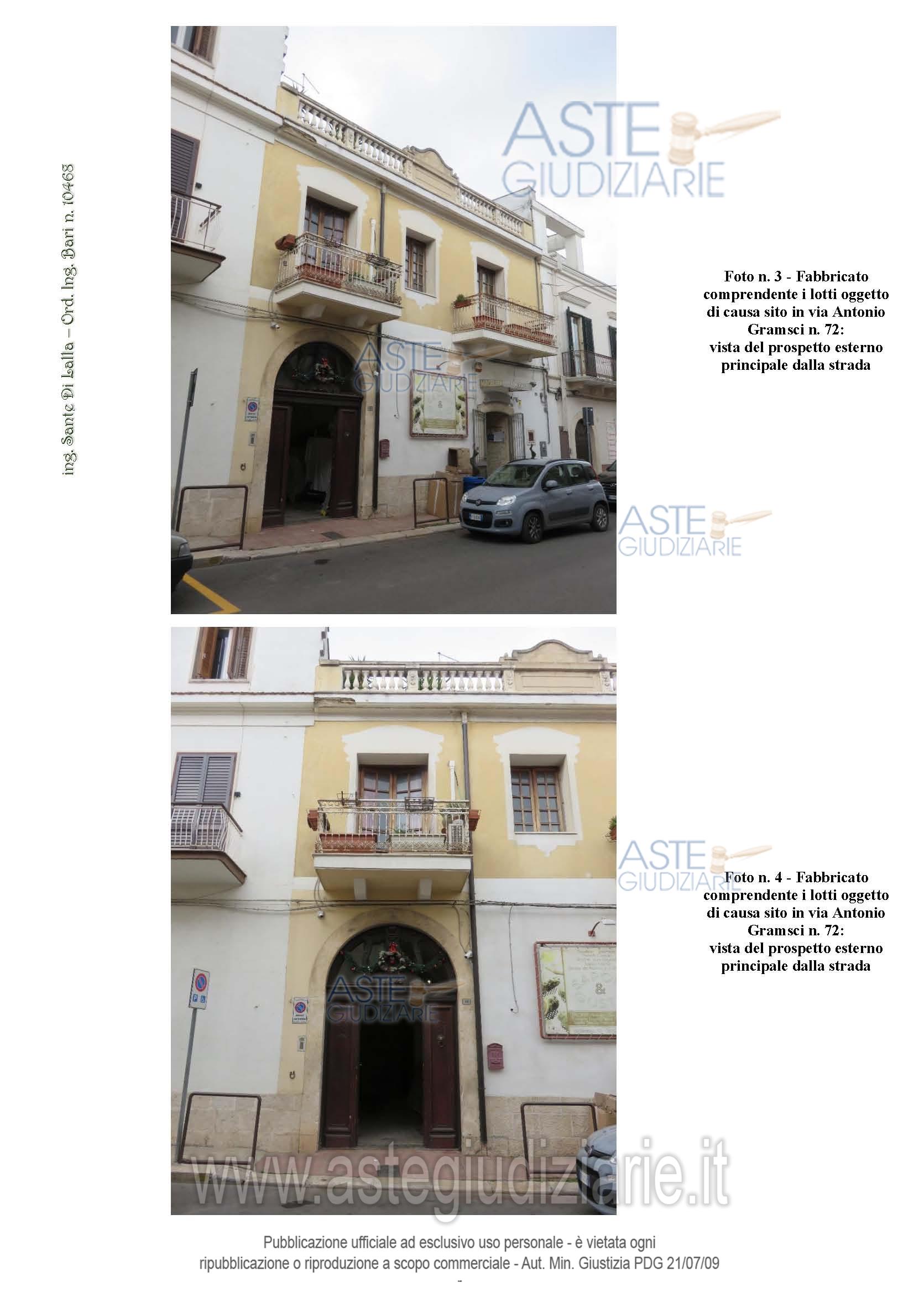 Vendita all'asta Senza incanto, con gara telematica asincrona - LOTTO 1: Abitazione disposta al piano primo con l’area di accesso pertinenziale costituita dal vano androne al piano terra in comune con altro appartamento al secondo piano e annesso vano scala di uso non esclusivo ma condiviso con l’immobile posto al secondo piano dell’edificio. Prezzo base € 31.220,00 (offerta minima € 23.500,00). Data inizio operazioni di vendita: 16/06/2026 ore 12:00. Giudice Dott. Marisa Attollino. Professionista delegato alla vendita Avv. Giovanni Schiavoni - Email "studioschiavoni@libero.it". Custode Giudiziario Avv. Giovanni Schiavoni - Email "studioschiavoni@libero.it". Rif. Tribunale di Bari - Esecuzione immobiliare post legge 80 n. 73/2020