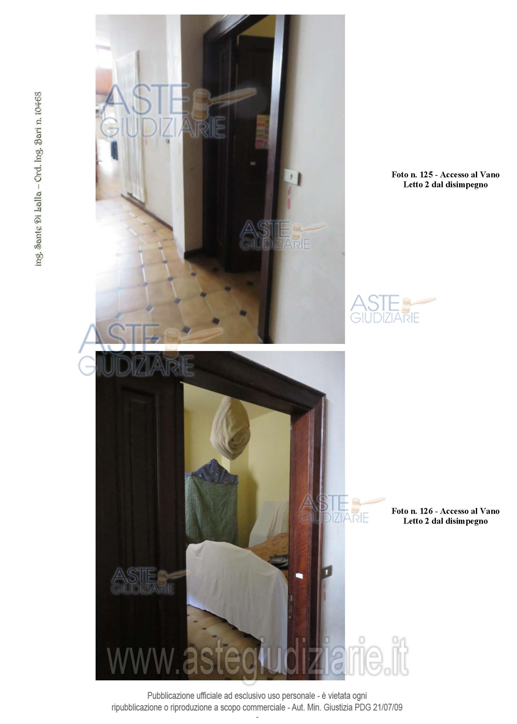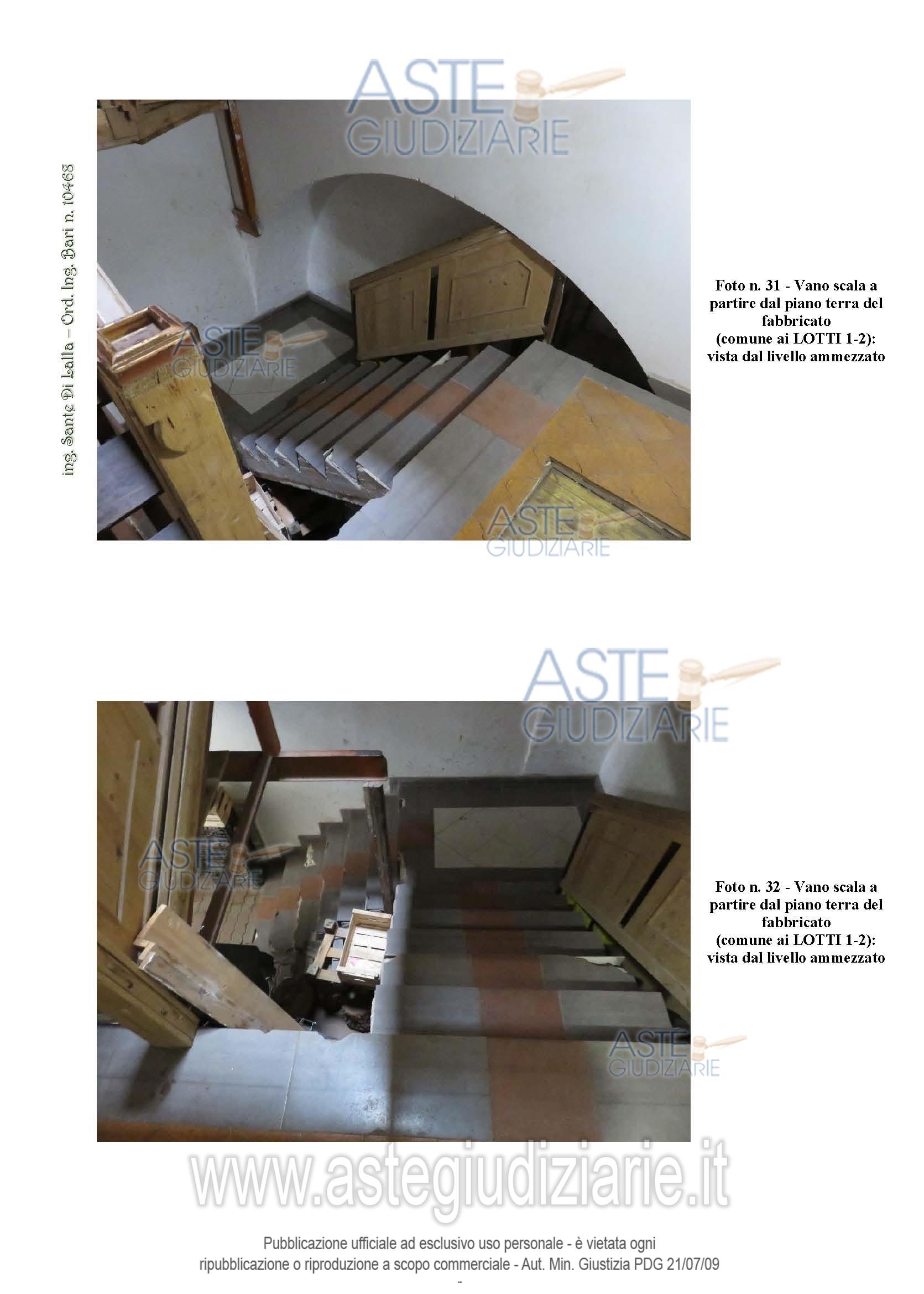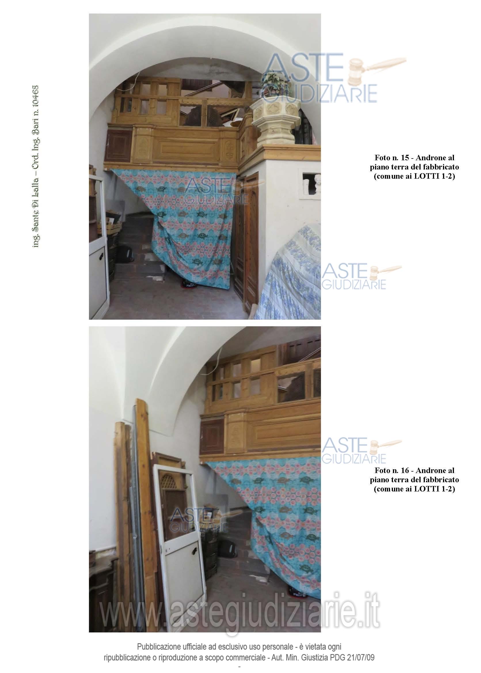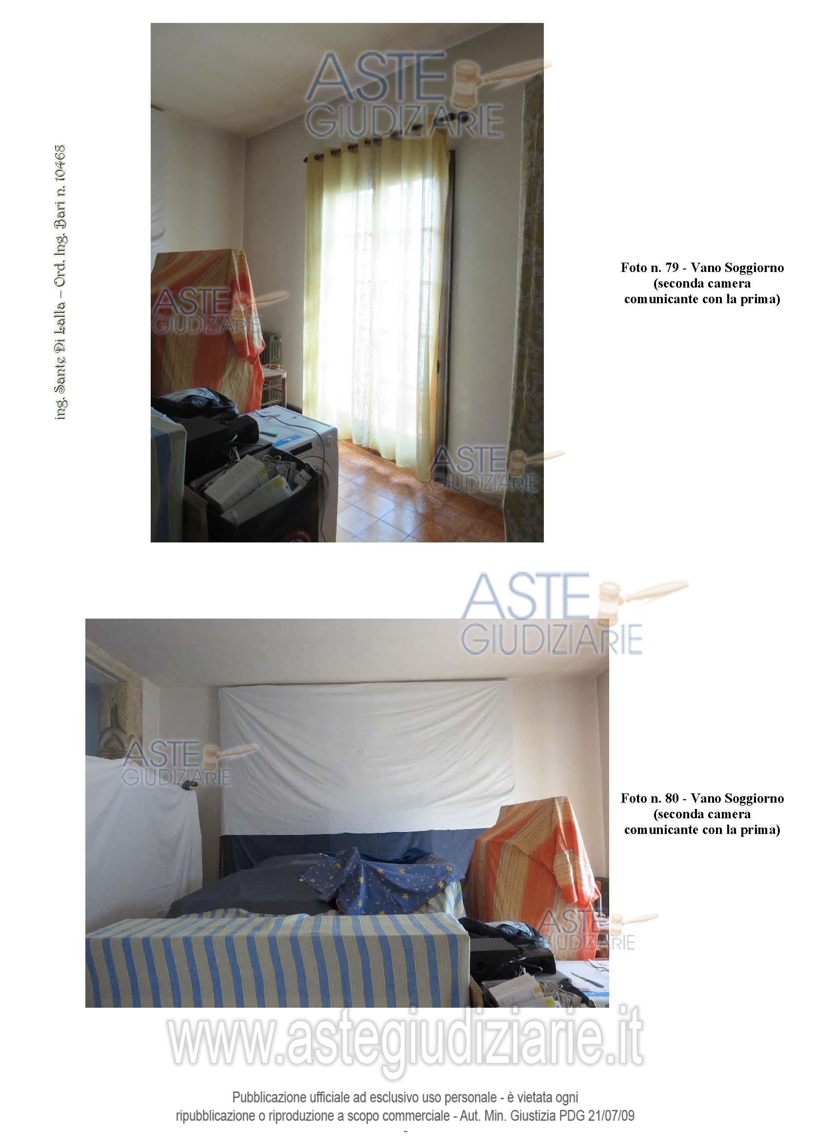 Vendita all'asta Senza incanto, con gara telematica asincrona - LOTTO 1: Abitazione disposta al piano primo con l’area di accesso pertinenziale costituita dal vano androne al piano terra in comune con altro appartamento al secondo piano e annesso vano scala di uso non esclusivo ma condiviso con l’immobile posto al secondo piano dell’edificio. Prezzo base € 31.220,00 (offerta minima € 23.500,00). Data inizio operazioni di vendita: 16/06/2026 ore 12:00. Giudice Dott. Marisa Attollino. Professionista delegato alla vendita Avv. Giovanni Schiavoni - Email "studioschiavoni@libero.it". Custode Giudiziario Avv. Giovanni Schiavoni - Email "studioschiavoni@libero.it". Rif. Tribunale di Bari - Esecuzione immobiliare post legge 80 n. 73/2020