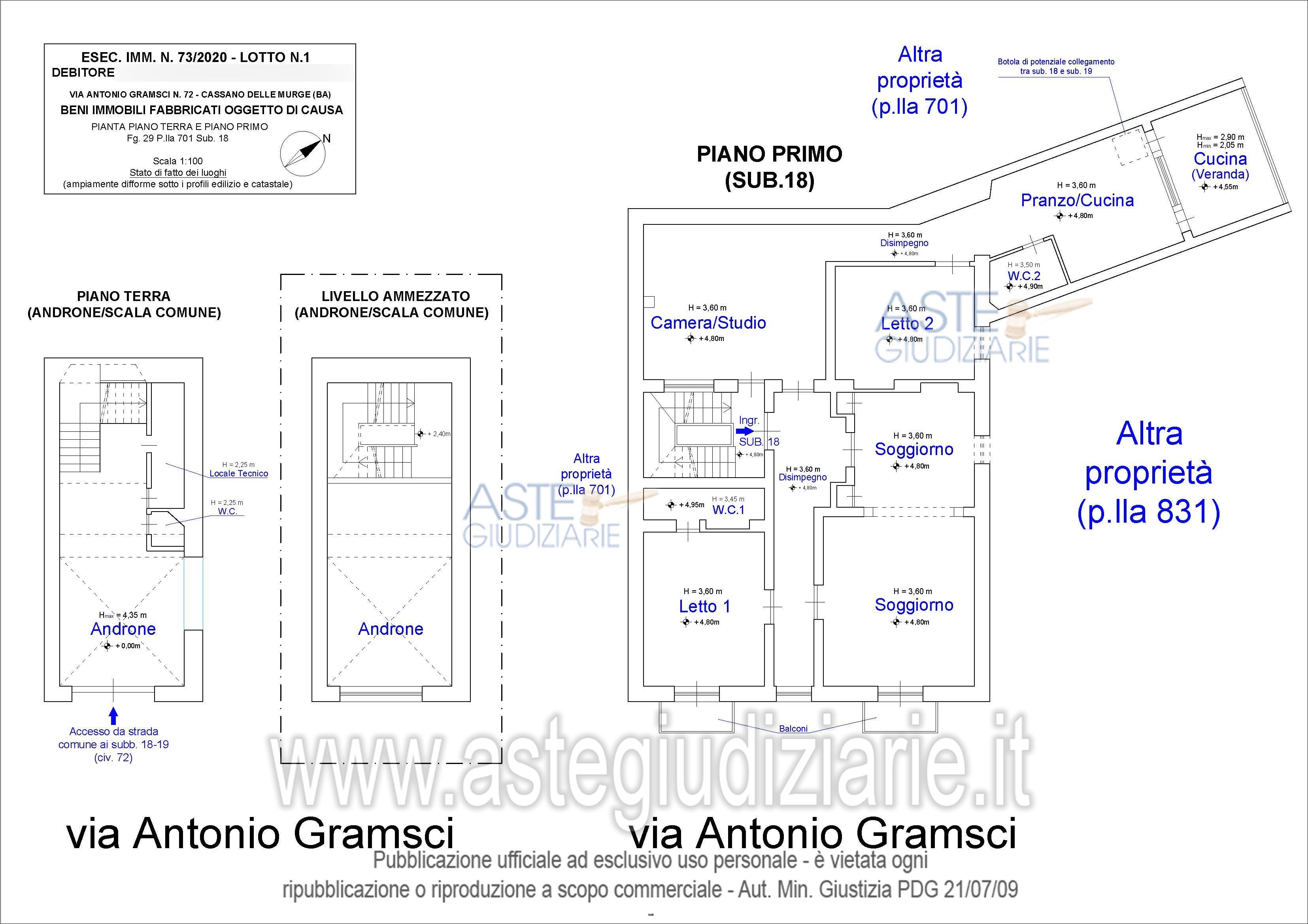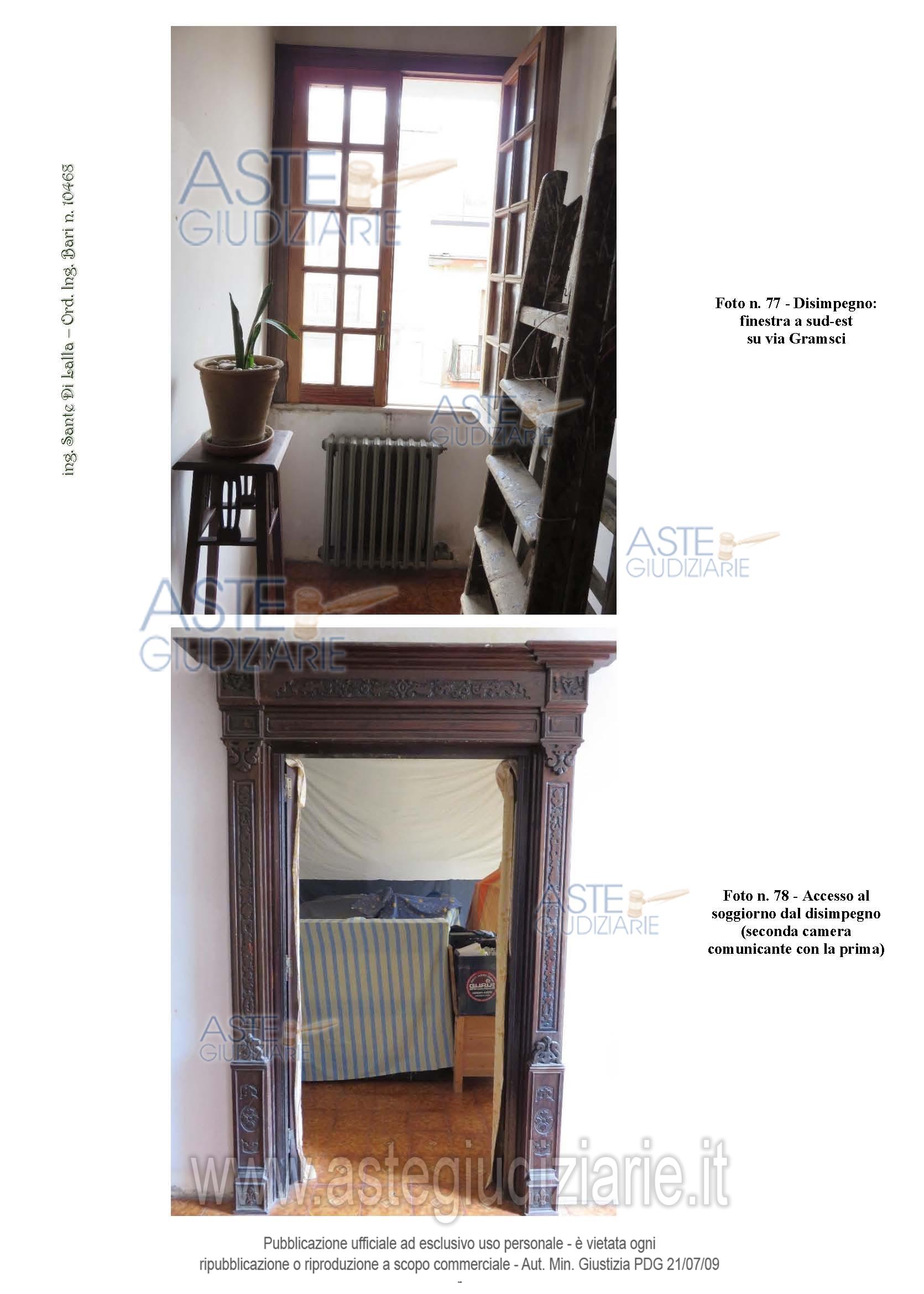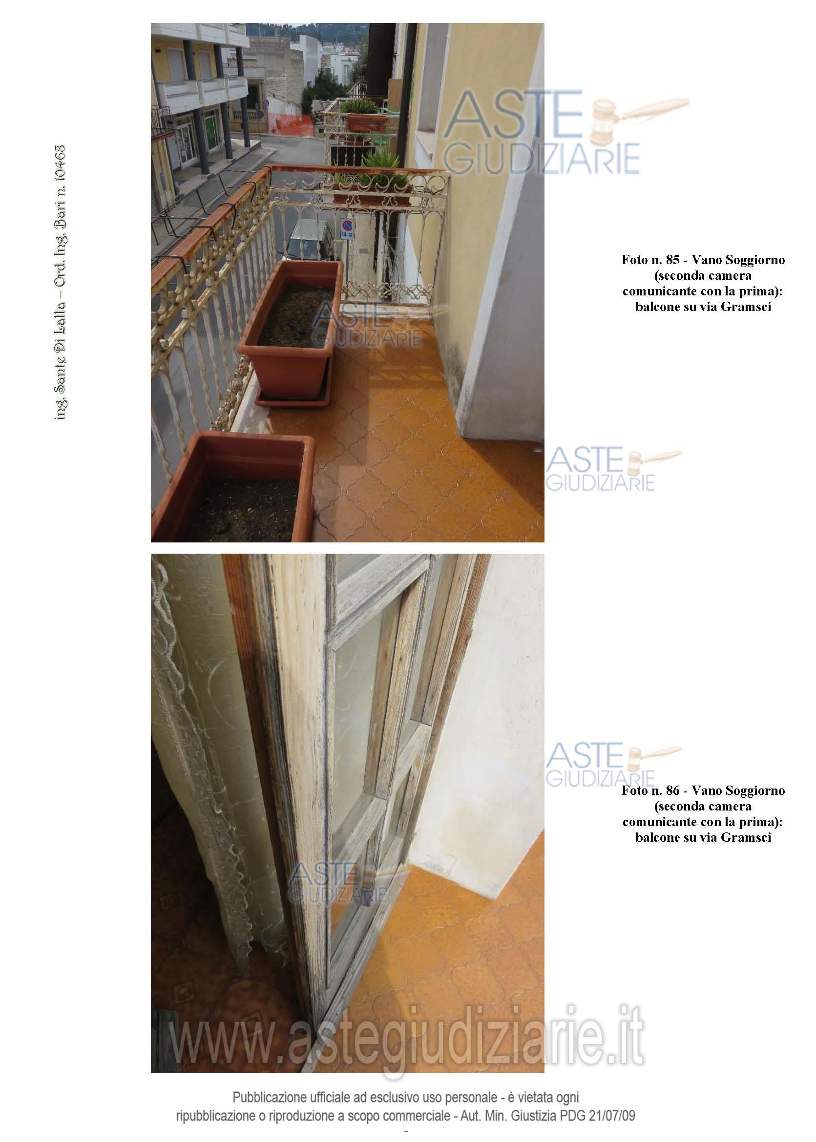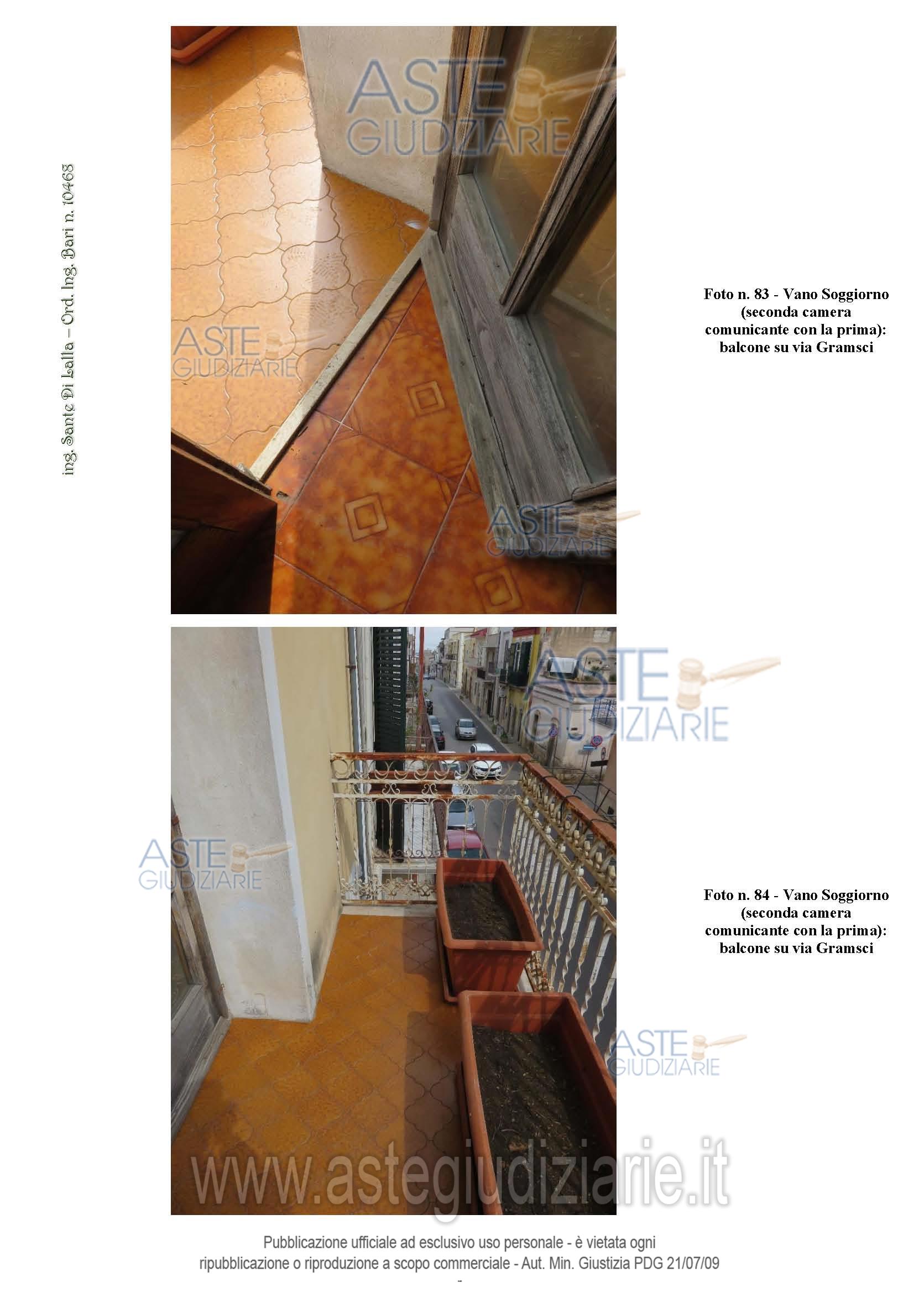 Vendita all'asta Senza incanto, con gara telematica asincrona - LOTTO 1: Abitazione disposta al piano primo con l’area di accesso pertinenziale costituita dal vano androne al piano terra in comune con altro appartamento al secondo piano e annesso vano scala di uso non esclusivo ma condiviso con l’immobile posto al secondo piano dell’edificio. Prezzo base € 31.220,00 (offerta minima € 23.500,00). Data inizio operazioni di vendita: 16/06/2026 ore 12:00. Giudice Dott. Marisa Attollino. Professionista delegato alla vendita Avv. Giovanni Schiavoni - Email "studioschiavoni@libero.it". Custode Giudiziario Avv. Giovanni Schiavoni - Email "studioschiavoni@libero.it". Rif. Tribunale di Bari - Esecuzione immobiliare post legge 80 n. 73/2020