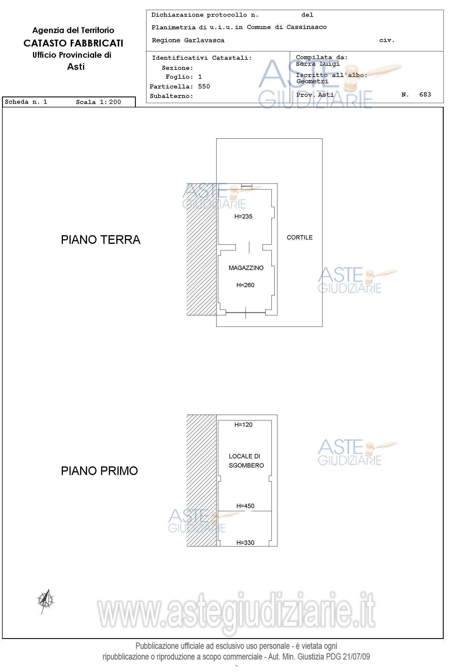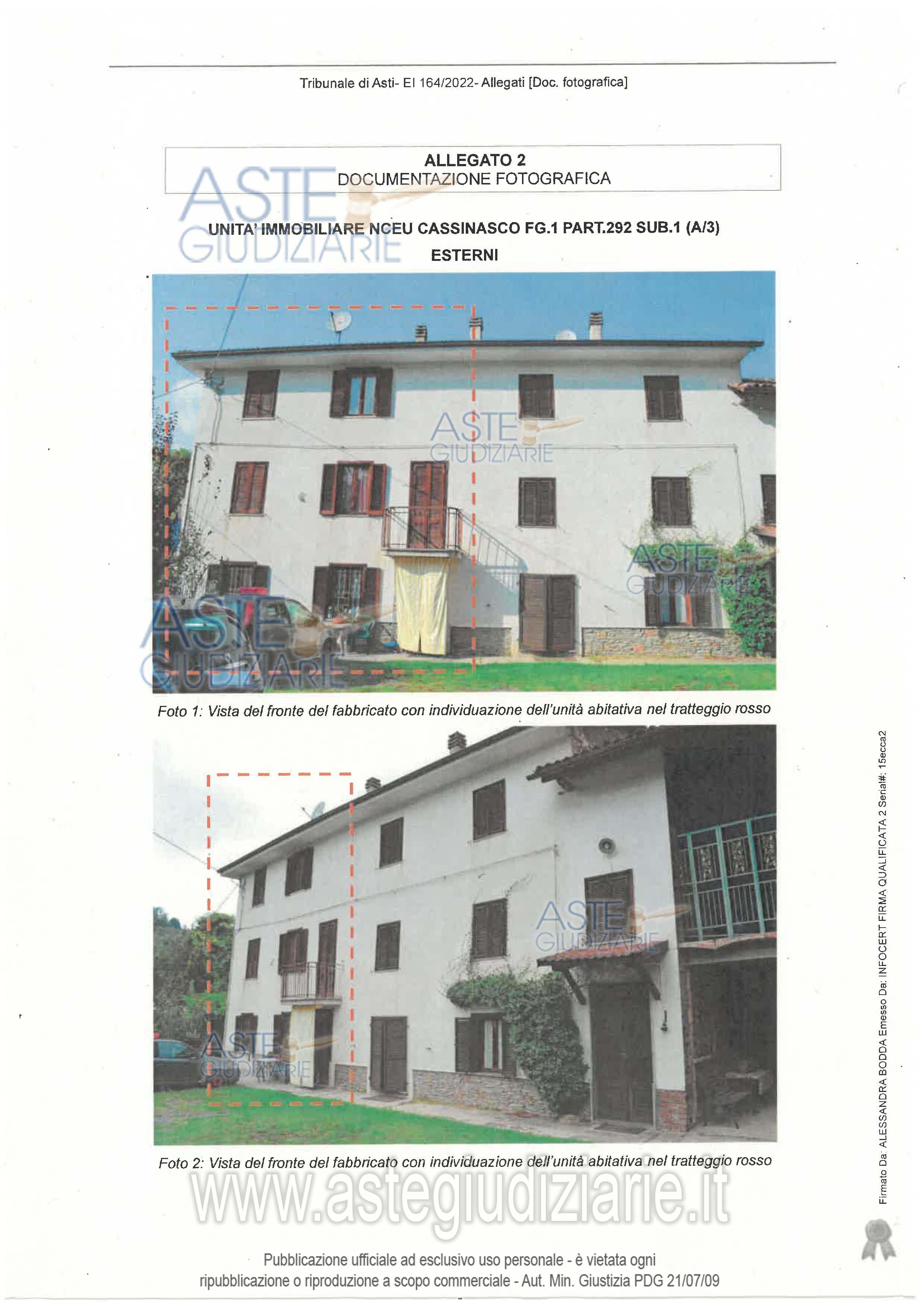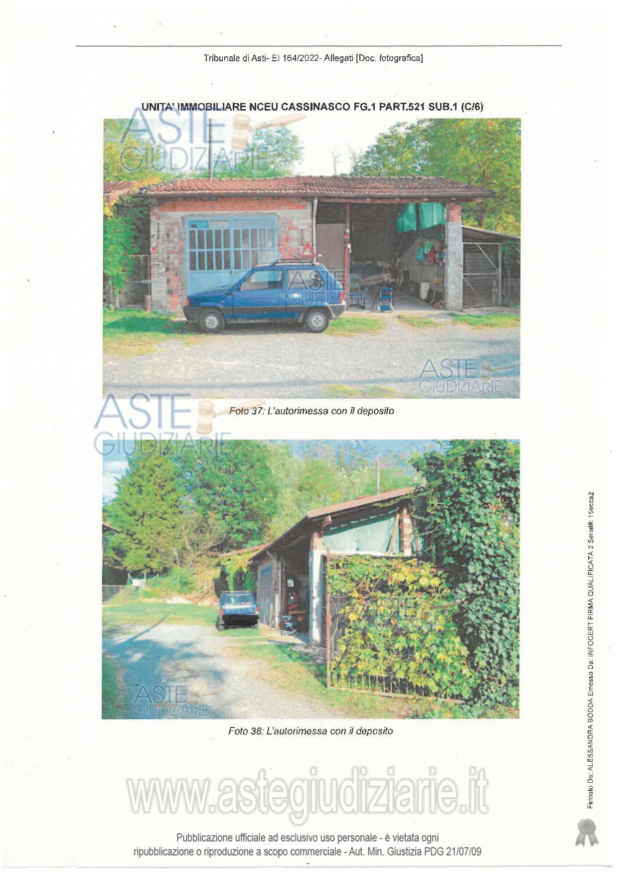 Vendita all'asta Senza incanto, con gara telematica asincrona - LOTTO UNICO: Unità abitativa in zona agricola tra il comune di Cassinasco e quello di Canelli, oltre a localemagazzino-deposito, autorimessa e terreni in Regione Garlavasca. Prezzo base € 46.800,00 (offerta minima € 35.100,00). Data inizio operazioni di vendita: 12/11/2025 ore 15:00. Professionista delegato alla vendita Avv. Sara Marcarino - Tel. 0173229013. Custode Giudiziario Ifir Piemonte Ivg Srl - Email "richiestevisite.asti@ivgpiemonte.it". Rif. Tribunale di Asti - Esecuzione immobiliare post legge 80 n. 164/2022