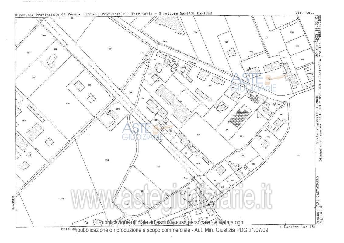 Vendita all'asta Senza incanto, con gara telematica sincrona mista - LOTTO UNICO: LOTTO UNICO - In comune di Castagnaro (VR), Via Aleardo Aleardi n. 170, a circa un chilometro a ovest del Comune Capoluogo, nei pressi della stazione e della linea ferroviaria, piena proprietà di casa indipendente di civile abitazione unifamiliare, distribuita su due livelli con ripostiglio esterno e area cortiliva. Sono compresi nella vendita i proporzionali diritti di comproprietà su enti comuni e spazi di uso comune ai sensi dell’art. 1117 c.c. Prezzo base € 36.000,00 (offerta minima € 27.000,00). Data vendita 12/03/2026 ore 14:00. Giudice Francesco Fontana. Professionista delegato alla vendita Not. Roberto Tordiglione - Email "notes@notariato.it"; Tel. 0458006661. Custode Giudiziario Giorgia Perbellini - Email "giorgiaperbellini@studiodavvocato.it"; Tel. 0458035655. Rif. Tribunale di Verona - Espropriazione immobiliare (cartabia) n. 72/2025