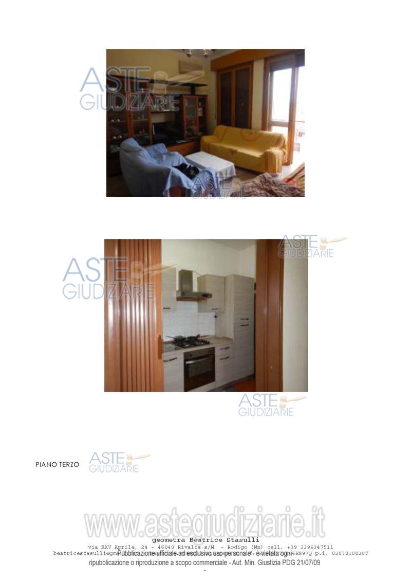 Vendita all'asta Senza incanto, con gara telematica sincrona mista - LOTTO 1: Piena proprietà di appartamento posto al piano terzo, con ingresso comune posto al piano terra, con locale rustico e vano autorimessa di pertinenza posto al piano terra inglobato nel corpo di fabbrica dell'edificio a quattro piani fuori terra, facenti parte di un edificio condominiale costituito da sei appartamenti. Appartamento è composto da ingresso, cucina, pranzo, soggiorno con balcone, un bagno e due camere da letto . Prezzo base € 29.750,00 (offerta minima € 22.312,50). Data vendita 26/03/2026 ore 11:00. Professionista delegato alla vendita Avv. Francesca Mironi - Email "francesca.mironi@libero.it". Custode Giudiziario Sovemo Srl. Rif. Tribunale di Mantova - Esecuzione immobiliare n. 60/2024