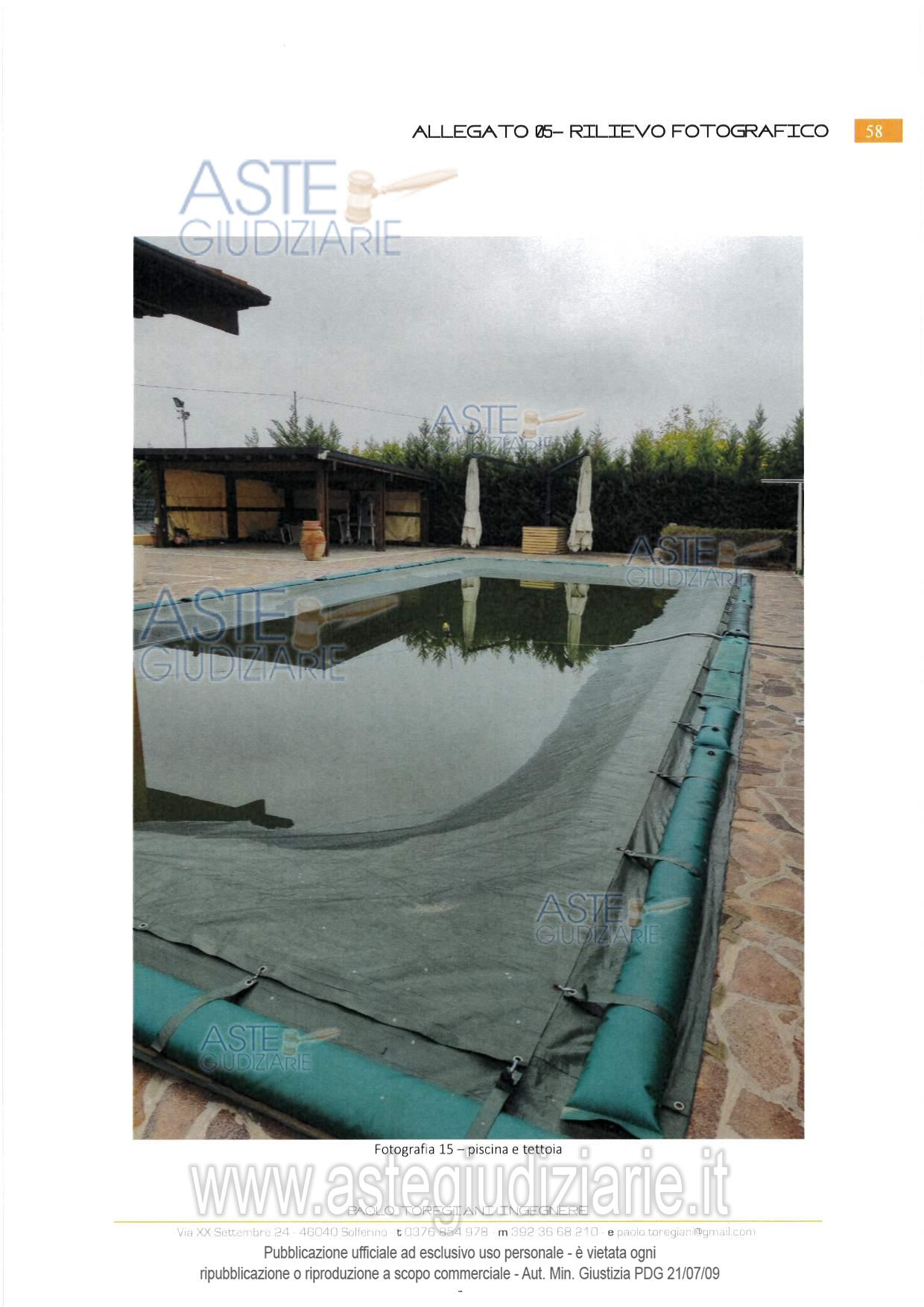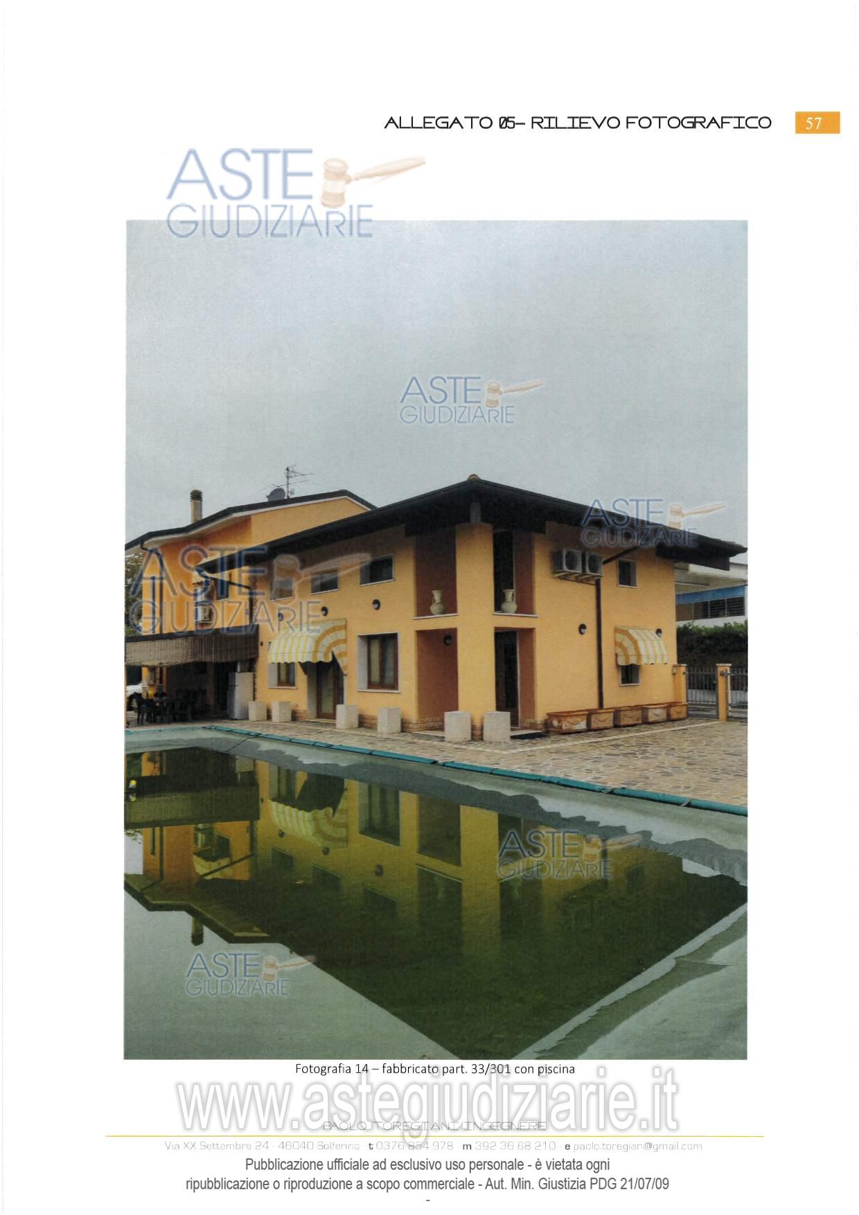 Vendita all'asta Senza incanto, con gara telematica sincrona mista - LOTTO 5: Piena proprietà di:- appartamento disposto su due livelli facente parte di un'abitazione di tipo bifamiliare con tettoia per il parcamento delle autovetture e piscina scoperta;- appartamento disposto su due livelli facente parte di un'abitazione di tipo bifamiliare;- fabbricato su un livello fuori terra adibito ad uso promisquo sito nell'ambito dell'area cortiliva di un edificio di tipo bifamiliare. Prezzo base € 187.000,00 (offerta minima € 140.250,00). Data vendita 24/06/2026 ore 14:30. Giudice: Mauro Pietro Bernardi.