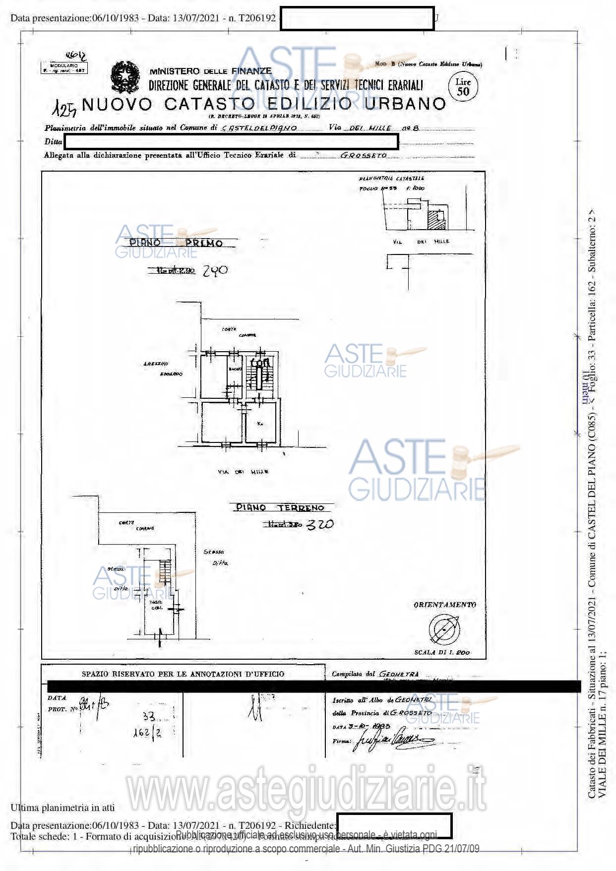 Vendita all'asta Senza incanto, con gara telematica sincrona mista - LOTTO 2: Piena proprietà di appartamento in Castel del Piano, Via dei Mille n. 17, distribuito in un terra tetto composto da piano terra, primo, secondo e sottotetto oltre corte esterna esclusiva. Il tutto per una superficie commerciale complessiva di 231.39 mq. Adiacente all’appartamento si trova un altro edificio distribuito in un terra tetto composto da piano terra, primo, secondo e sottotetto sprovvisto di titolo edilizio, per una superficie commerciale complessiva di 180.23 mq. Prezzo base € 138.583,89 (offerta minima € 103.937,92). Data vendita 09/12/2025 ore 09:30. Professionista delegato alla vendita Avv. Marco Meconcelli - Email "avv.meconcelli@hotmail.com"; Tel. 056427258. Custode Giudiziario Avv. Marco Meconcelli - Email "avv.meconcelli@hotmail.com"; Tel. 056427258. Rif. Tribunale di Grosseto - Esecuzione immobiliare post legge 80 n. 140/2020