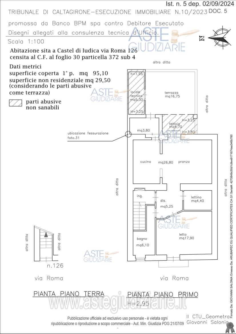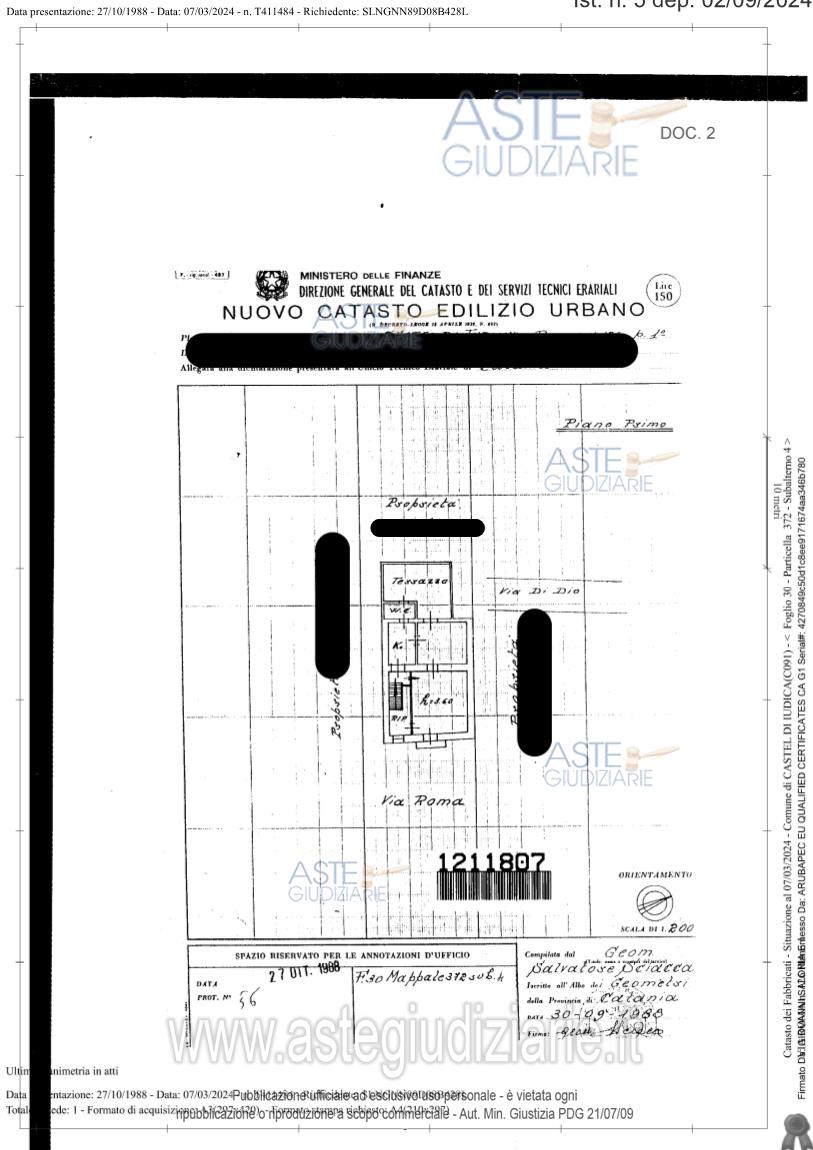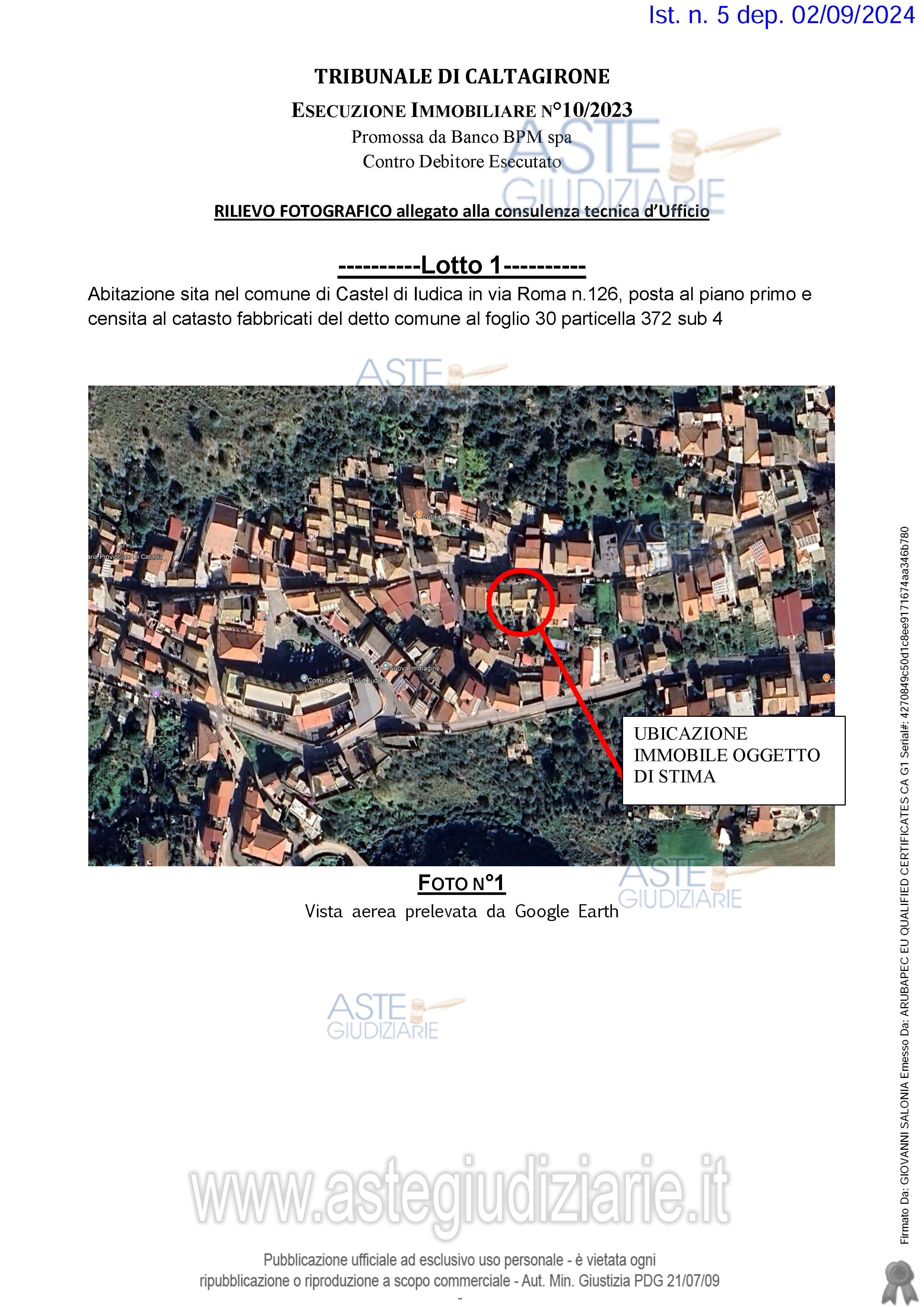Vendita all'asta Senza incanto, con gara telematica sincrona mista - LOTTO UNICO: Abitazione sita nel comune di Castel di Iudica, posta al piano primo con ingresso dalla via Roma n. 126 censita al catasto fabbricati al foglio 30, particella 372 sub 4, categ. A/3, cl 3, consistenza vani 3,5, rendita € 234,99. Classe “G”. Prezzo base € 24.750,00 (offerta minima € 18.562,50). Data vendita 05/02/2026 ore 18:00. Professionista delegato alla vendita Avv. Francesca Sagone - Email "francescasagone@virgilio.it"; Cell. 3333616046; Tel. 09331960311. Custode Giudiziario Avv. Francesca Sagone - Email "francescasagone@virgilio.it"; Cell. 3333616046; Tel. 09331960311. Rif. Tribunale di Caltagirone - Esecuzione immobiliare post legge 80 n. 10/2023