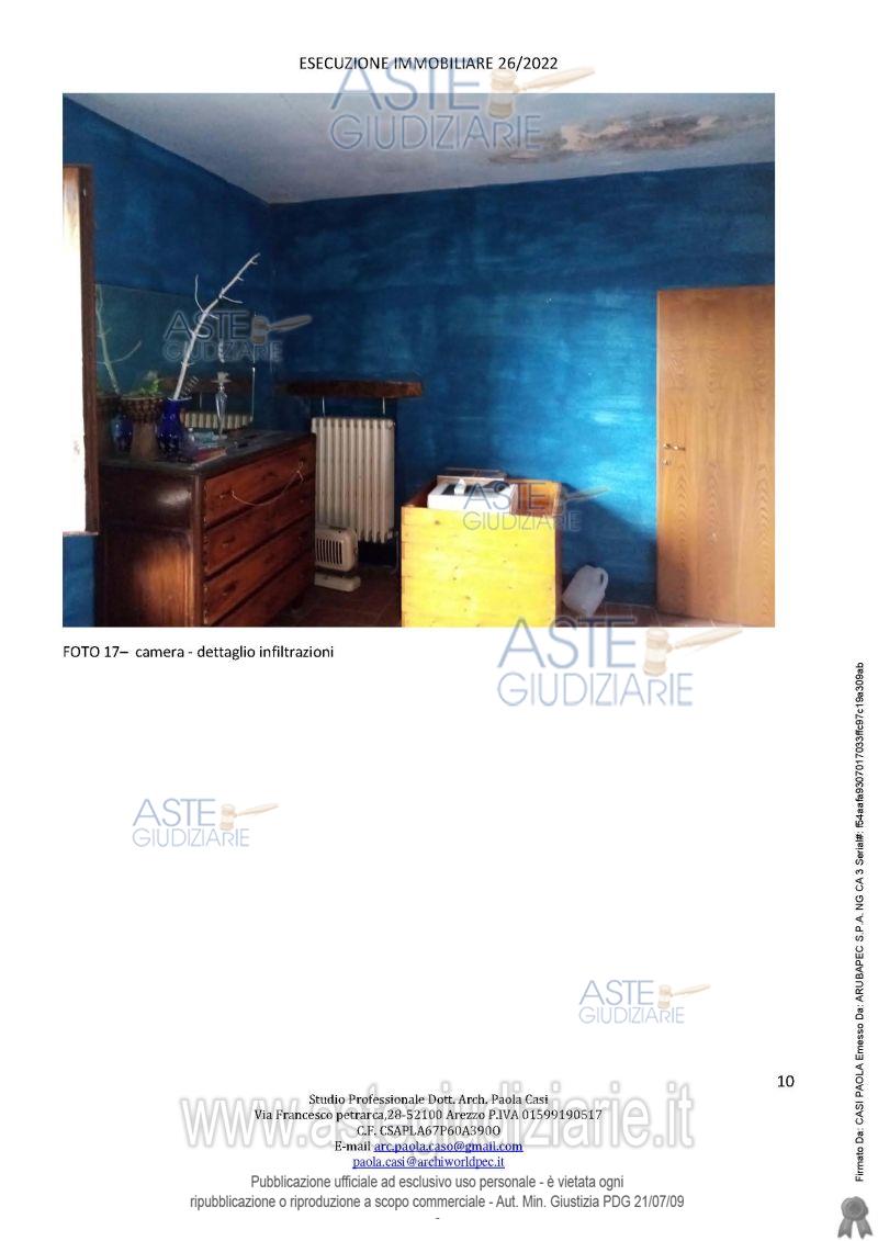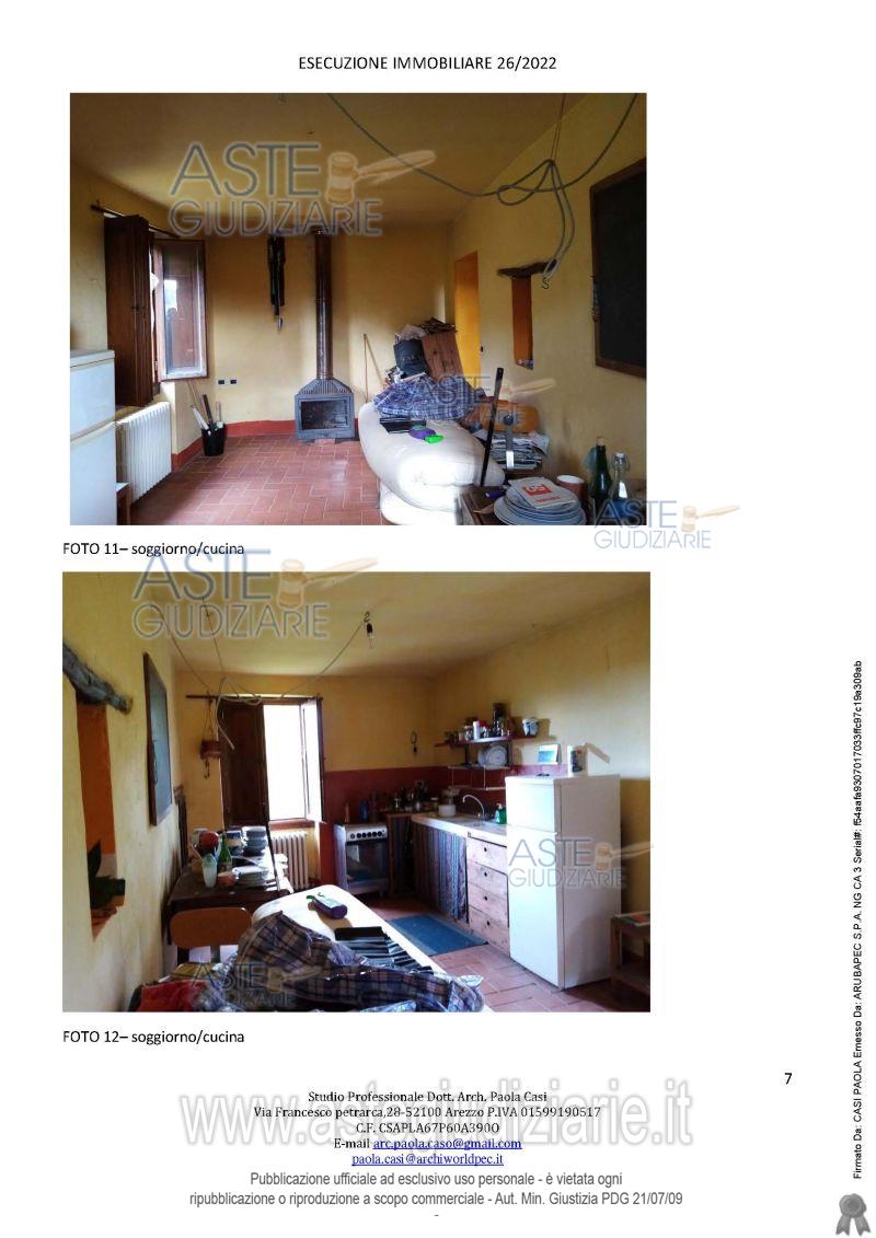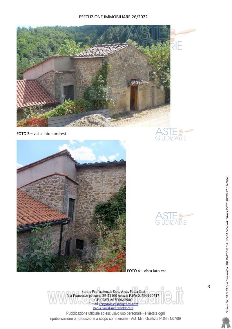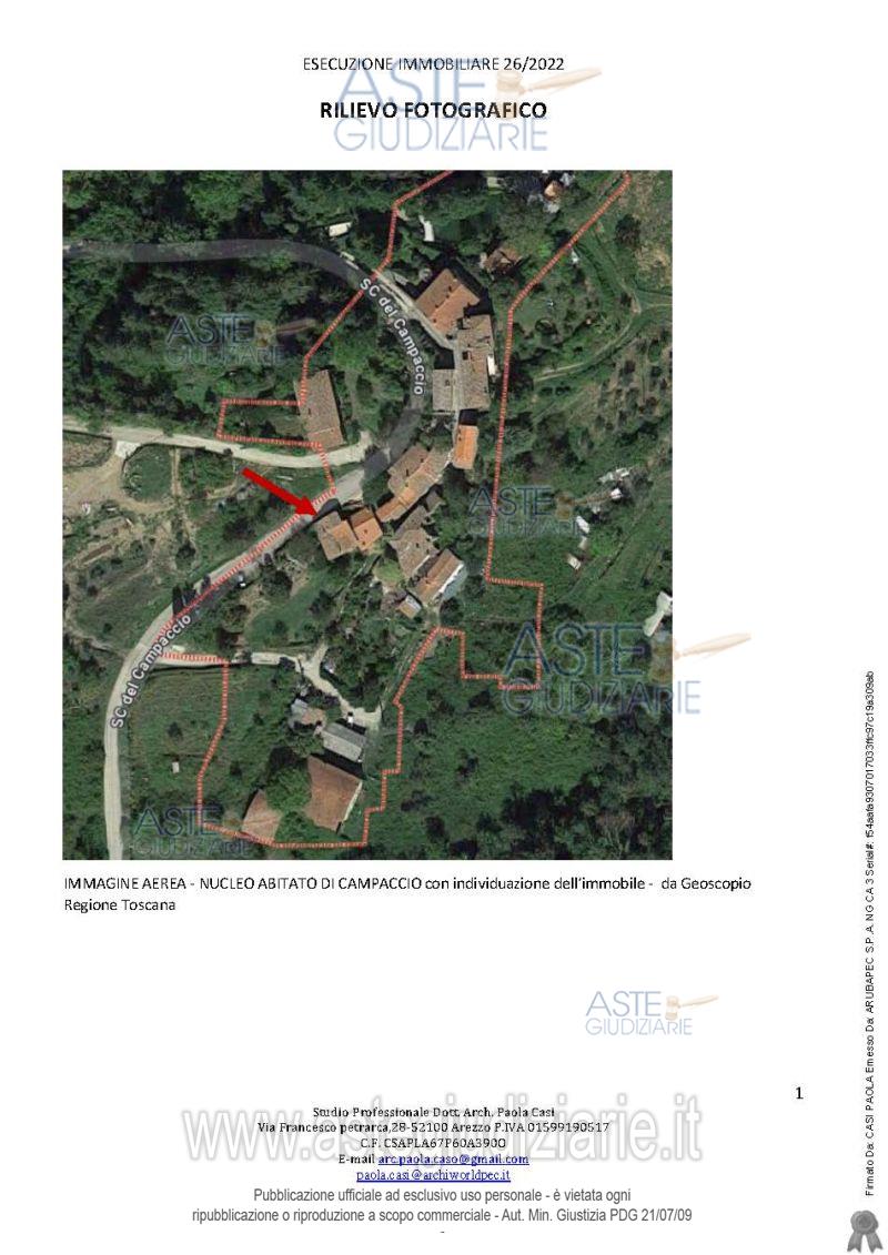 Vendita all'asta Senza incanto, con gara telematica sincrona mista - LOTTO UNICO: appartamento posto al primo piano di un maggior edificio situato nell'aggregato storico di Campaccio, composto da ingresso, cucina/soggiorno, una camera matrimoniale, una camera singola, un disimpegno, un bagno ed una piccola cantina, oltre a locale sottotetto. Prezzo base € 21.882,62 (offerta minima € 16.411,96). Data vendita 09/06/2026 ore 10:00. Professionista delegato alla vendita Avv. Marika Micheli - Email "avvmarikamicheli@gmail.com"; Cell. 3336401797; Tel. 0575900800. Custode Giudiziario Istituto Vendite Giudiziarie Arezzo-Siena - Email "visite.ivg@gmail.com"; Cell. 3397337017. Rif. Tribunale di Arezzo - Esecuzione immobiliare post legge 80 n. 26/2022