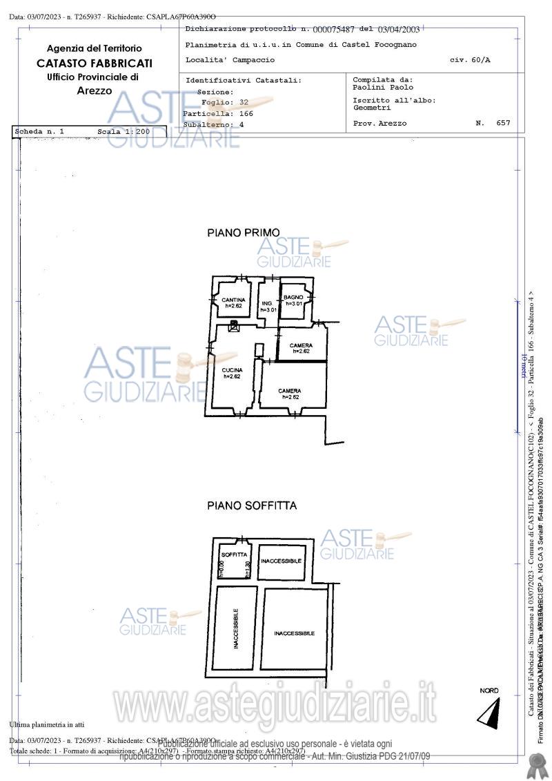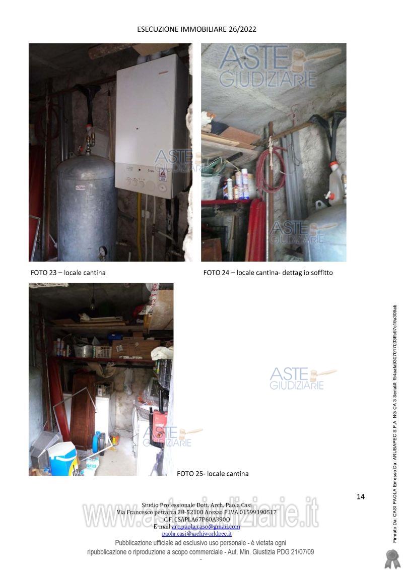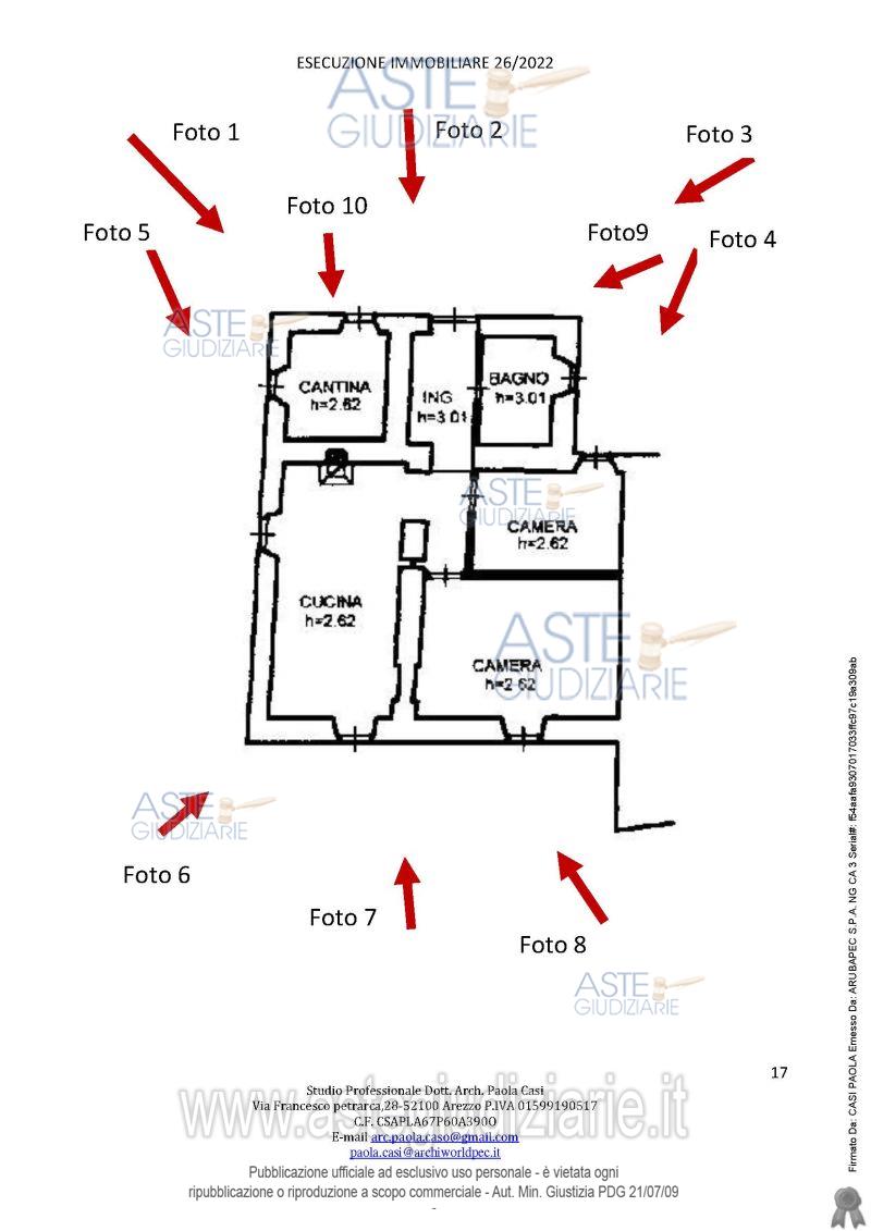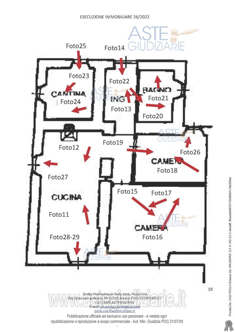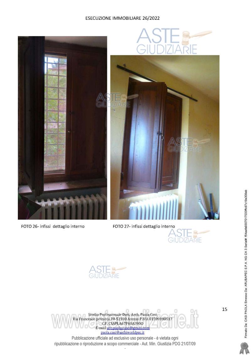Vendita all'asta Senza incanto, con gara telematica sincrona mista - LOTTO UNICO: appartamento posto al primo piano di un maggior edificio situato nell'aggregato storico di Campaccio, composto da ingresso, cucina/soggiorno, una camera matrimoniale, una camera singola, un disimpegno, un bagno ed una piccola cantina, oltre a locale sottotetto. Prezzo base € 21.882,62 (offerta minima € 16.411,96). Data vendita 09/06/2026 ore 10:00. Professionista delegato alla vendita Avv. Marika Micheli - Email "avvmarikamicheli@gmail.com"; Cell. 3336401797; Tel. 0575900800. Custode Giudiziario Istituto Vendite Giudiziarie Arezzo-Siena - Email "visite.ivg@gmail.com"; Cell. 3397337017. Rif. Tribunale di Arezzo - Esecuzione immobiliare post legge 80 n. 26/2022