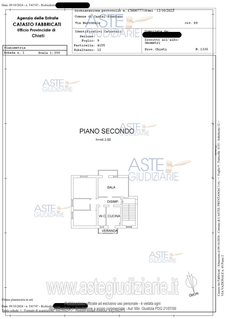 Vendita all'asta Senza incanto, con gara telematica asincrona - LOTTO UNICO: Piena proprietà per 1/1 di un appartamento e ripostiglio facenti parte di una palazzina condominiale sita nel Comune di Castel Frentano (CH), Via Nazionale n. 69. Appartamento posto al piano secondo raggiungibile dalla gradinata condominiale, priva di ascensore, composto da ingresso-disimpegno, una sala pranzo, cucina e veranda, un WC, tre stanze, un balcone, ripostiglio al piano seminterrato collegato alla gradinata condominiale attraverso un disimpegno comune. Prezzo base € 36.000,00 (offerta minima € 27.000,00). Data inizio operazioni di vendita: 18/11/2025 ore 12:00. Giudice Chiara D'alfonso. Professionista delegato alla vendita Avv. Angela Ranieri - Email "avv.angelaranieri@gmail.com"; Cell. 3476514693; Tel. 0872661651. Custode Giudiziario Ivg Lanciano - Email "ivglanciano@gmail.com"; Tel. 0872715361. Rif. Tribunale di Lanciano - Espropriazione immobiliare (cartabia) n. 45/2024