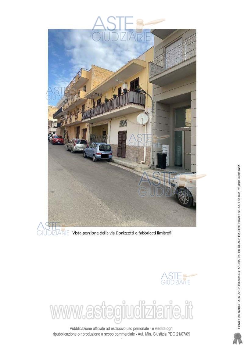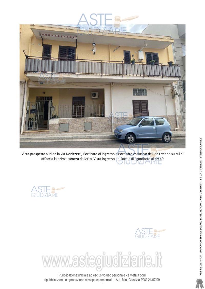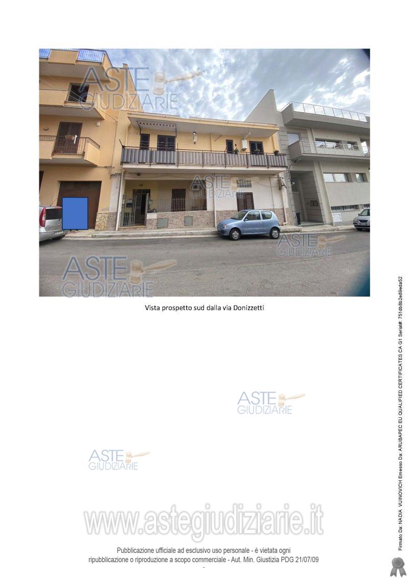 Vendita all'asta Senza incanto, con gara telematica sincrona - LOTTO UNICO: Appartamento ubicato in Casteldaccia (PA), nella via Gaetano Donizzetti n. 38-40, identificato in Catasto al Foglio di Mappa n. 5 p.lla n. 2815 sub 1, Cat. A3, Cl.3, Cons. 6 vani, Superficie catastale 125 mq, Rendita € 433,82, di superficie convenzionale complessiva mq 141,20, posto al piano terra di un fabbricato su due elevazioni fuori terra oltre copertura a lastrico solare in cui emerge il torrino scala. Prezzo base € 62.597,00 (offerta minima € 46.948,00). Data vendita 21/07/2026 ore 14:30. Professionista delegato alla vendita: Avv. Francesca Maranto - Email "avv.francescamaranto@gmail.com"; Tel. 0921/421451; Cell. 320/7645460.