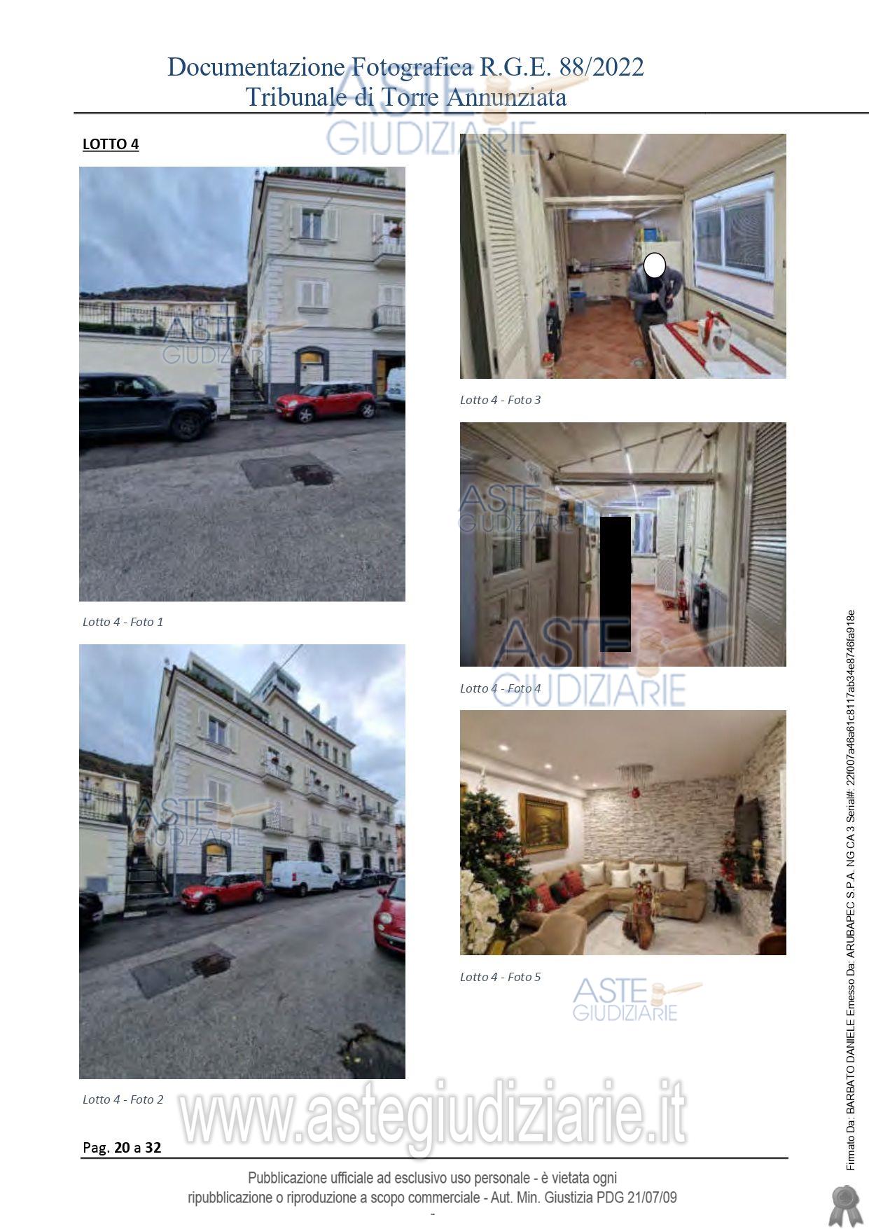Vendita all'asta Senza incanto, con gara telematica asincrona - LOTTO 4: Piena ed intera proprietà di un appartamento sito in Castellammare di Stabia (NA), Vicolo Cosenza I n° 1 piano terra e sottotetto. Prezzo base € 208.000,00 (offerta minima € 156.000,00). Data inizio operazioni di vendita: 31/03/2026 ore 14:30. Professionista delegato alla vendita Avv. Stefania Scotto Di Ciccariello - Email "stefania.scotto@alice.it"; Cell. 360414742; Tel. 360414742. Custode Giudiziario Avv. Stefania Scotto Di Ciccariello - Email "stefania.scotto@alice.it"; Cell. 360414742; Tel. 360414742. Rif. Tribunale di Torre Annunziata - Esecuzione immobiliare post legge 80 n. 88/2022