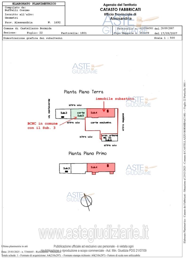 Vendita all'asta Senza incanto - LOTTO UNICO: In Comune di Castellazzo Bormida (AL), via Monteverde n. 14, fabbricato residenziale su due piani fuori terra oltre a piano sottotetto. Costituisce pertinenza il cortile in unico corpo con il fabbricato. Superficie complessiva (fabbricato e cortile) di circa mq 316,00, con altezza utile interna del fabbricato di circa m. 2,40. Prezzo base € 36.000,00 (offerta minima € 27.000,00). Data vendita 22/07/2026 ore 17:00. Professionista delegato alla vendita Avv. Domenico Perrone - Email "perrone1964@libero.it"; Cell. 3358305814; Tel. 0131260174. Custode Giudiziario Avv. Domenico Perrone - Email "perrone1964@libero.it"; Cell. 3358305814; Tel. 0131260174. Rif. Tribunale di Alessandria - Espropriazione immobiliare (cartabia) n. 14/2025
