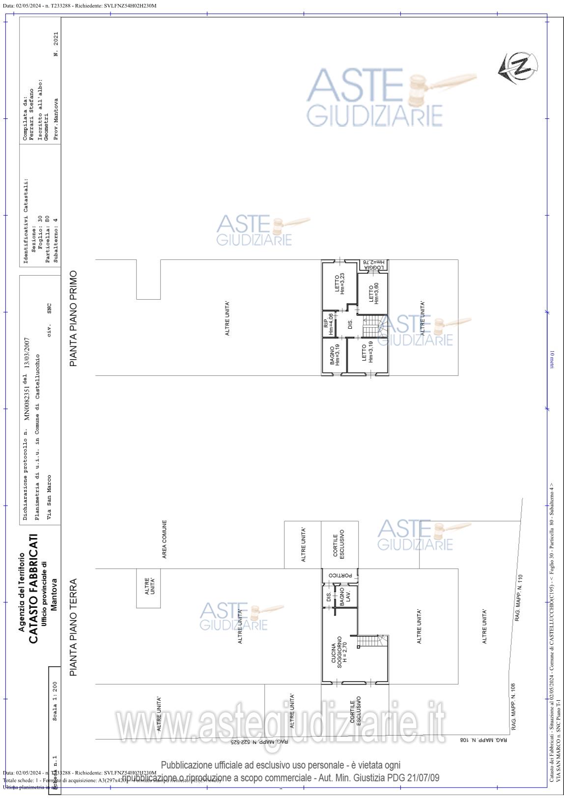 Vendita all'asta Senza incanto, con gara telematica sincrona mista - LOTTO 1:  Intera piena proprietà di:bene 1: Villetta a schiera sviluppantesi ai piani terra e primo di fabbricato facente parte di complesso condominiale e composta: al piano terra, da porticato, ingresso-disimpegno, bagno e cucina-soggiorno con scale; al piano primo, da disimpegno con vano scale, ripostiglio, tre camere da letto, bagno e loggia; con annesse aree cortilive antistante e retrostante;Bene n. 2: Garage pertinenziale posto al piano terra del medesimo corpo di fabbrica. Prezzo base € 122.400,00 (offerta minima € 91.800,00). Data vendita 07/11/2025 ore 09:00. Professionista delegato alla vendita Dott. Francesca Freddi - Email "freddistudioscardovelli@gmail.com"; Tel. 0376222100. Custode Giudiziario  So.Ve.Mo Srl - Email "immobiliaremantova@sovemo.com"; Tel. 0376220694.  Rif. Tribunale di Mantova - Espropriazione immobiliare (cartabia) n. 24/2024